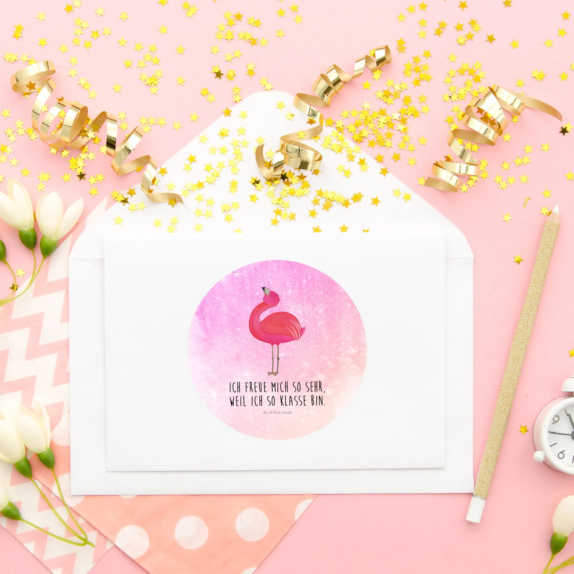 Stell dir vor, du öffnest deinen Laptop oder schlägst dein liebstes Notizbuch auf und wirst sofort von einem strahlenden, pinken Flamingo begrüßt. Nicht irgendein Flamingo, sondern unser stolzer Flamie aus der Flamingo-Kollektion von Mr. & Mrs. Panda. 🦩