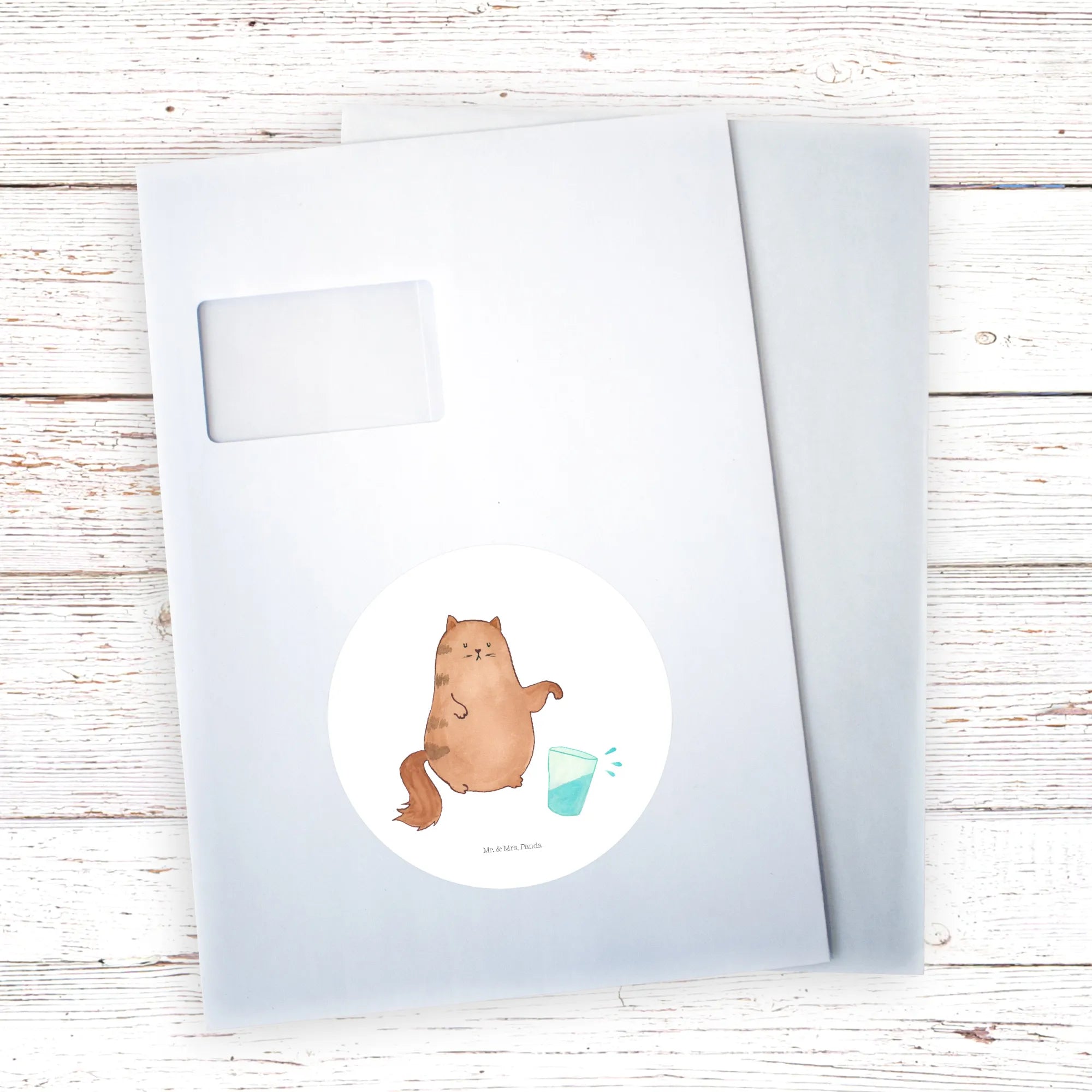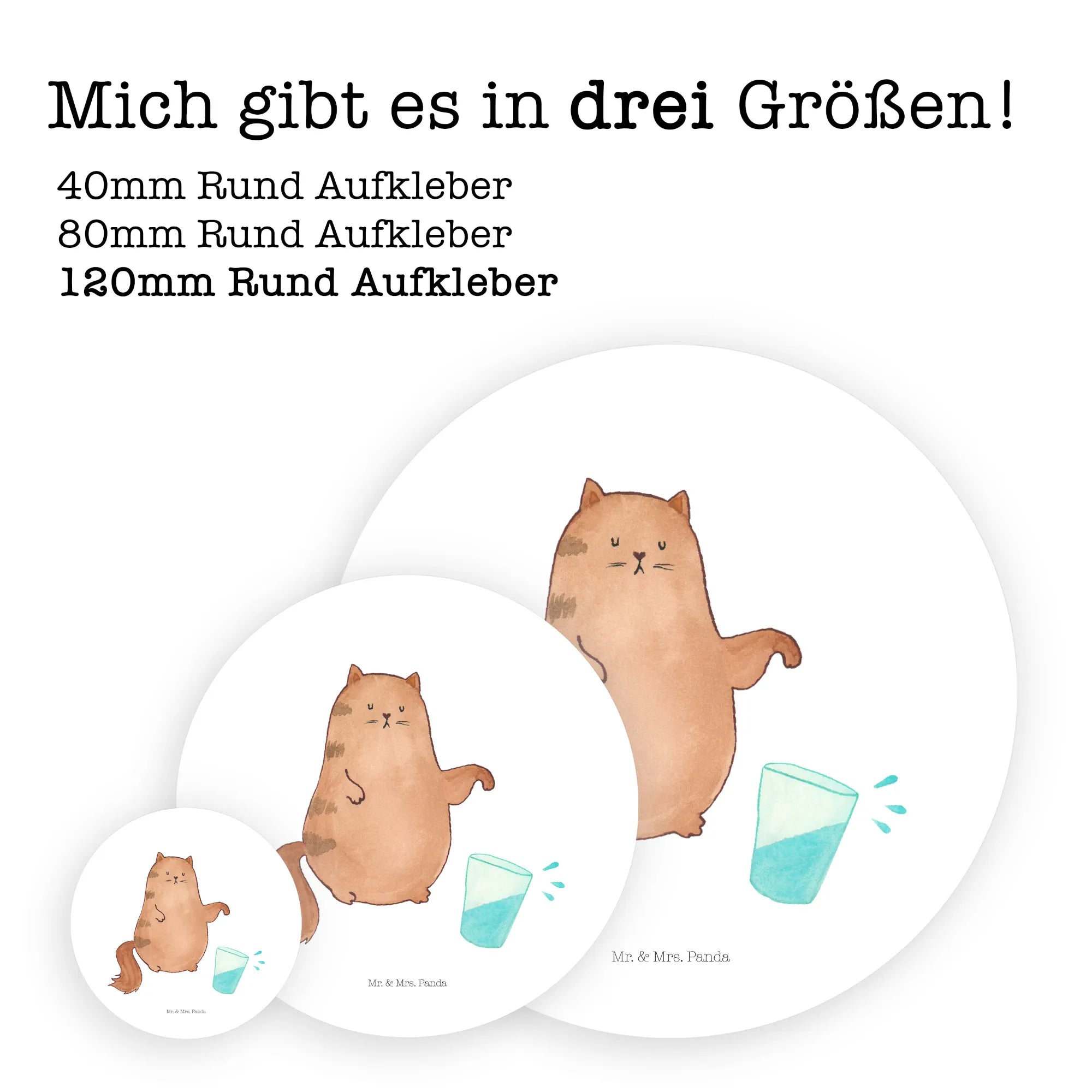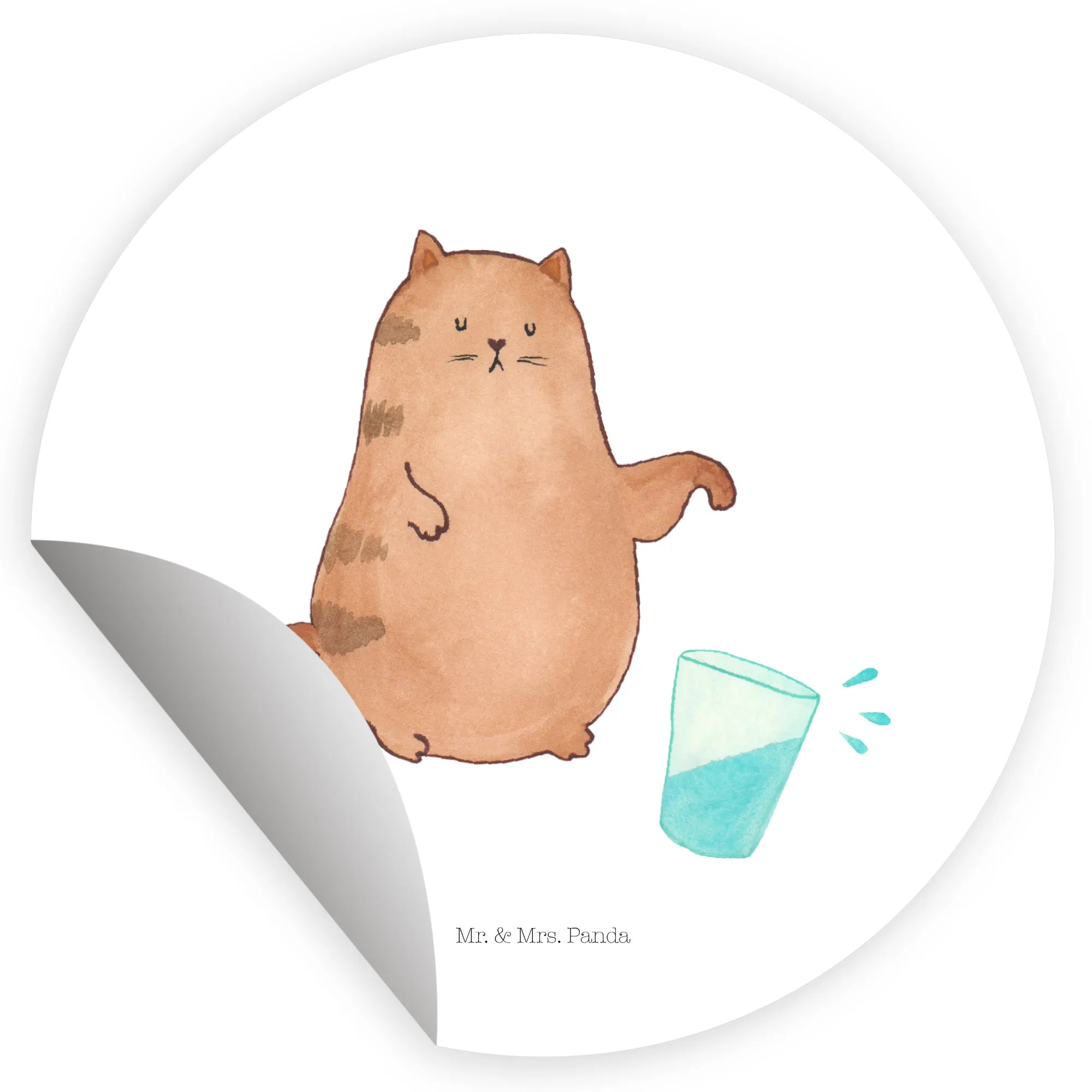 Mr. & Mrs. Panda – 40mm Rund Aufkleber "Katze Wasserglas" aus der Katzen - Kollektion