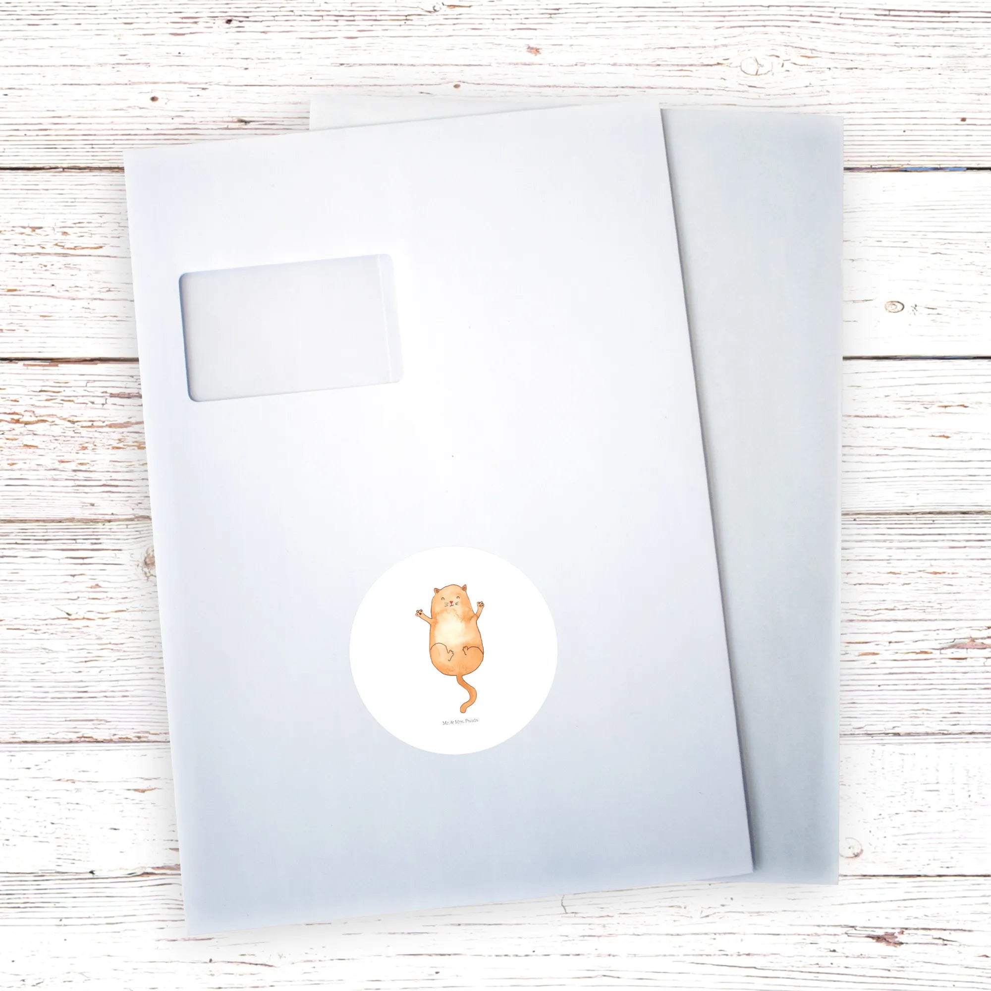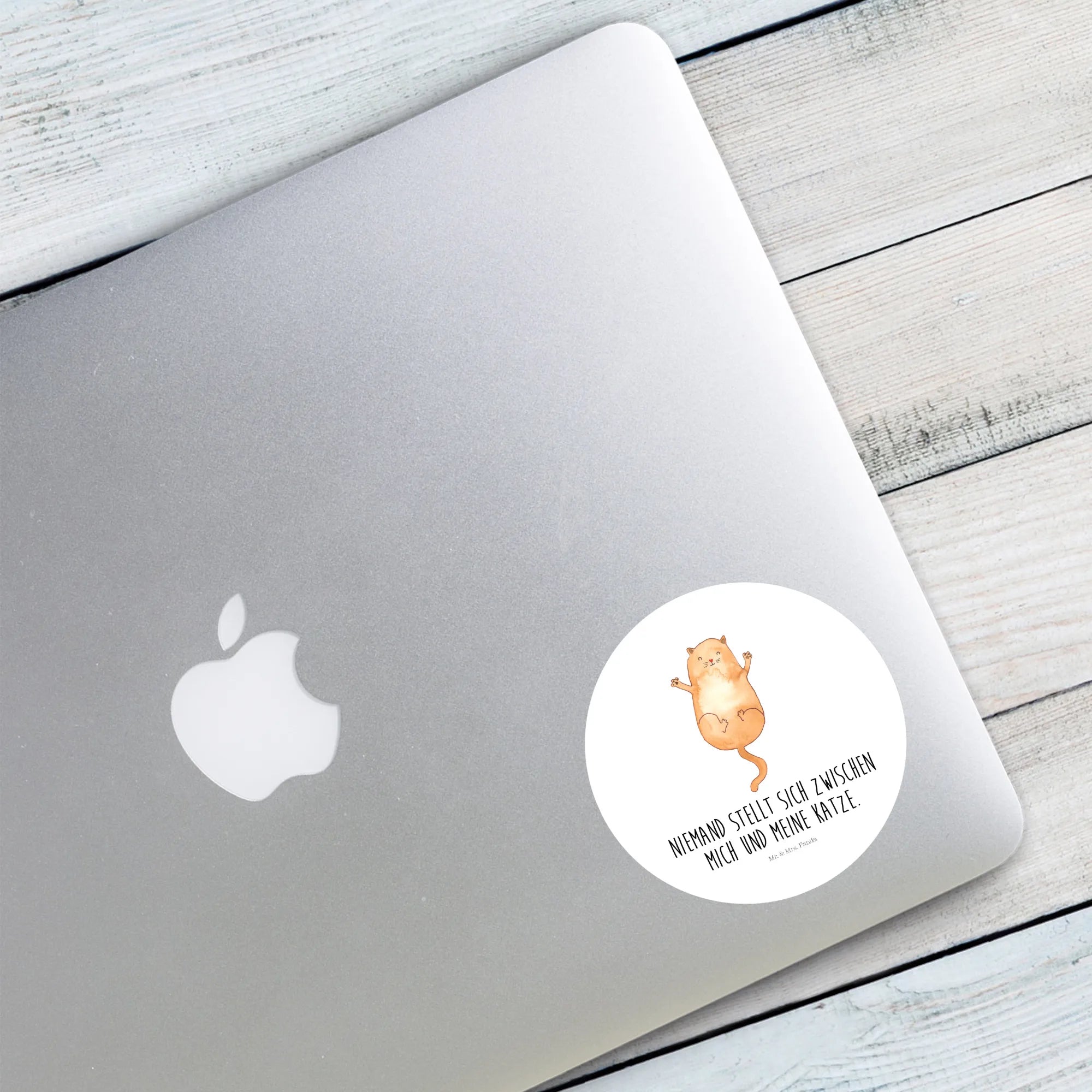 Aufkleber Katze Umarmen - 80mm Rund Aufkleber - mit Spruch - Weiß