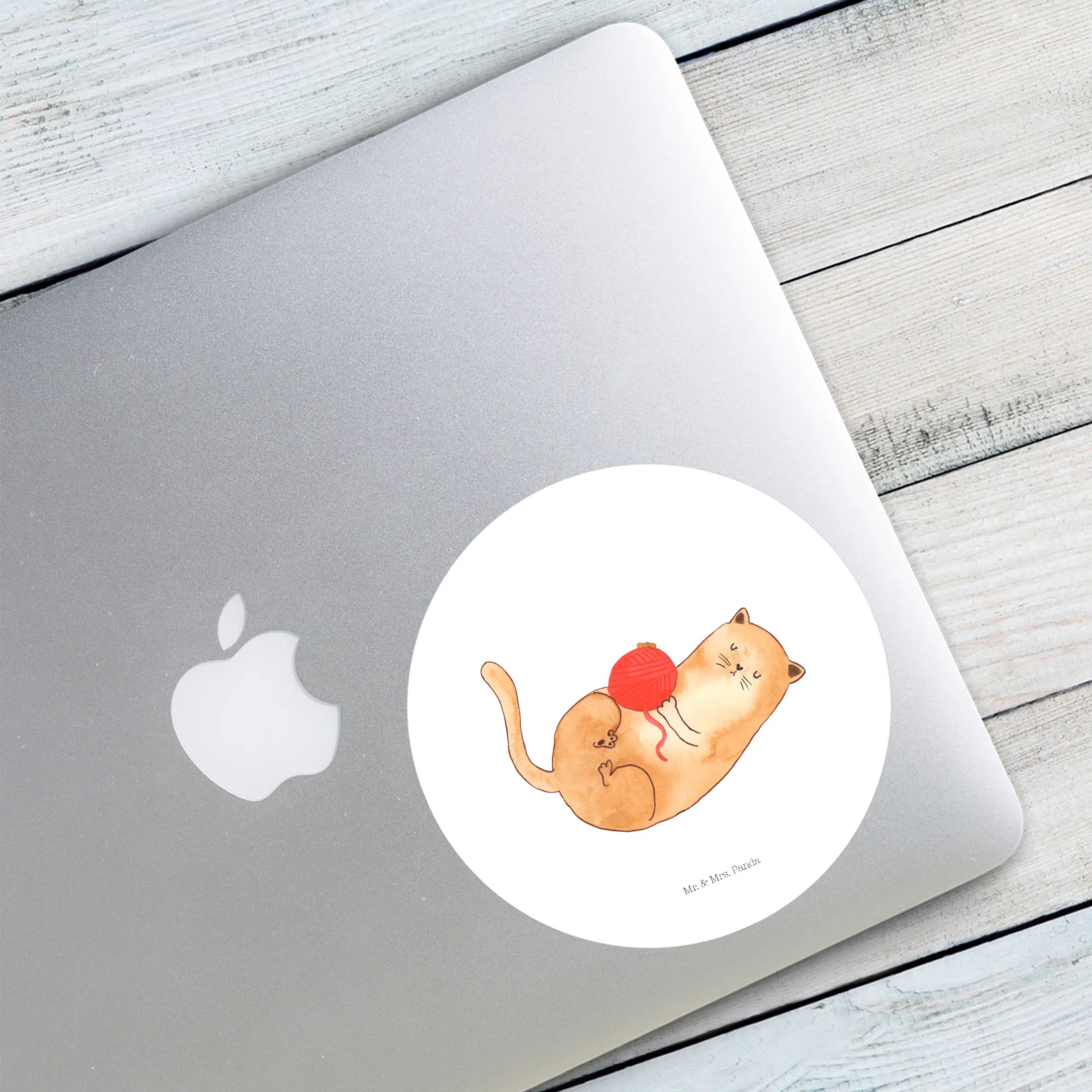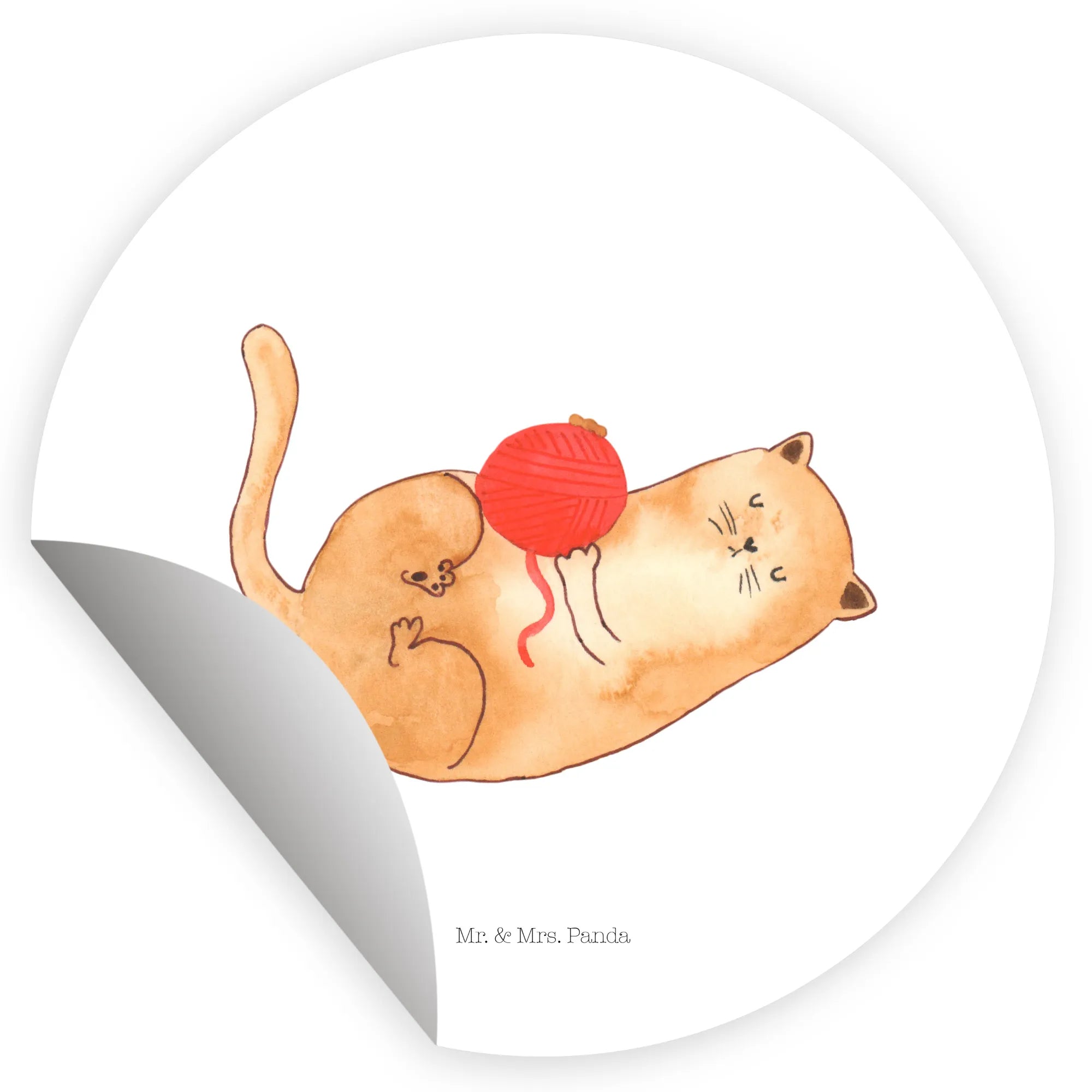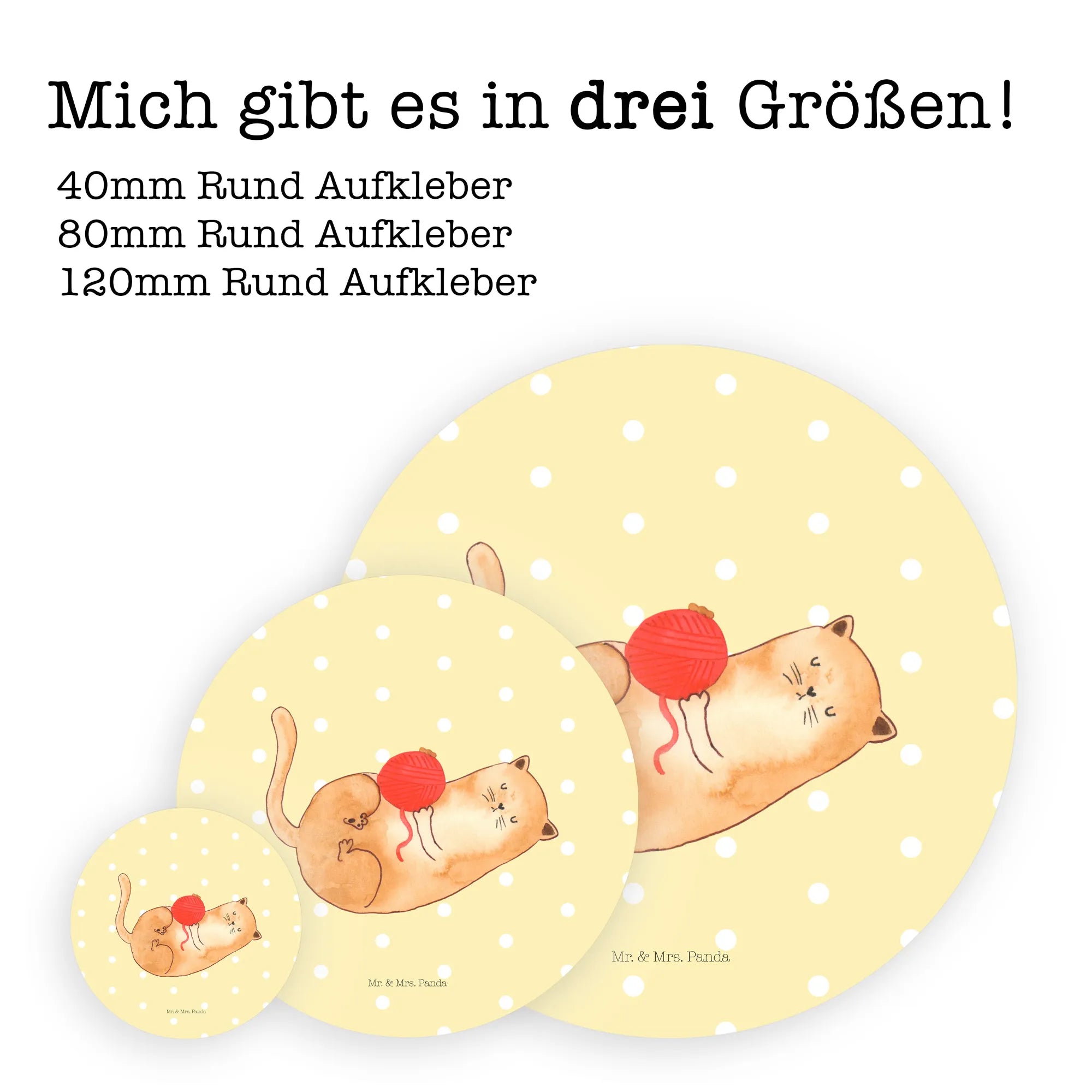 Verschenke Freude, verschönere deine Bastelarbeiten und hülle deine Geschenke in eine warmherzige, verspielte Katzenstimmung mit dem runden Aufkleber "Katzen Wollknäuel" von Mr. & Mrs. Panda.