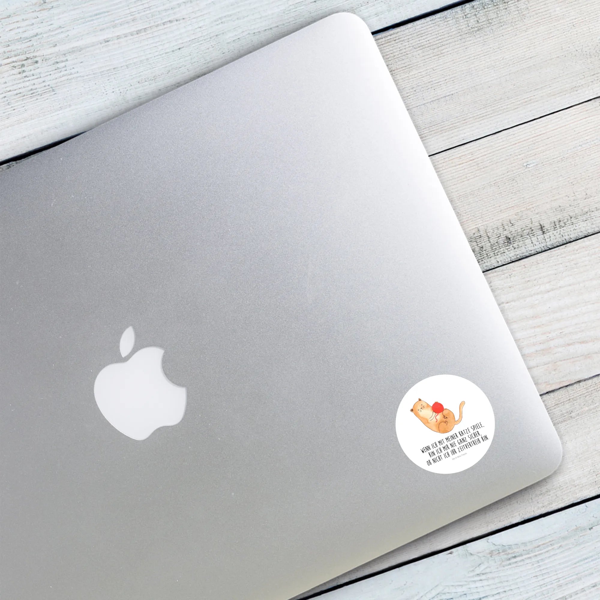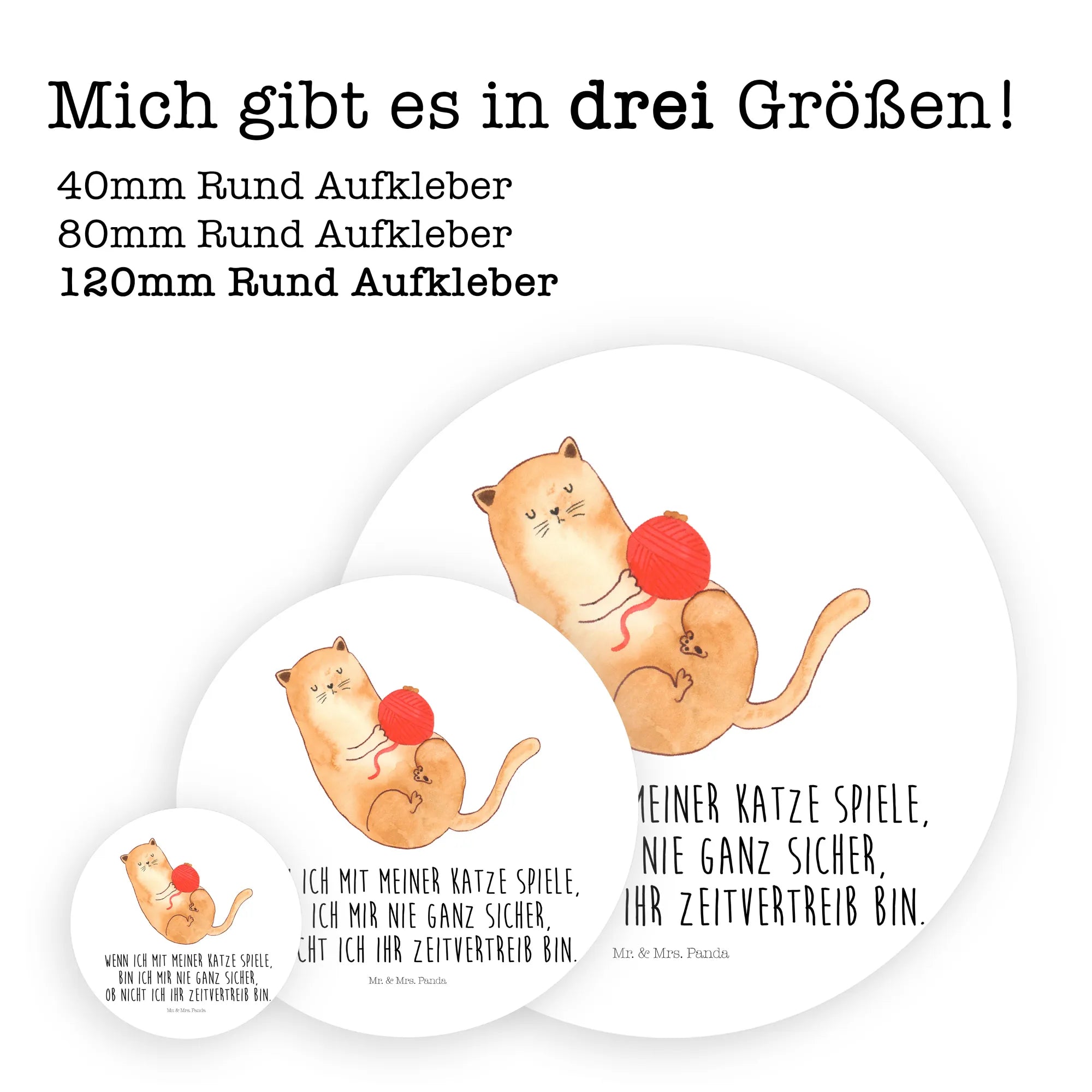 Aufkleber Katze Wolle - 80mm Rund Aufkleber - mit Spruch - Weiß