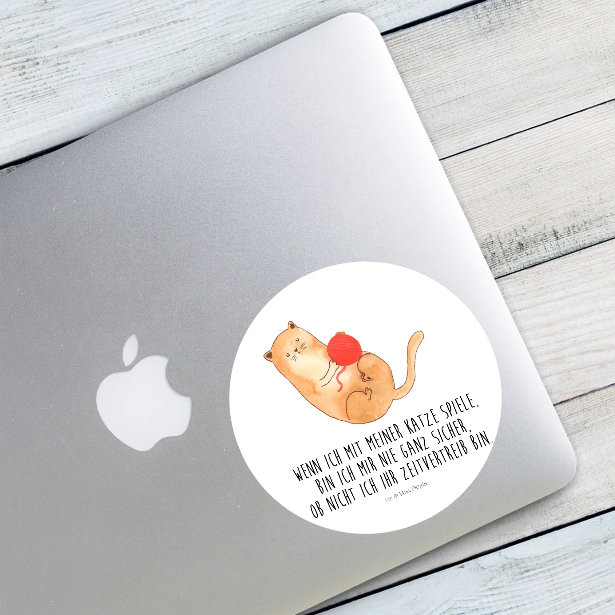 Ein zauberhafter 40mm Rundaufkleber aus der Katzen - Kollektion von Mr. & Mrs. Panda. Unser Motiv „Katzen Wollknäul" zeigt eine verspielte Katze mit Wollknäuel und trägt den wunderbaren Spruch: „Wenn ich mit meiner Katze spiele, bin ich mir nie ganz sicher, ob nicht ich ihr Zeitvertreib bin.“ Ein liebevolles Detail für alle Katzenfans.
