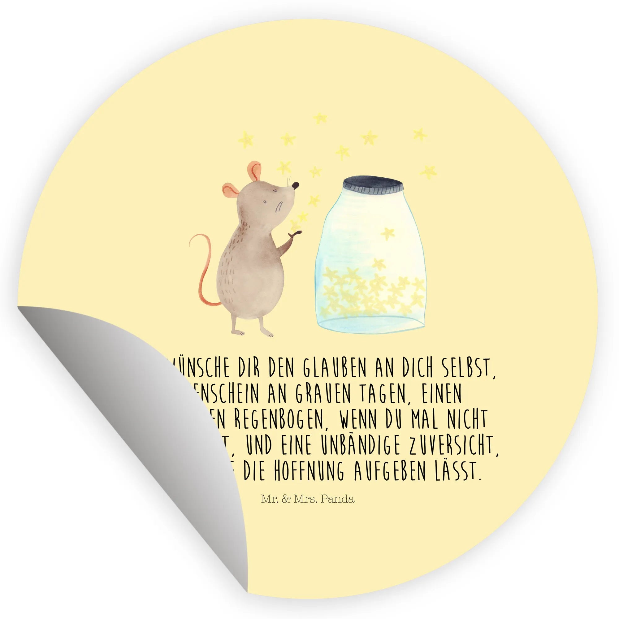 Verschenke ein Stück Magie, Hoffnung und Träume – mit dem runden Mr. & Mrs. Panda Aufkleber „Maus Sterne“. Ideal als Taufgeschenk, Geburtsgeschenk oder als liebevoller Sticker für Kinder und Familien.