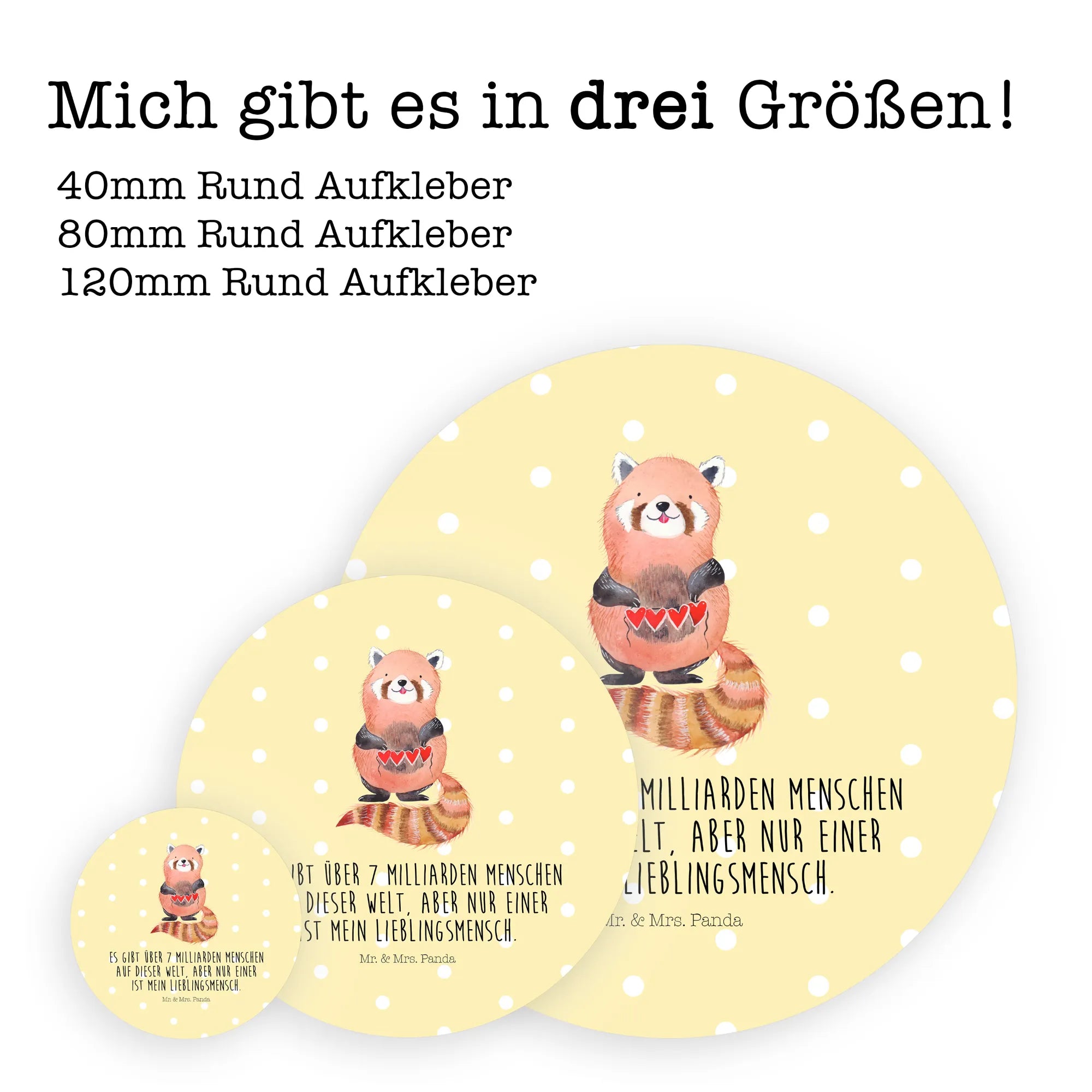 Sticker Roter Panda - 120mm Rund Aufkleber - mit Spruch - Gelb Pastell