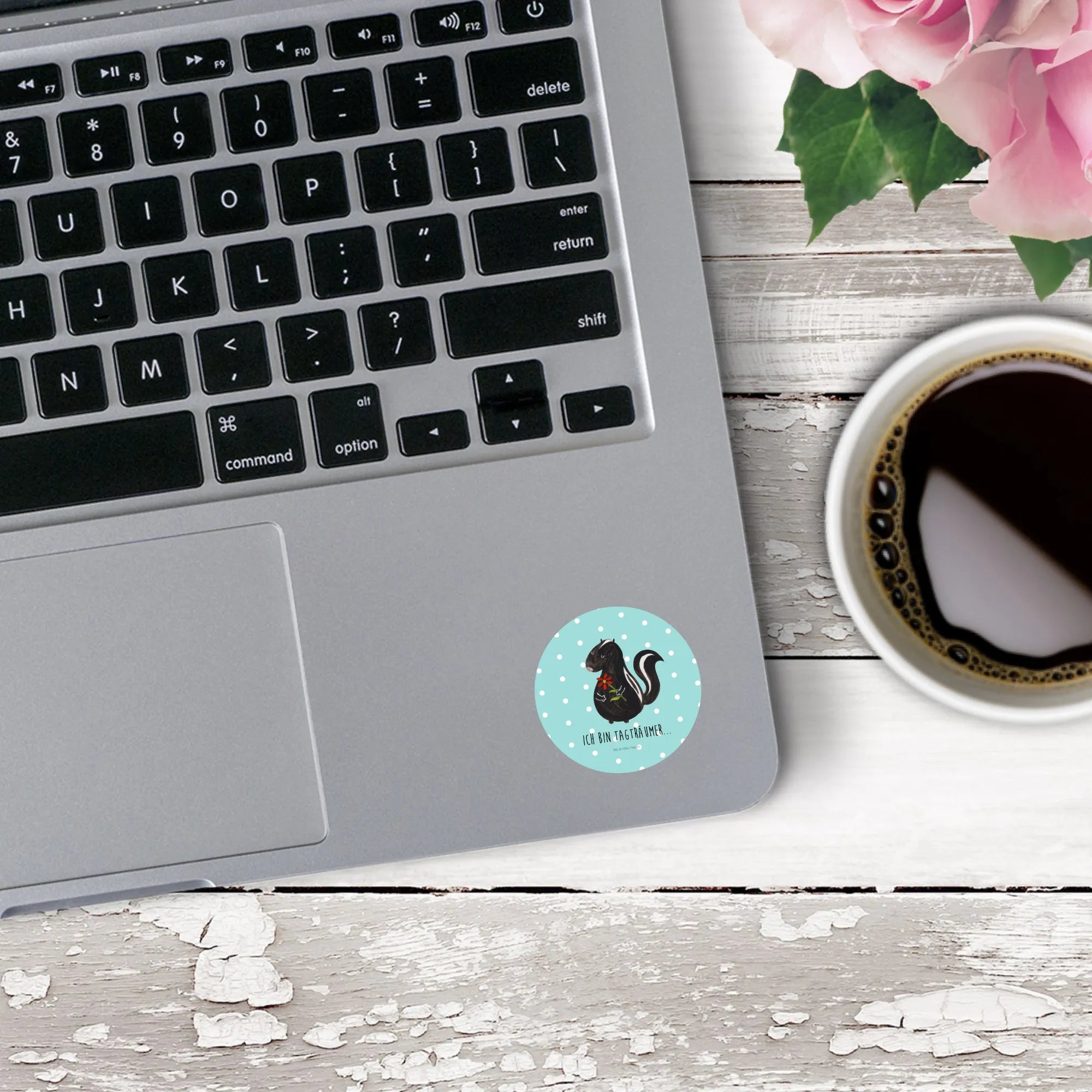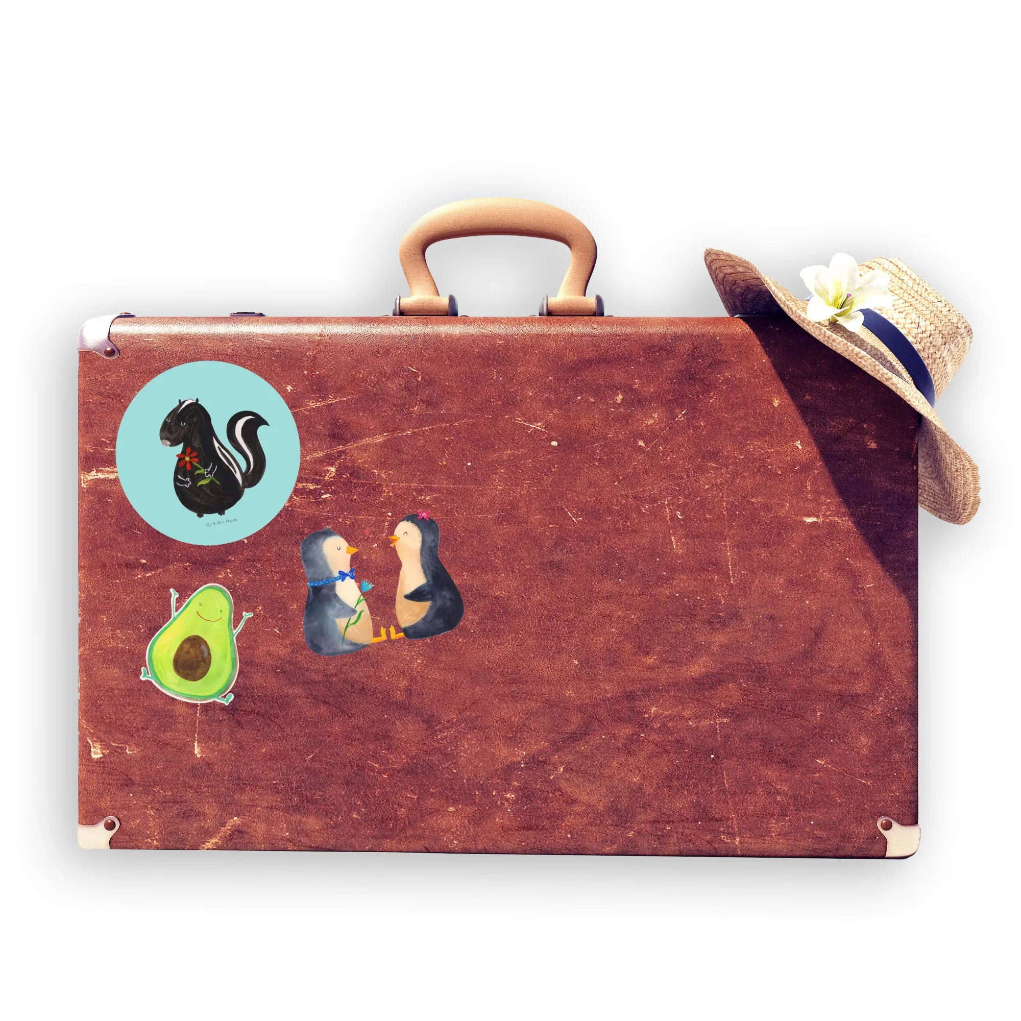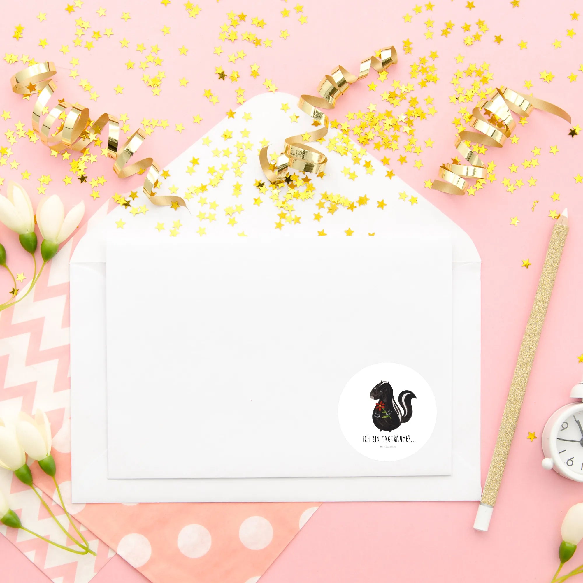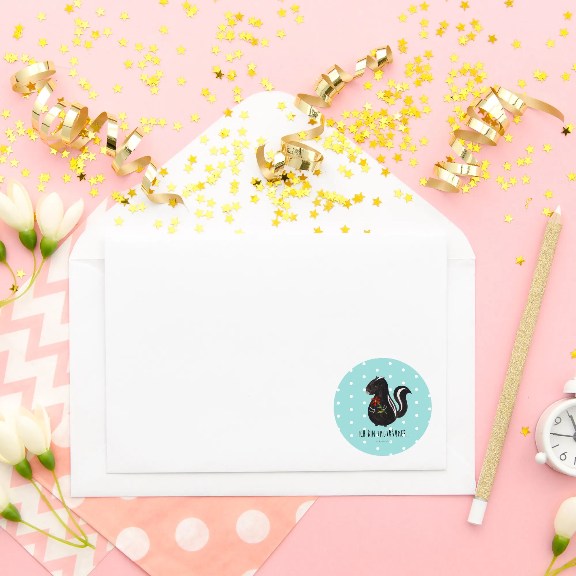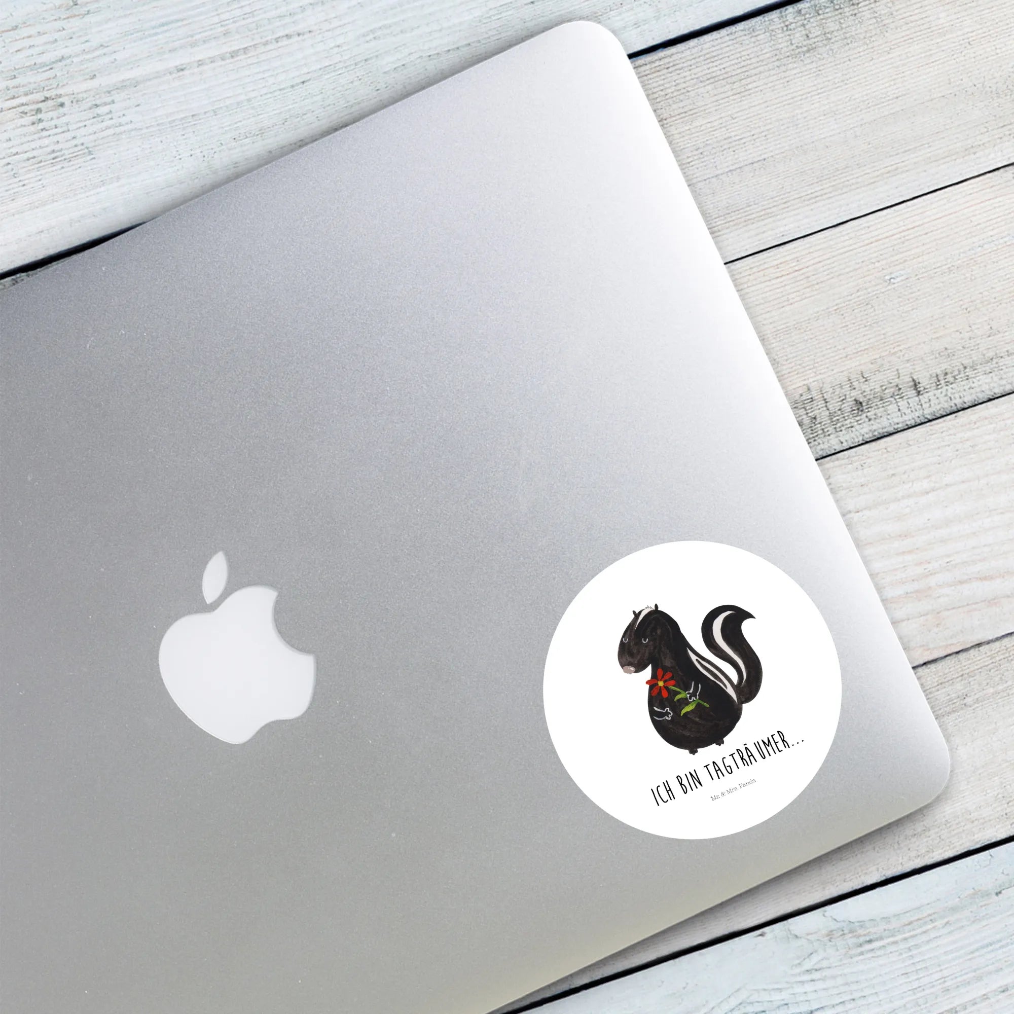 Ein zauberhafter 40 mm Rundaufkleber von Mr. & Mrs. Panda: Das Motiv "Stinktier Blume" aus der Stinktier - Kollektion verzaubert mit einem liebevoll gezeichneten Aquarell-Stinktier und einem bunten Blumenkranz. Das Design ist verspielt, zart und ideal für alle, die ihrem Projekt eine freundliche, verspielte Note geben möchten.