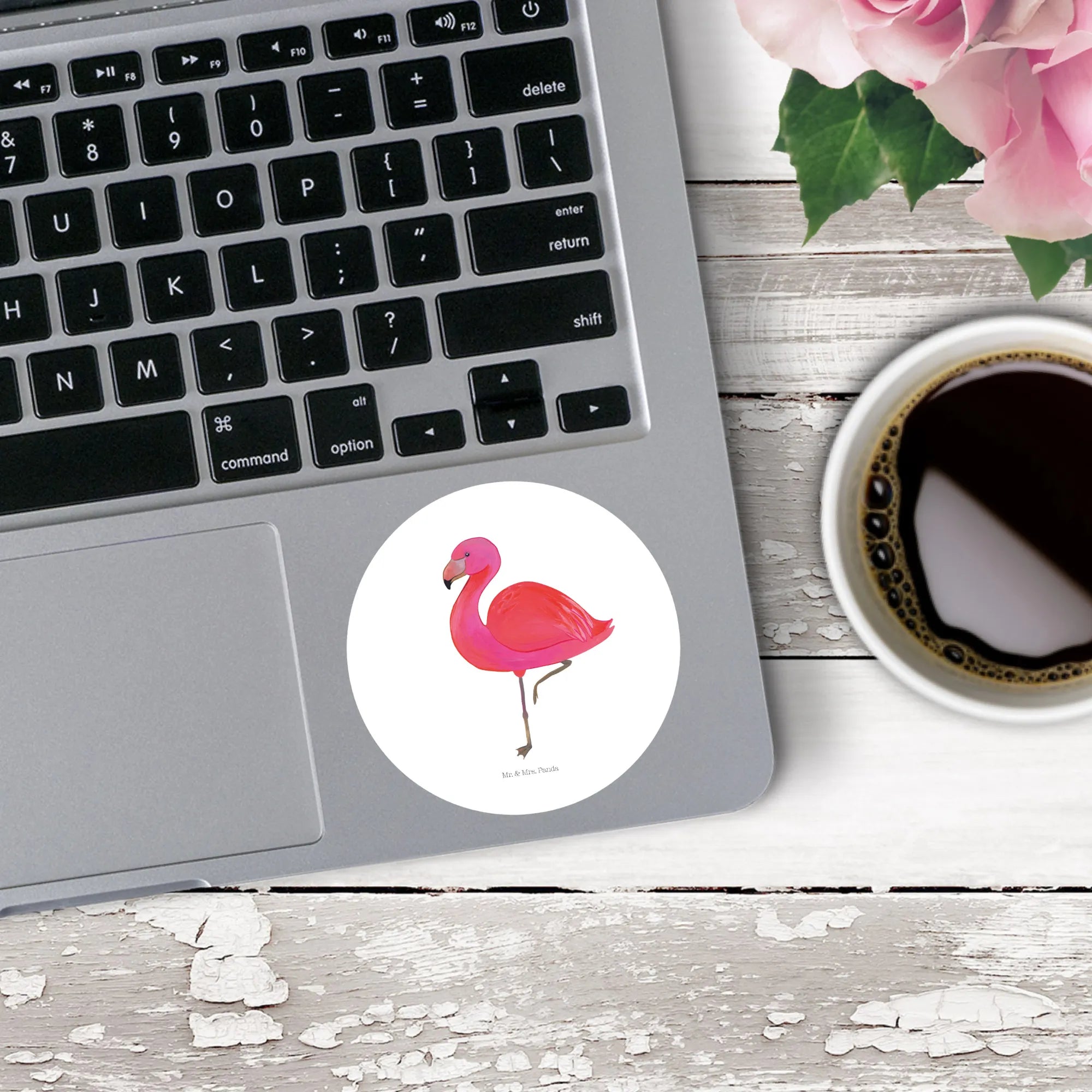Aufkleber Flamingo Classic - 80mm Rund Aufkleber - mit Spruch - Weiß