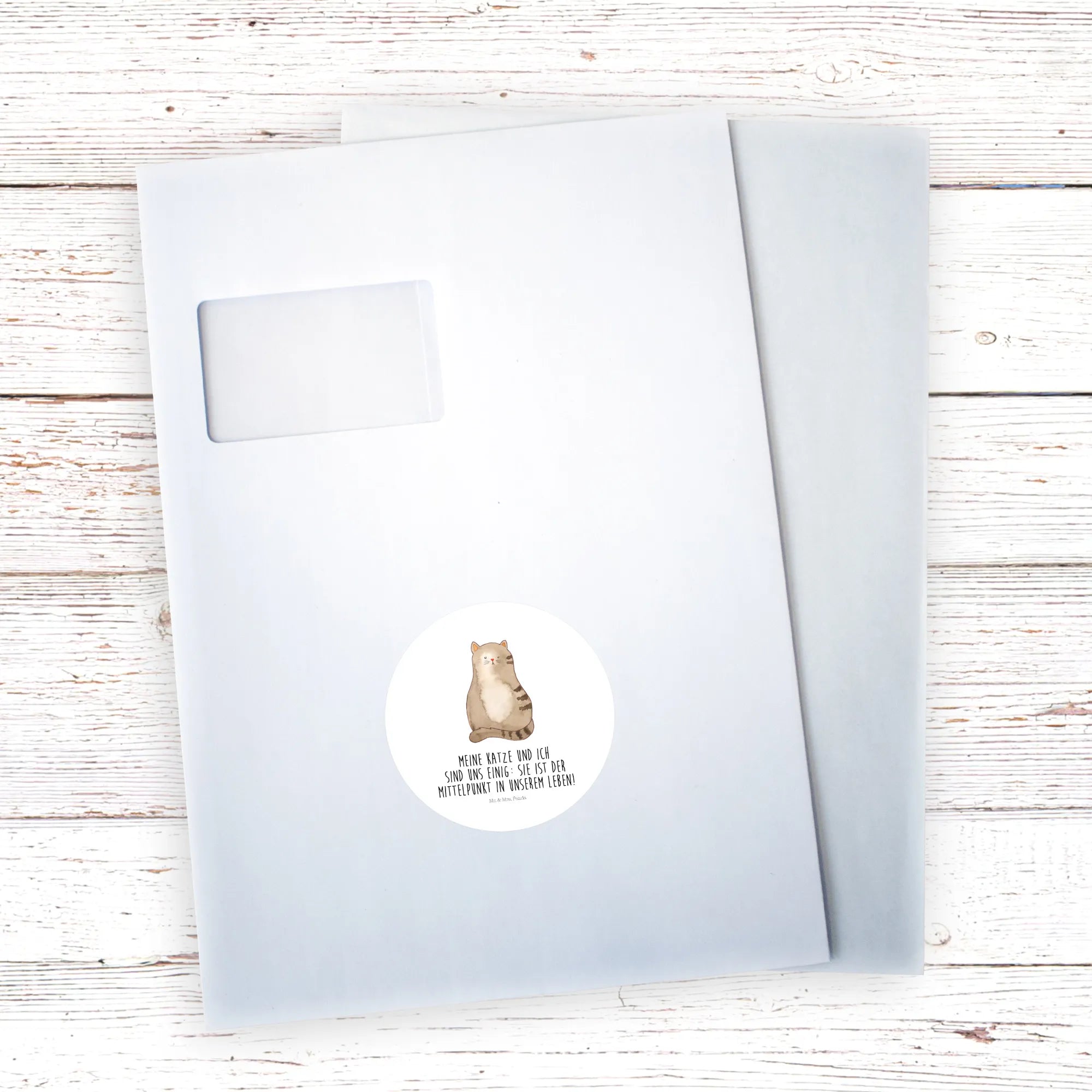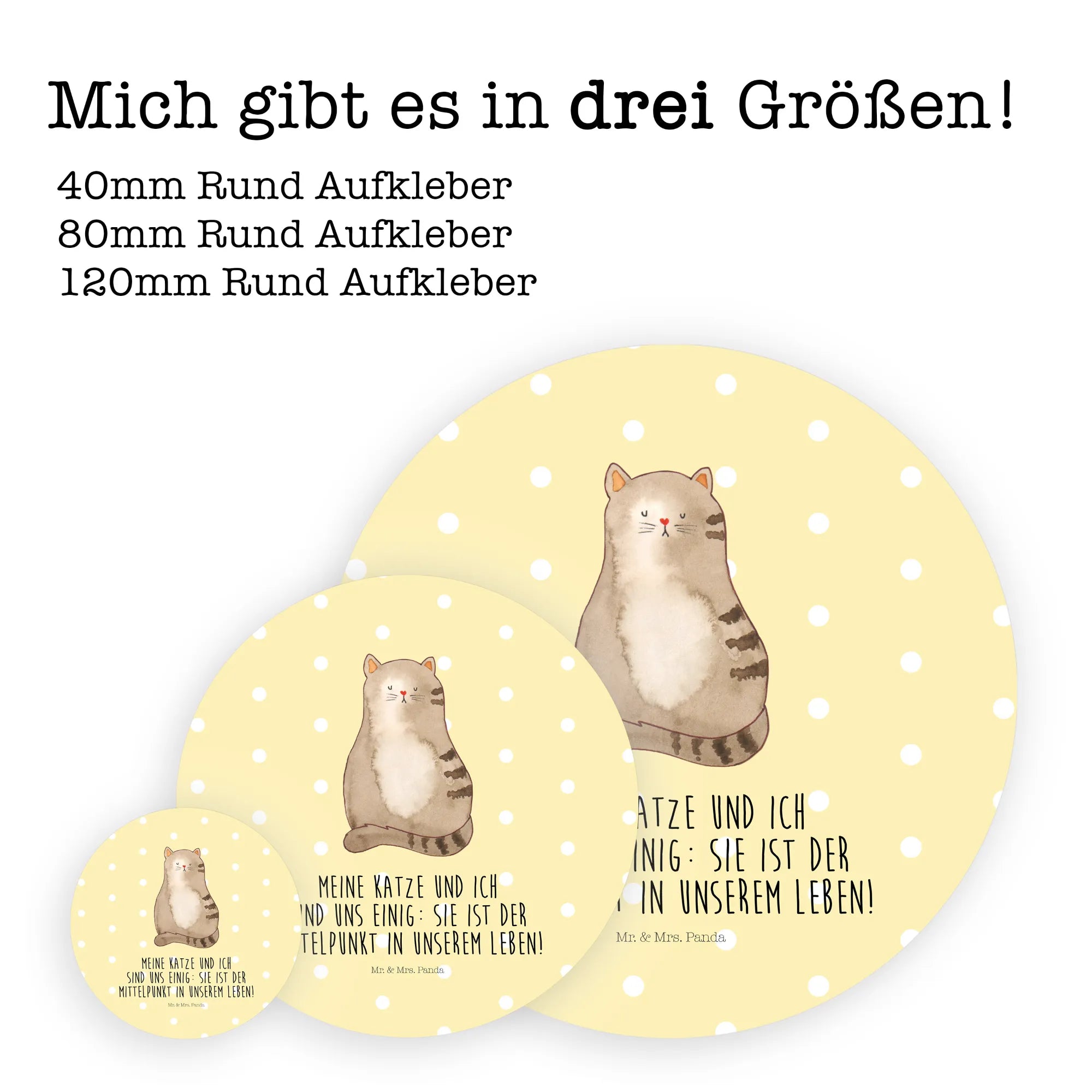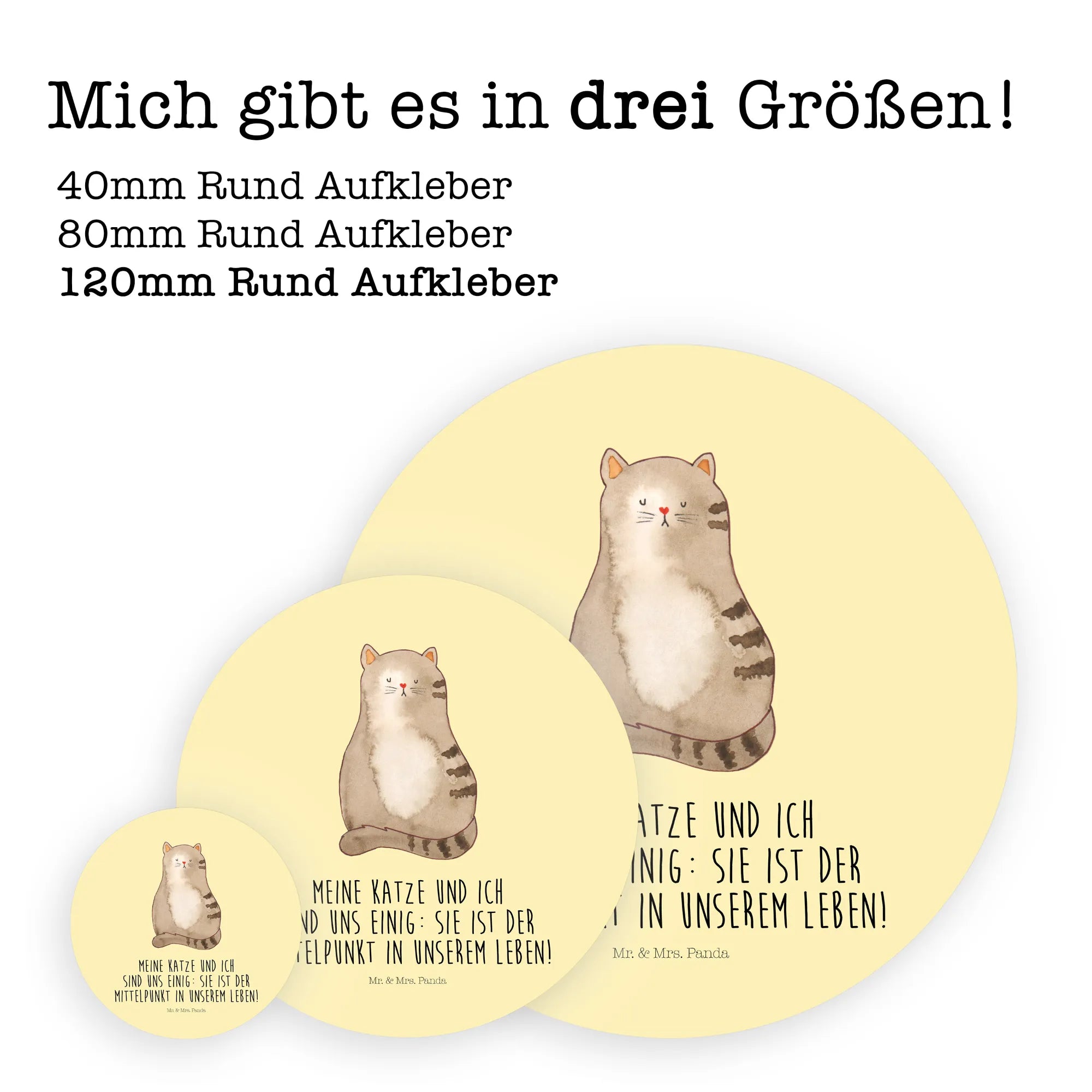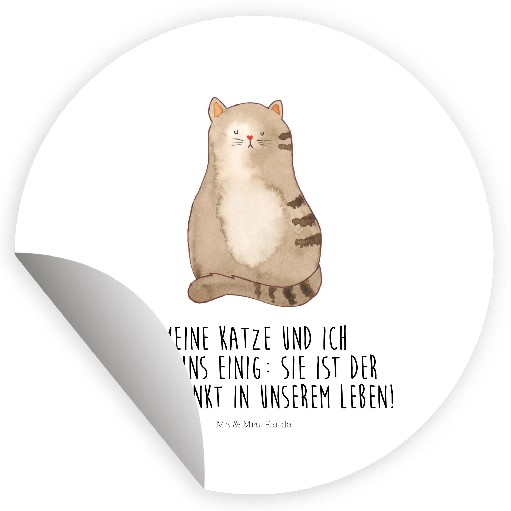 Ein liebevoller Aufkleber aus der Katzen - Kollektion von Mr. & Mrs. Panda: Unsere sitzende Katze, handgezeichnet von Mrs. Panda, kombiniert süßen Charme mit einem frechen Augenzwinkern. Der stimmige Spruch „Meine Katze und ich sind uns einig: sie ist der Mittelpunkt in unserem Leben!“ macht diesen runden Aufkleber zum perfekten Geschenk für echte Katzenfans und Katzenhalterinnen.