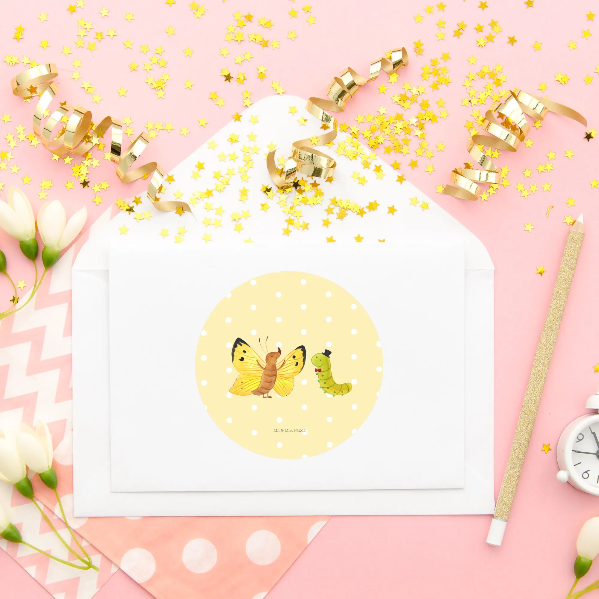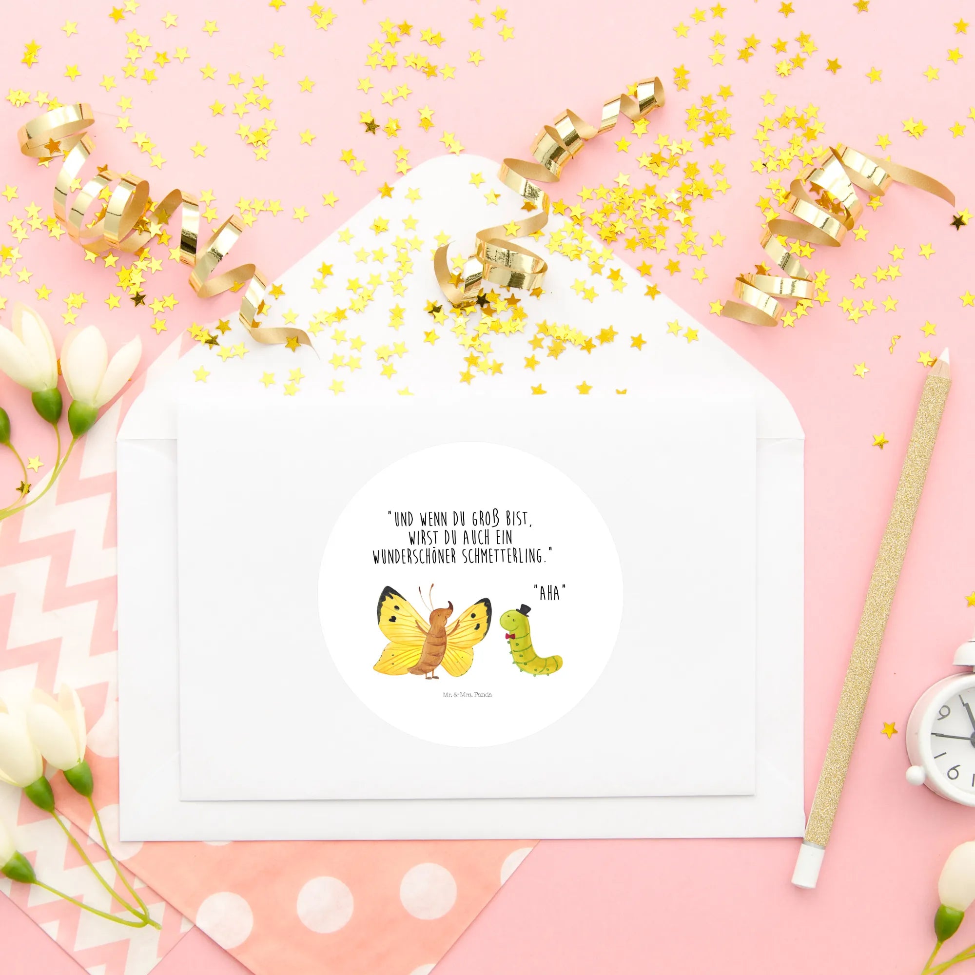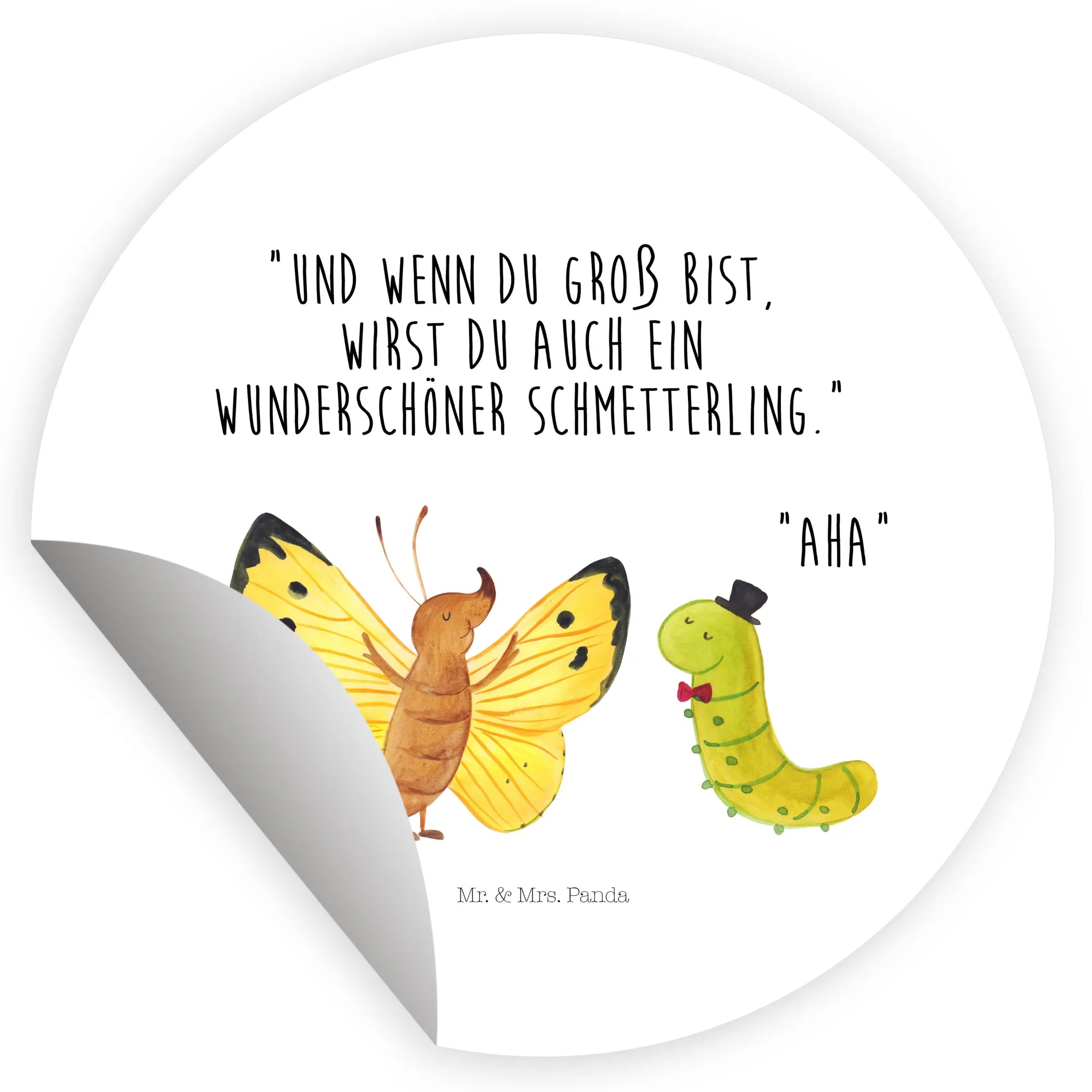 Sticker Raupe Schmetterling - 80mm Rund Aufkleber - mit Spruch - Weiß