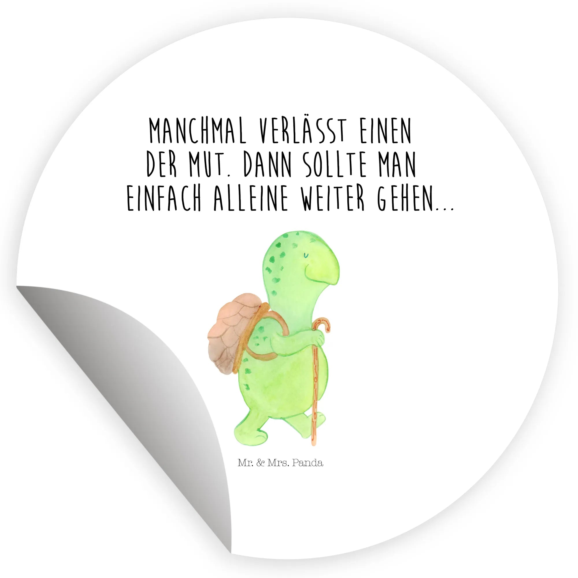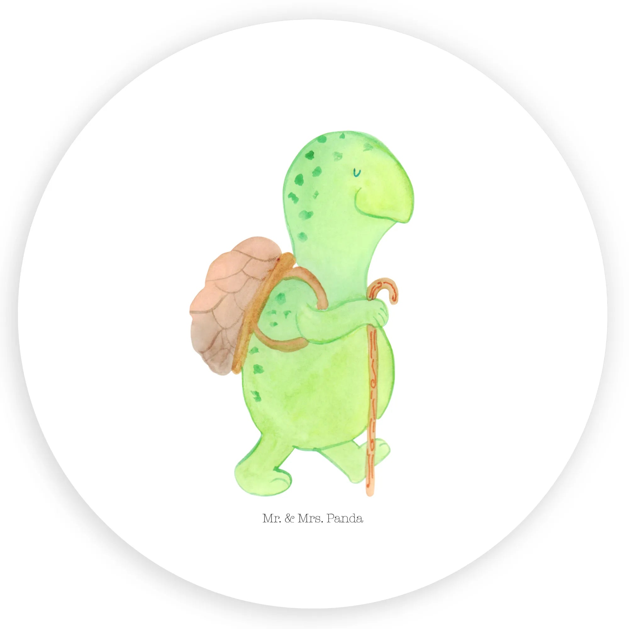 Sticker Schildkröte Wanderer - 40mm Rund Aufkleber - mit Spruch - Weiß