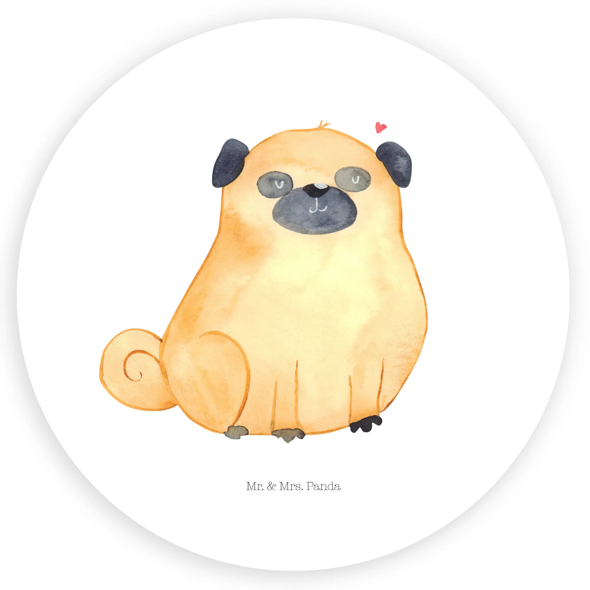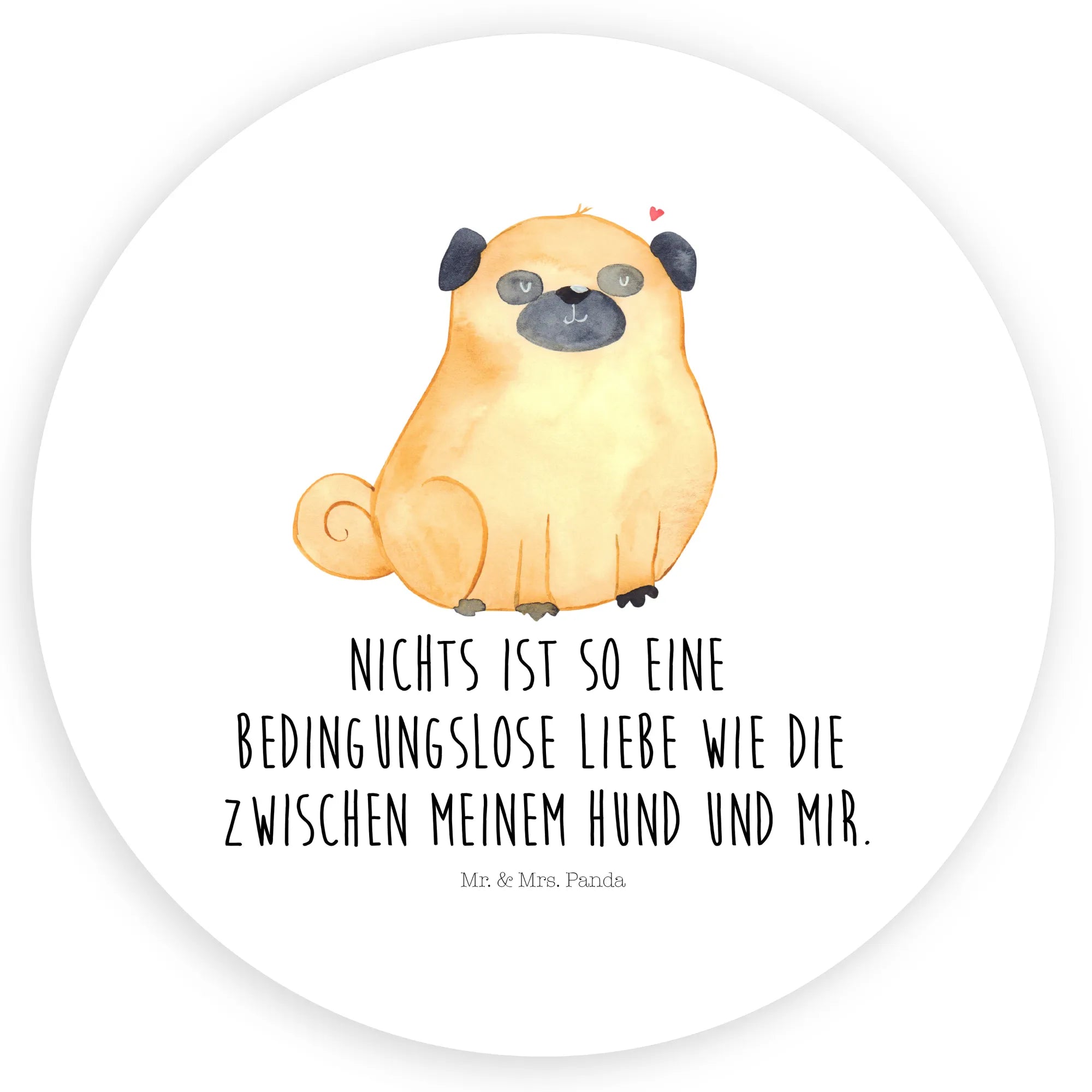 Rund Aufkleber Mops - 80mm Rund Aufkleber - mit Spruch - Weiß