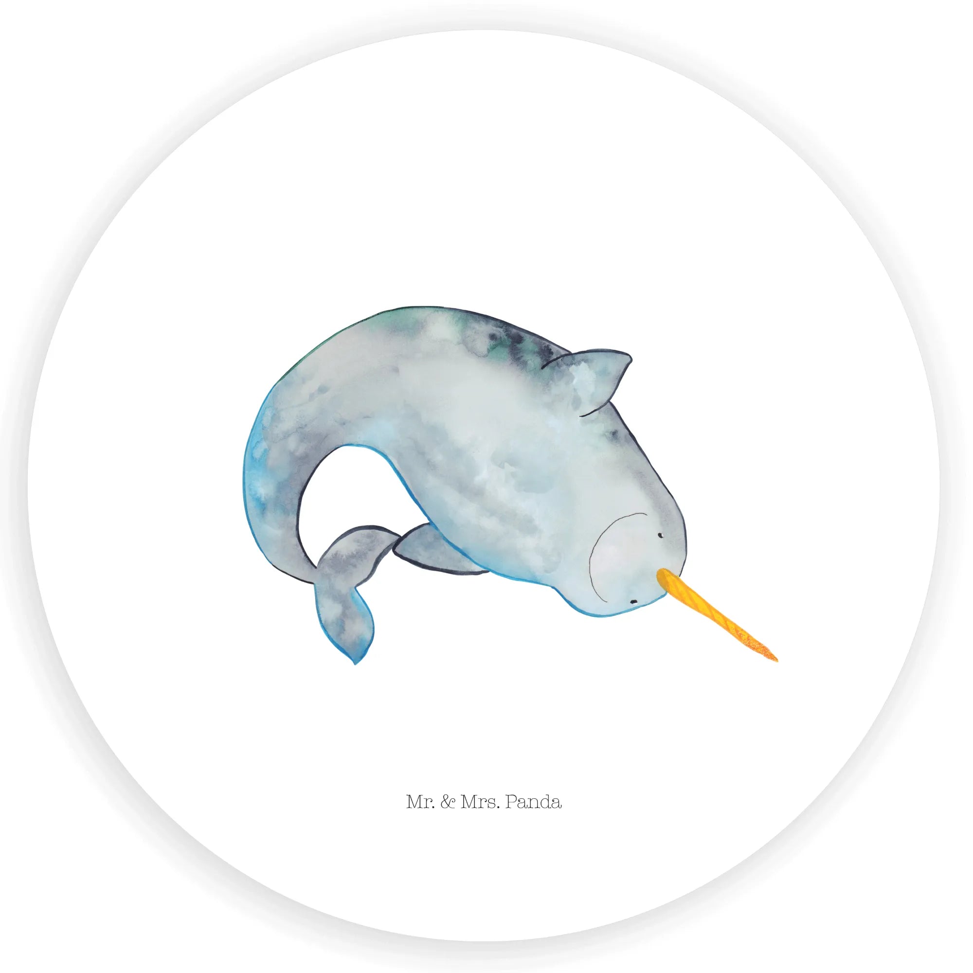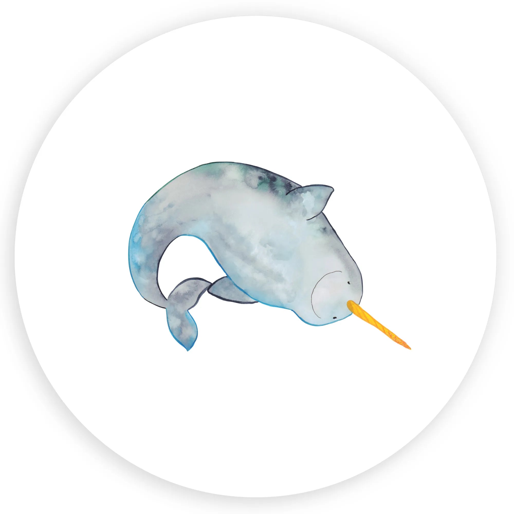 Ein zauberhafter 40mm Rund Aufkleber von Mr. & Mrs. Panda – unser Narwal aus der Meerestiere-Kollektion bringt Meeresflair in Deinen Alltag. 🐳 Der liebevoll gezeichnete Narwal in sanften Blau- und Grautönen mit einem gelb-orangenen Stoßzahn ist ein echter Hingucker und passt perfekt als runder Sticker für Kindergeburtstag, Scrapbooking oder als Gäste-Goodie.