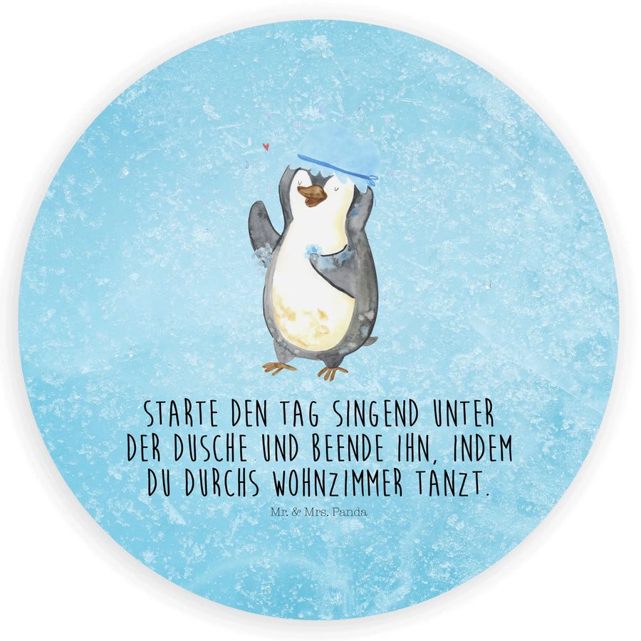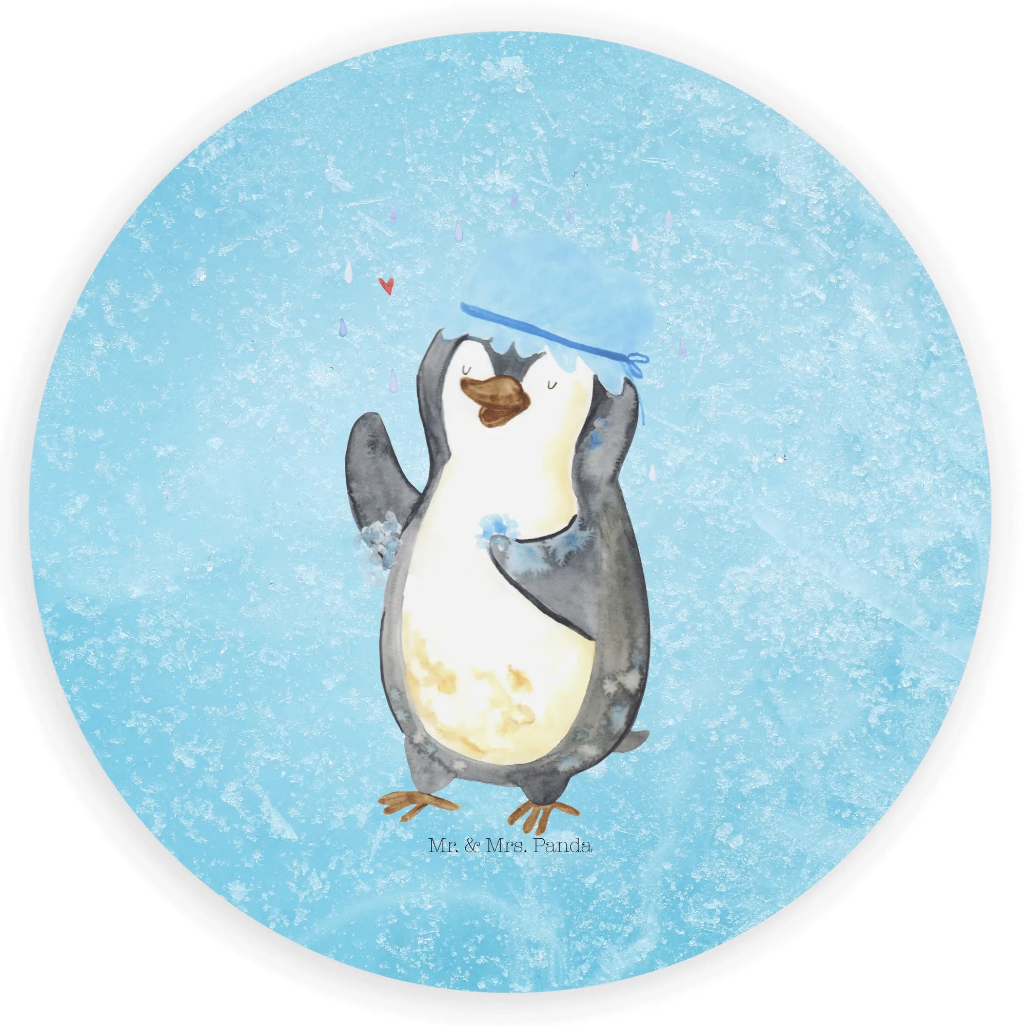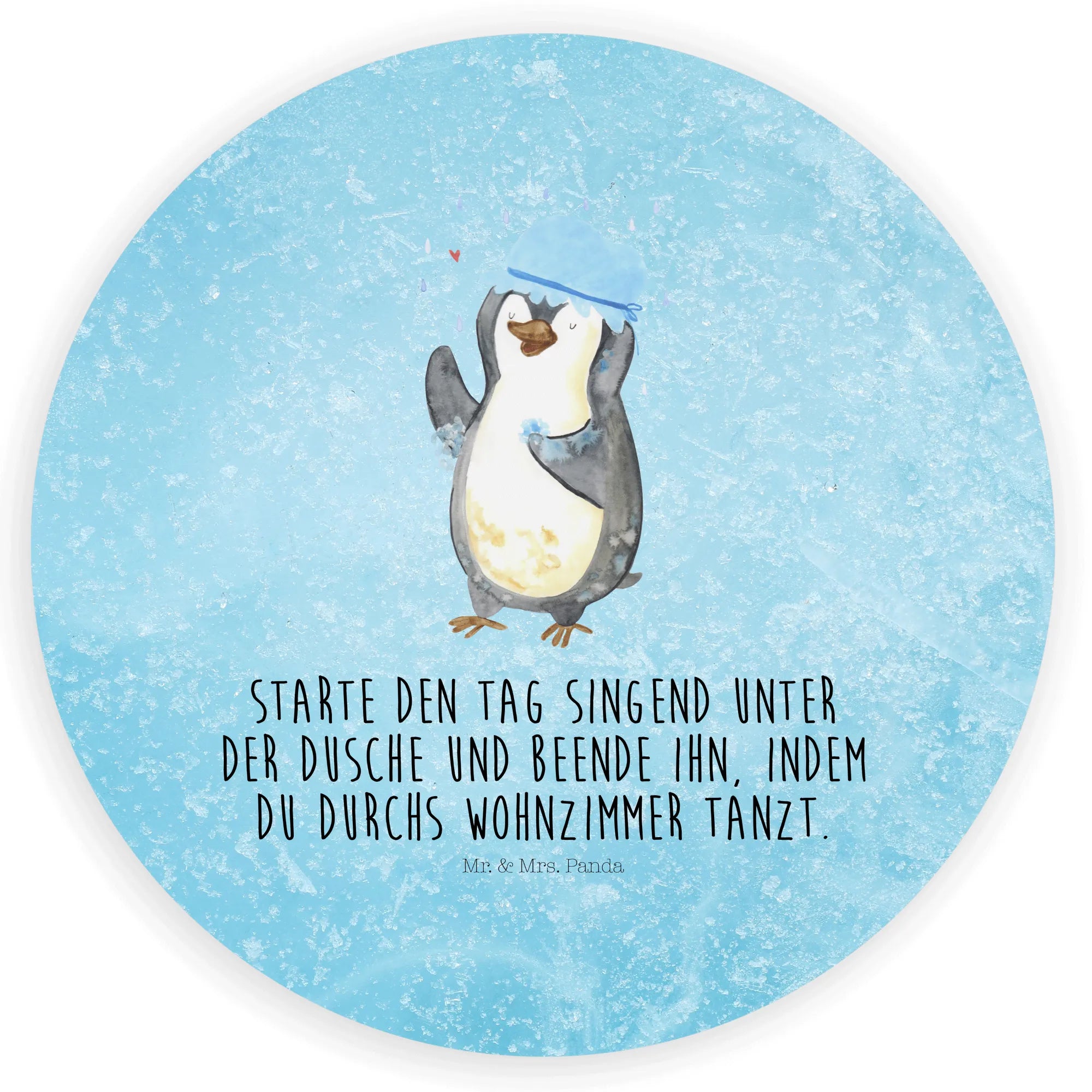 Rund Aufkleber Pinguin duscht - 80mm Rund Aufkleber - mit Spruch - Eisblau