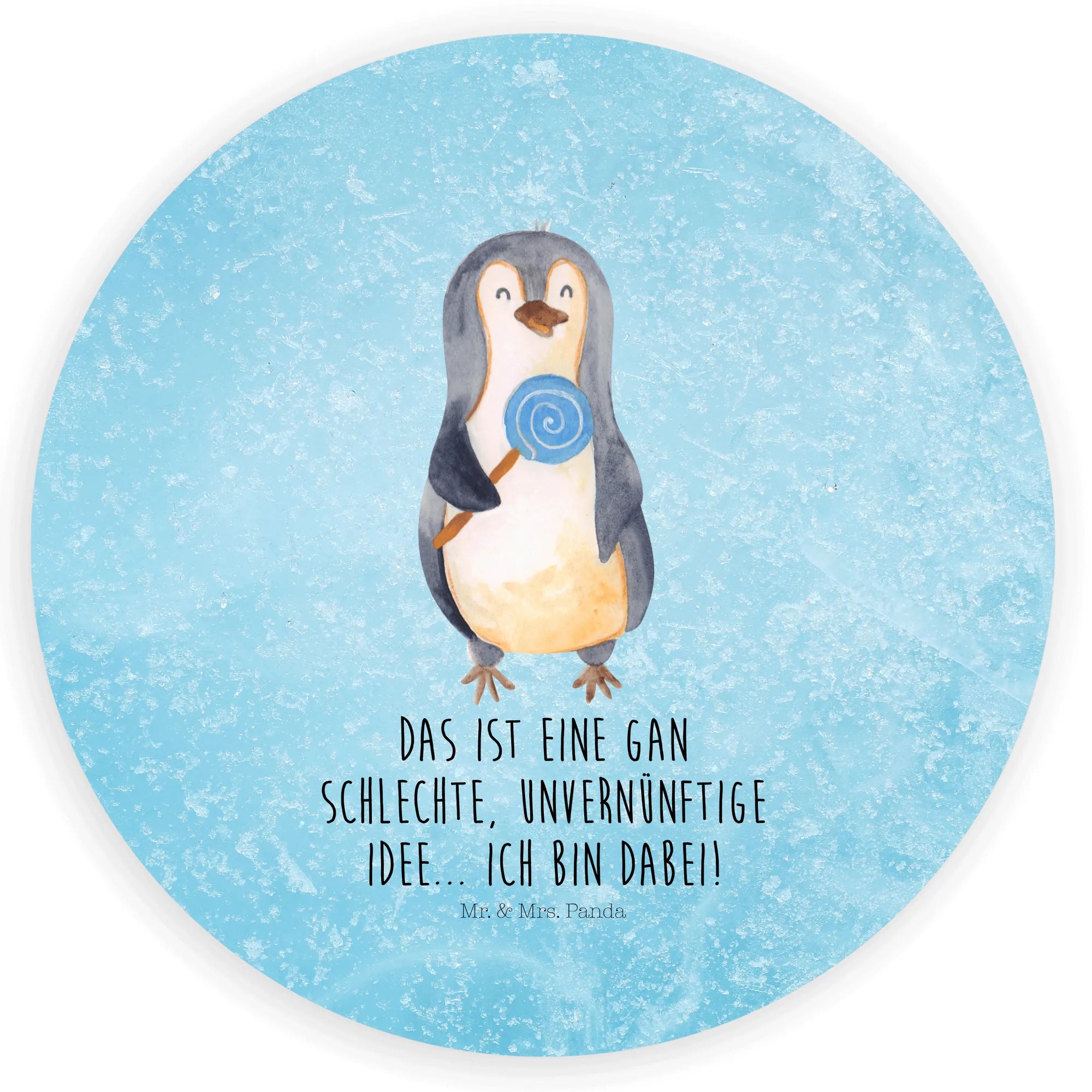 Rund Aufkleber Pinguin Lolli - 120mm Rund Aufkleber - mit Spruch - Eisblau