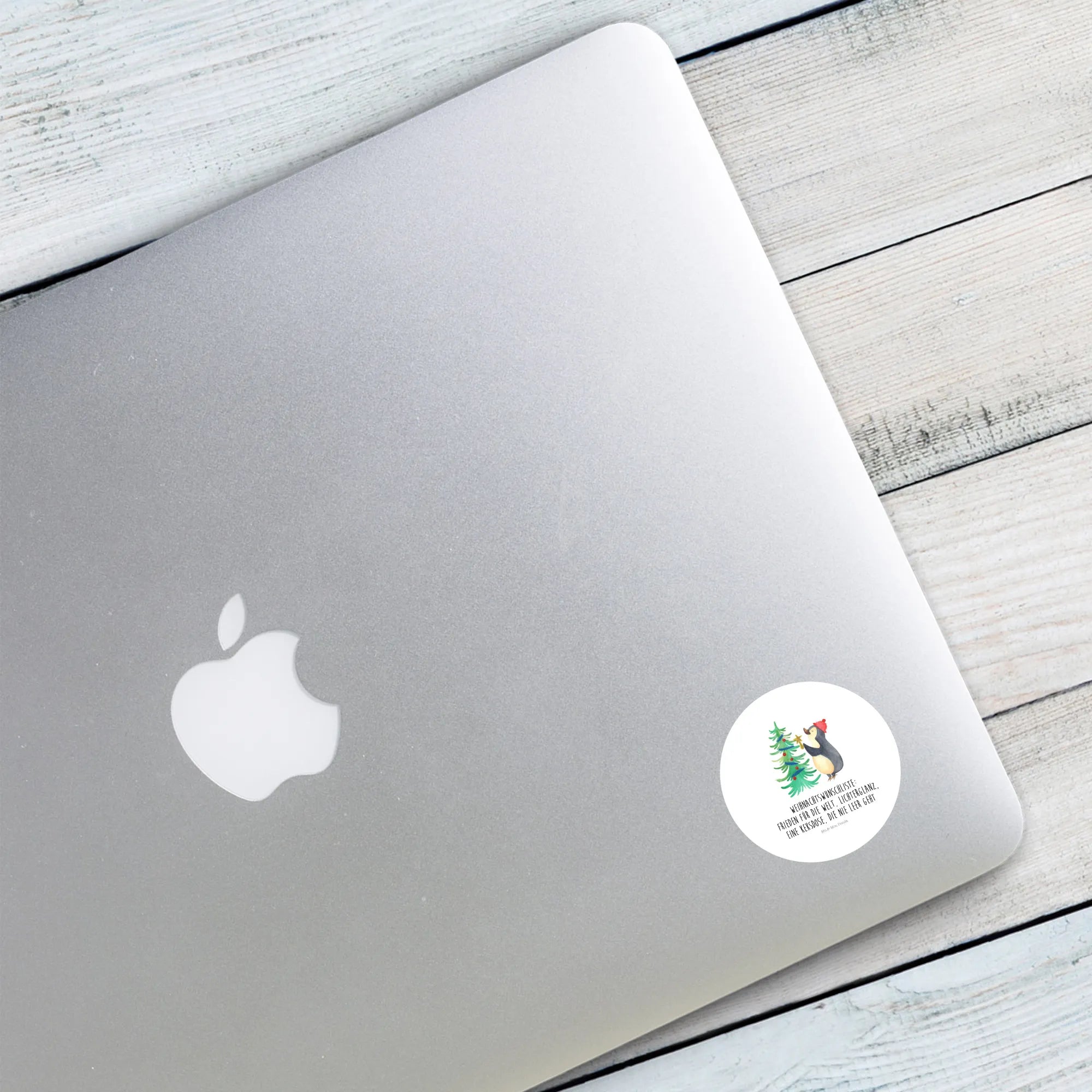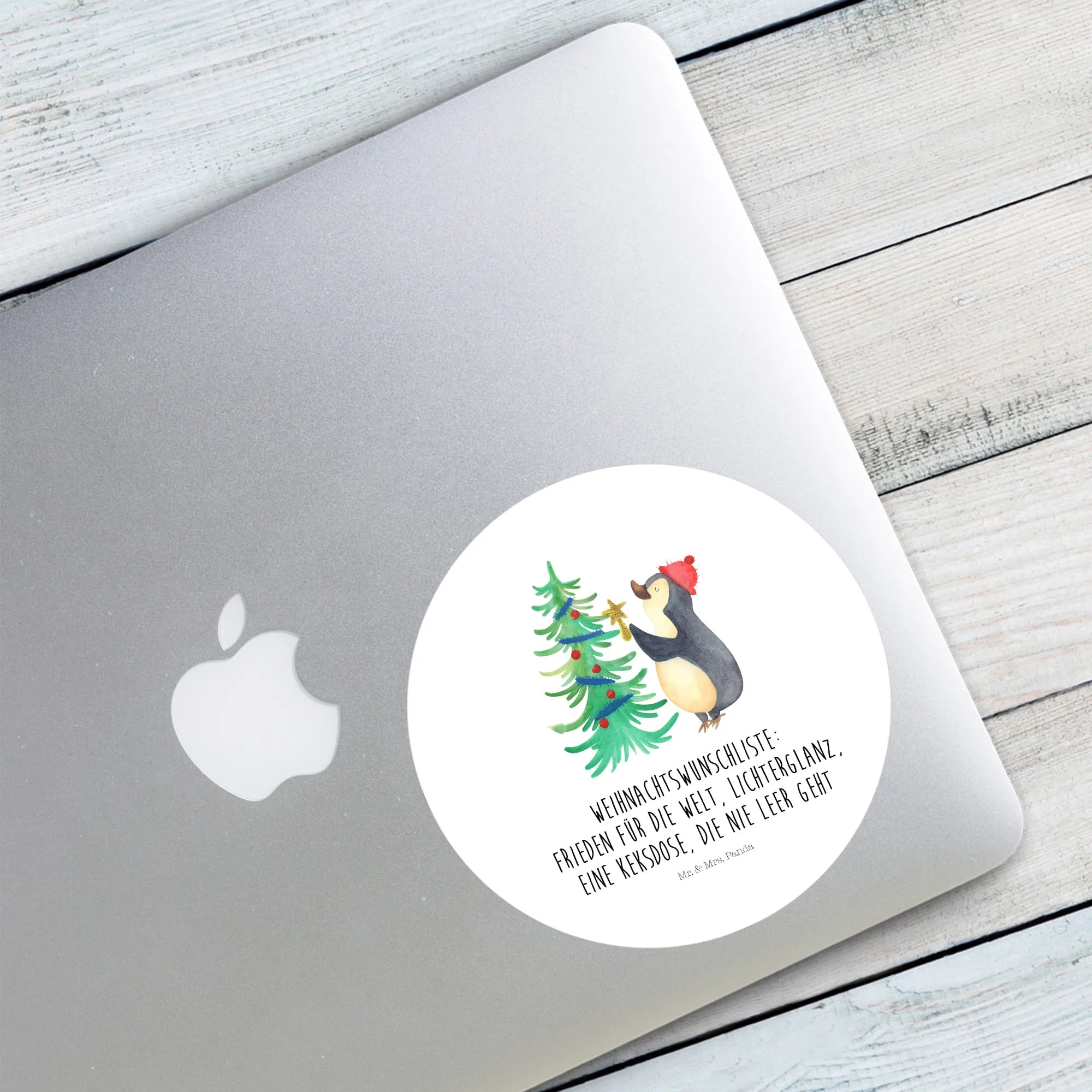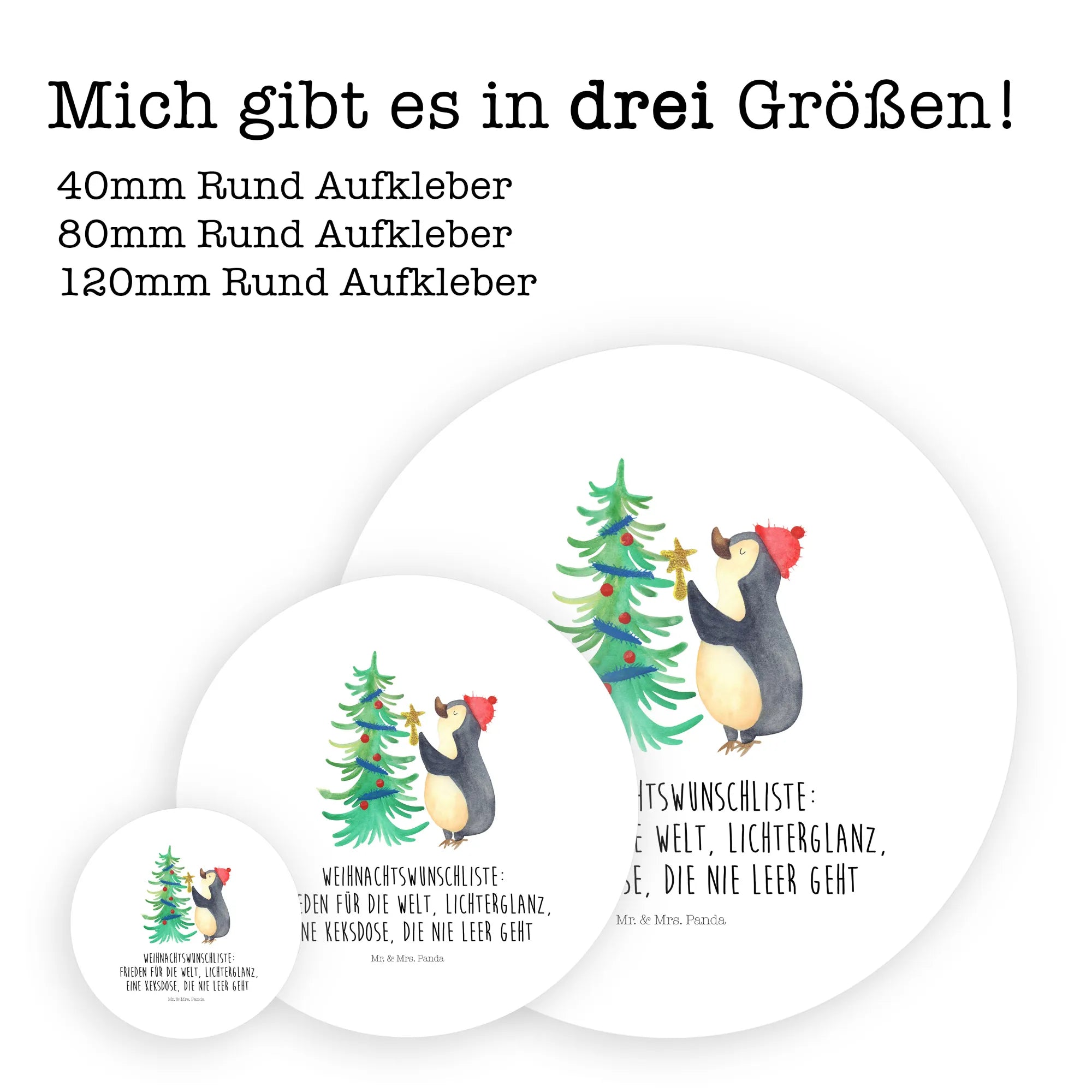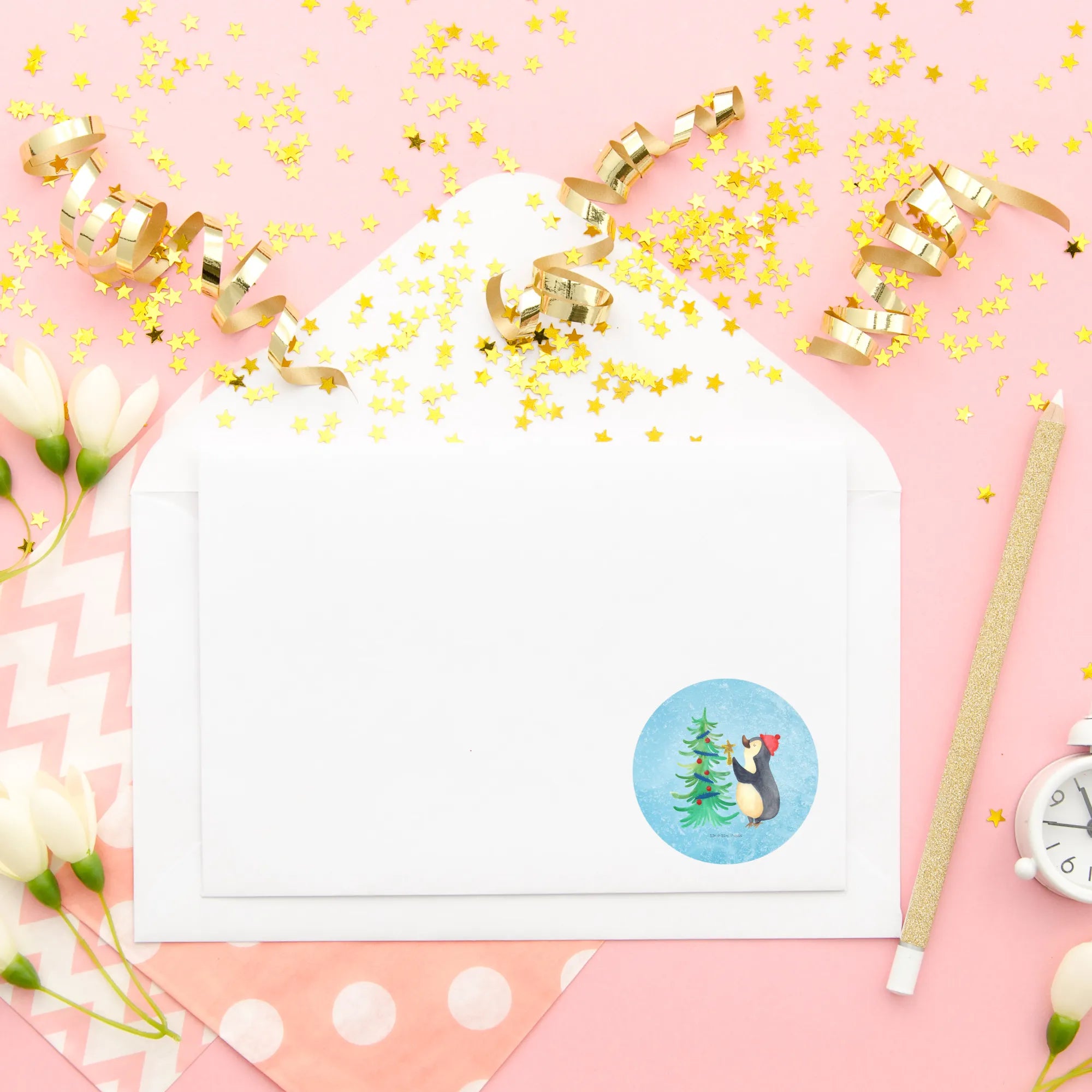 Schaffe ein fröhliches Ambiente mit unseren Winter und Weihnachtsmotiven! Platziere den Aufkleber auf einer Keksdose, um deinen süßen Vorrat zu kennzeichnen oder nutze ihn, um deine Weihnachtswunschliste zu dekorieren. Wenn du nach einem kreativen und herzerwärmenden Geschenk suchst, dann ist der 80mm Rund Aufkleber mit dem Pinguin und dem Weihnachtsbaum die ideale Wahl. Er ist ein kleiner, aber feiner Teil der Winter Kollektion von Mr. & Mrs. Panda, die dir hilft, die schönste Zeit im Jahr zu genießen! Voller Liebe und Kreativität gefertigt, wird dieser Aufkleber dein Herz erwärmen und ist eine zauberhafte Ergänzung für deine Weihnachtsdeko. Mache Weihnachten noch besonderer mit diesem ganz besonderen Aufkleber!