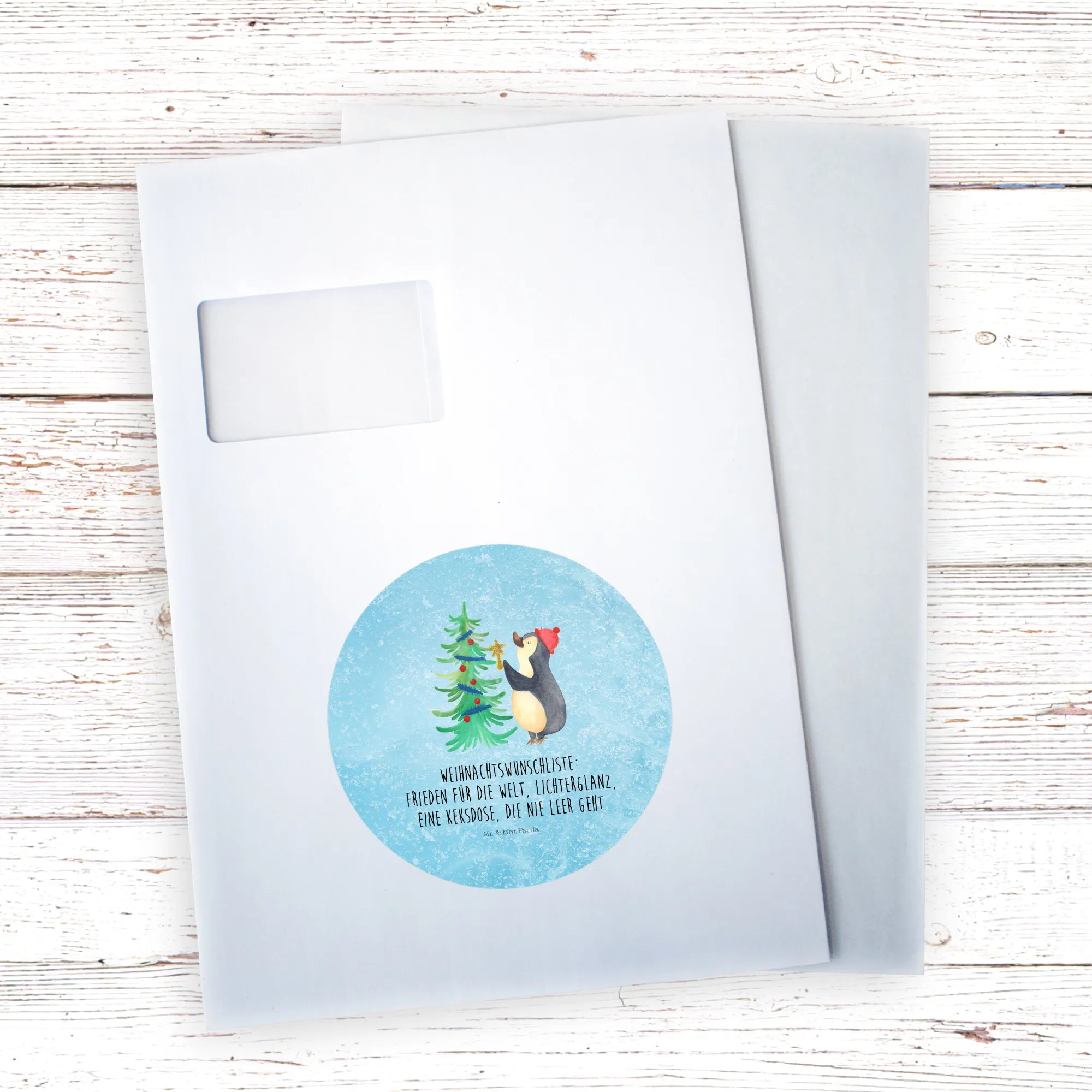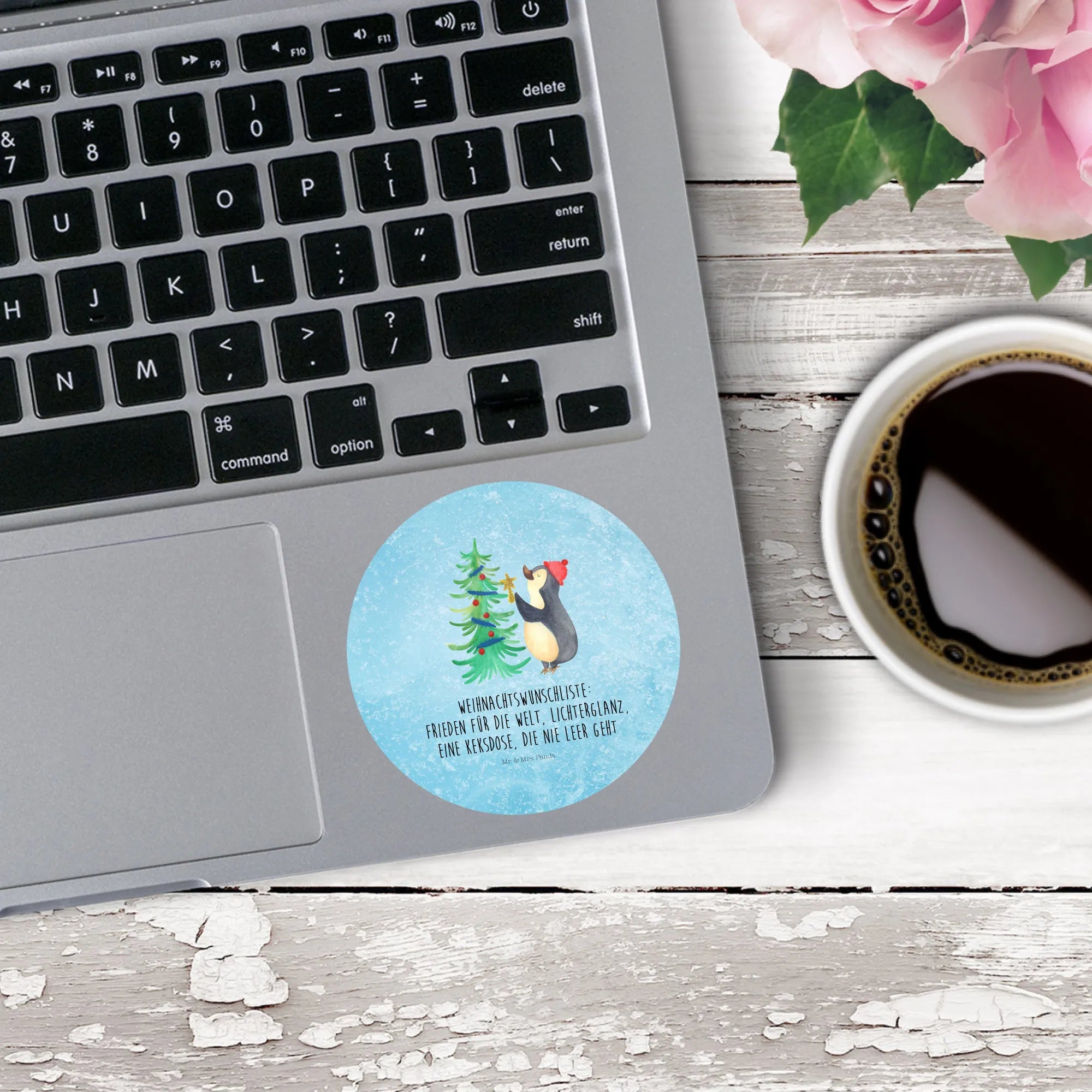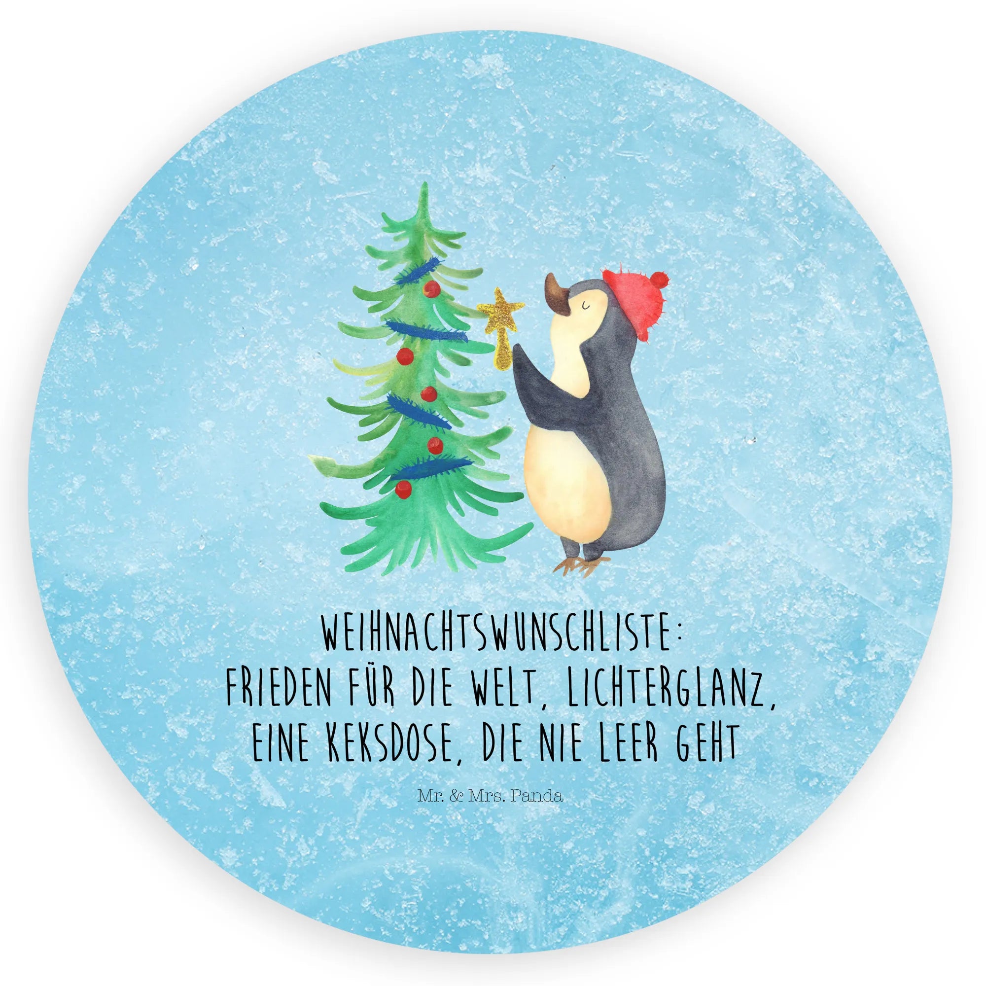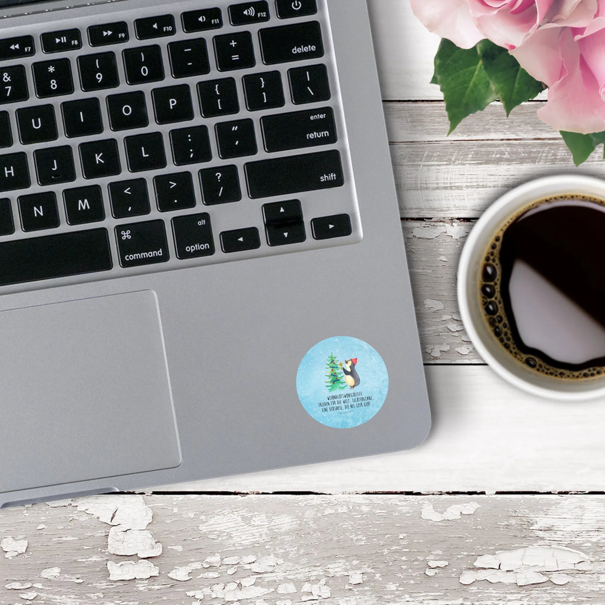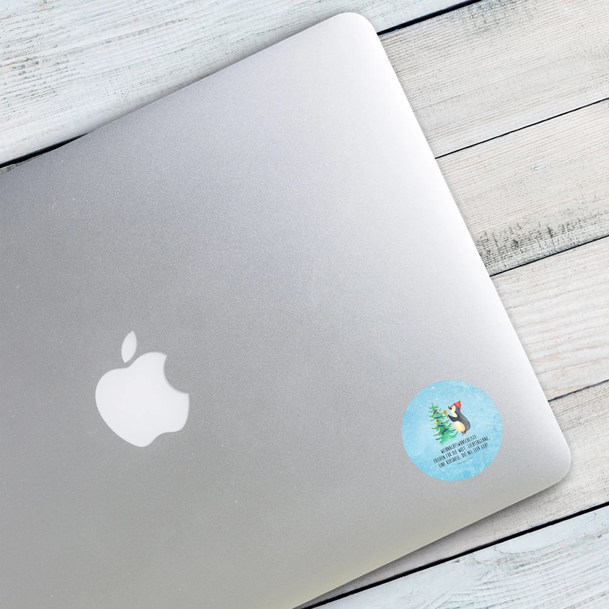 Rund Aufkleber Pinguin Weihnachtsbaum - 120mm Rund Aufkleber - mit Spruch - Eisblau