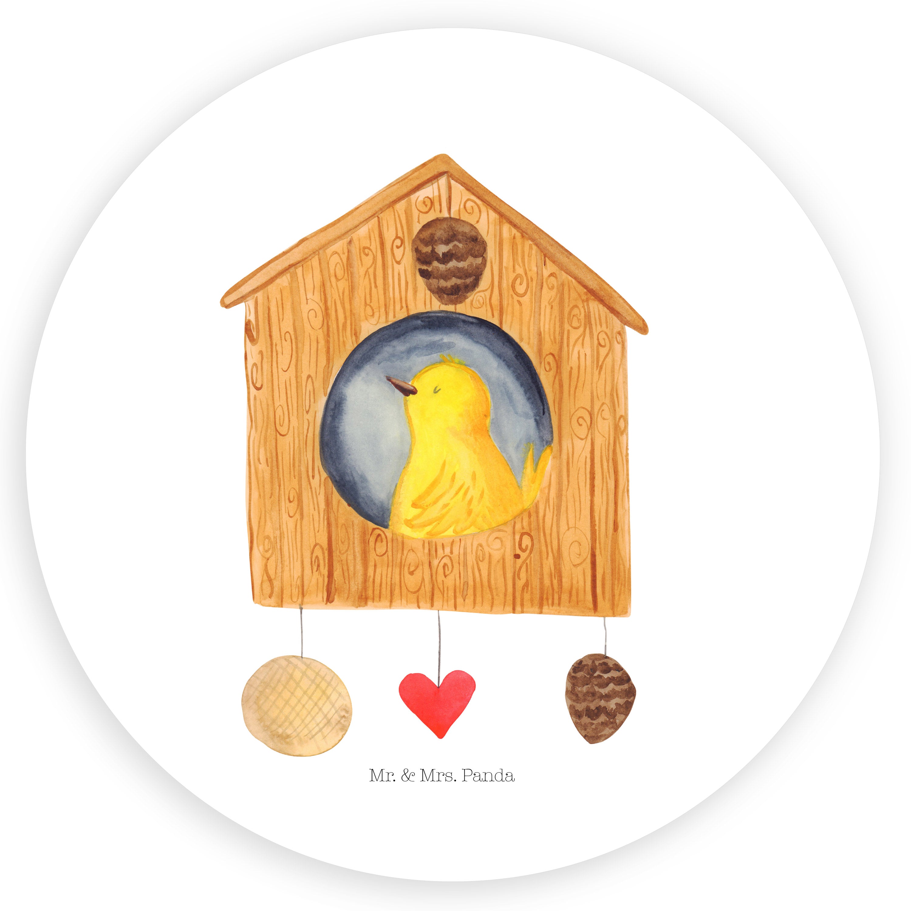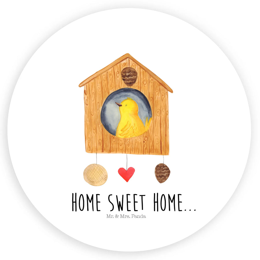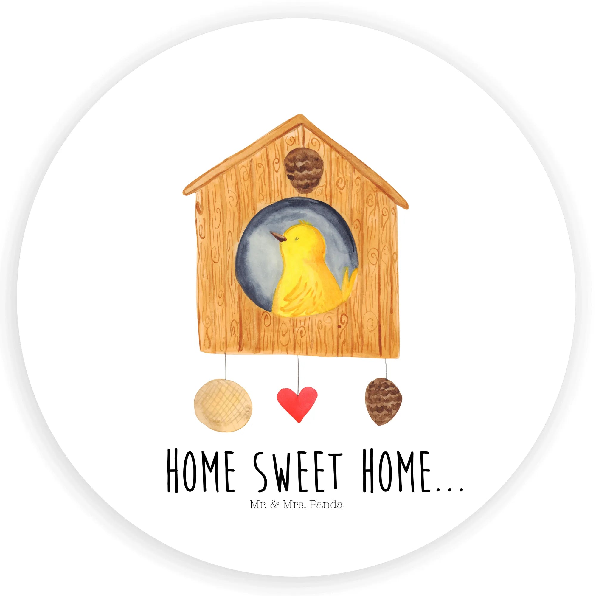 Rund Aufkleber Vogelhaus sweet Home - 80mm Rund Aufkleber - mit Spruch - Weiß