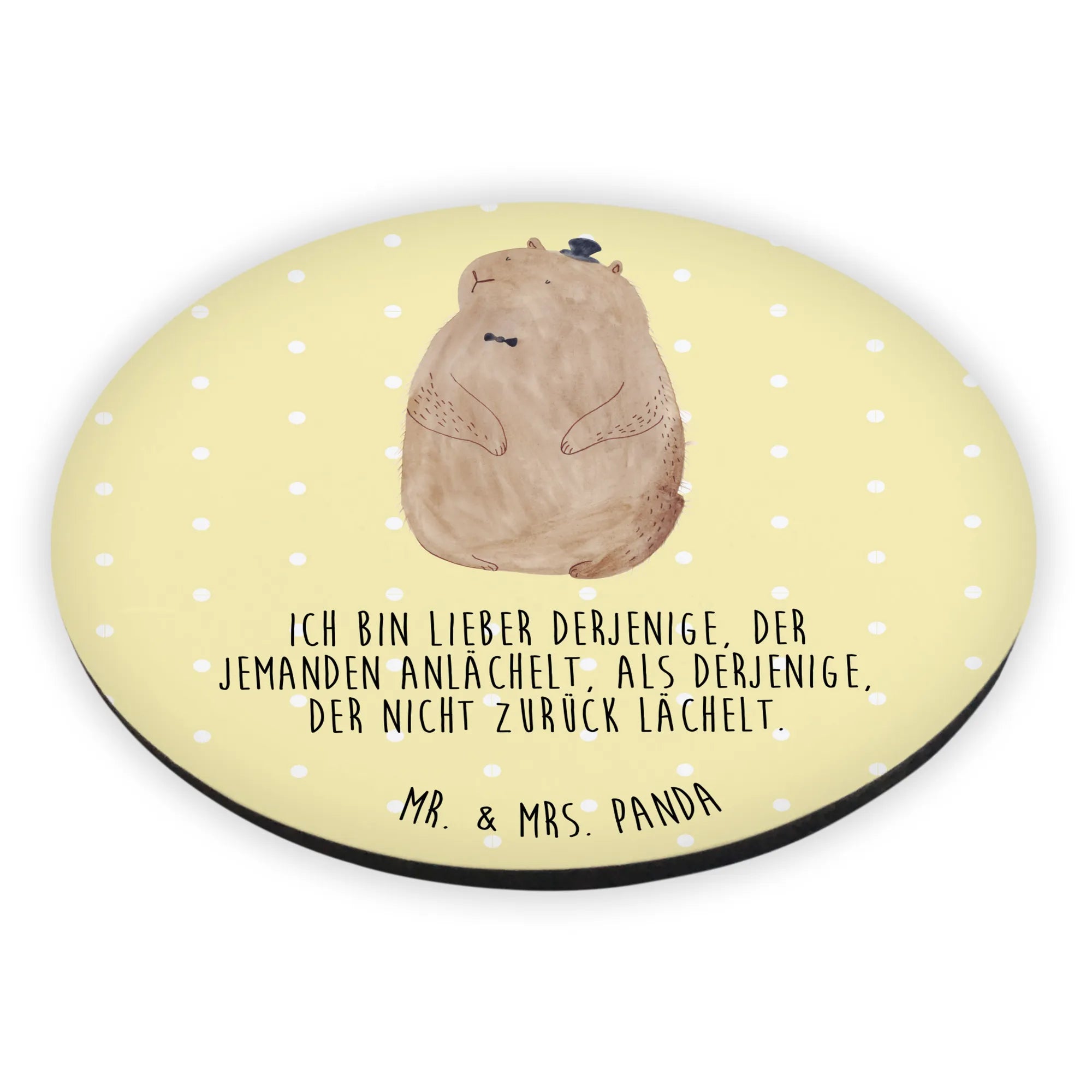 Lass dir die besonderen Momente des Lebens mit unserem runden Magneten Murmeltier aus der kleinen Welt Kollektion versüßen! Dieser einfallsreiche Kühlschrankmagnet von Mr. & Mrs. Panda trägt nicht nur das fröhliche Bild eines süßen Murmeltiers mit einem kleinen Zylinder auf dem Kopf, sondern ist auch ein praktischer Begleiter zur Dekoration deines Kühlschranks oder Whiteboards. Mit einem Durchmesser von 70 mm und einem Gewicht von 20 g ist er klein und leicht genug, um überall Platz zu finden. Er ist aus feinem MDF-Holz gefertigt und sorgt mit seiner angenehm glatten Oberfläche dafür, dass du nicht nur beim Dekorieren Freude hast.