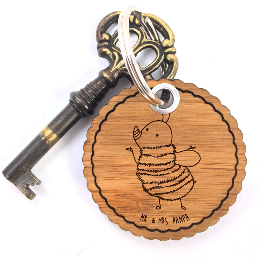 Entdecke den Rundwelle Schlüsselanhänger Hummel flauschig von Mr. & Mrs. Panda, ein wunderschöner und einzigartiger Begleiter, den du unbedingt haben möchtest! Mit einer Größe von 60 mm x 60 mm und einem Gewicht von nur 12 g ist dieser Schlüsselanhänger leicht und handlich. Hergestellt aus edlem Bambusholz und versiegelt mit Naturölen, bietet er nicht nur ein zeitloses Design, sondern auch eine besondere Haptik.