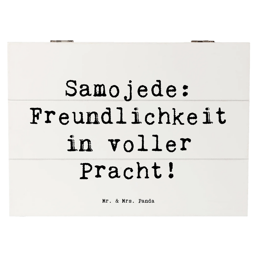 Diese wunderschöne Holzkiste von Mr. & Mrs. Panda ist der perfekte Aufbewahrungsort für all deine wertvollen Schätze! Mit dem niedlichen Motiv des Samojede, das mit dem Spruch "Samojede: Freundlichkeit in voller Pracht!" verziert ist, bringt diese Kiste nicht nur einen Hauch von Liebe in dein Zuhause, sondern ist auch eine ganz besondere Erinnerungskiste für verschiedene Anlässe.