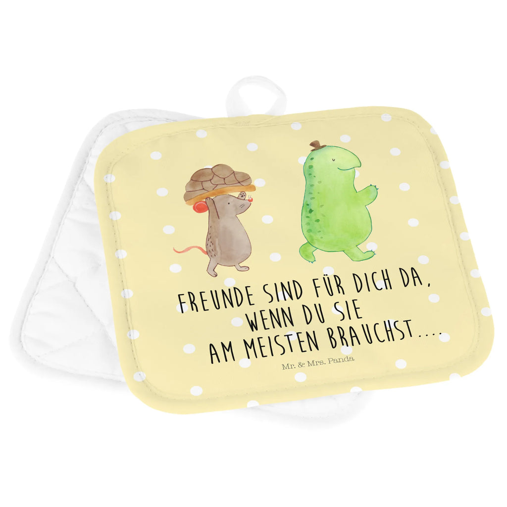 2er Set Topflappen Schildkröte Maus - mit Spruch - Gelb Pastell