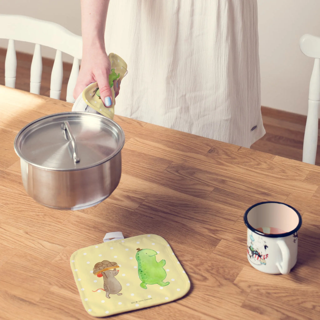 Unsere süßen Topflappen mit Schildkröte und Maus sind kleine Helden des Alltags: liebevoll handgezeichnete Motive, ein herzerwärmender Spruch und praktische Funktionalität in einem. Freunde sind für dich da, wenn du sie am meisten brauchst.... – diese Botschaft begleitet dich beim Backen, Kochen und gemeinsamen Genießen. 🐢🧡🐭