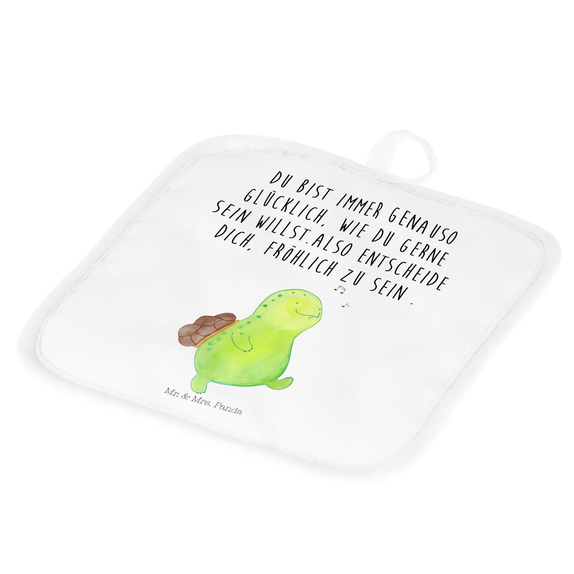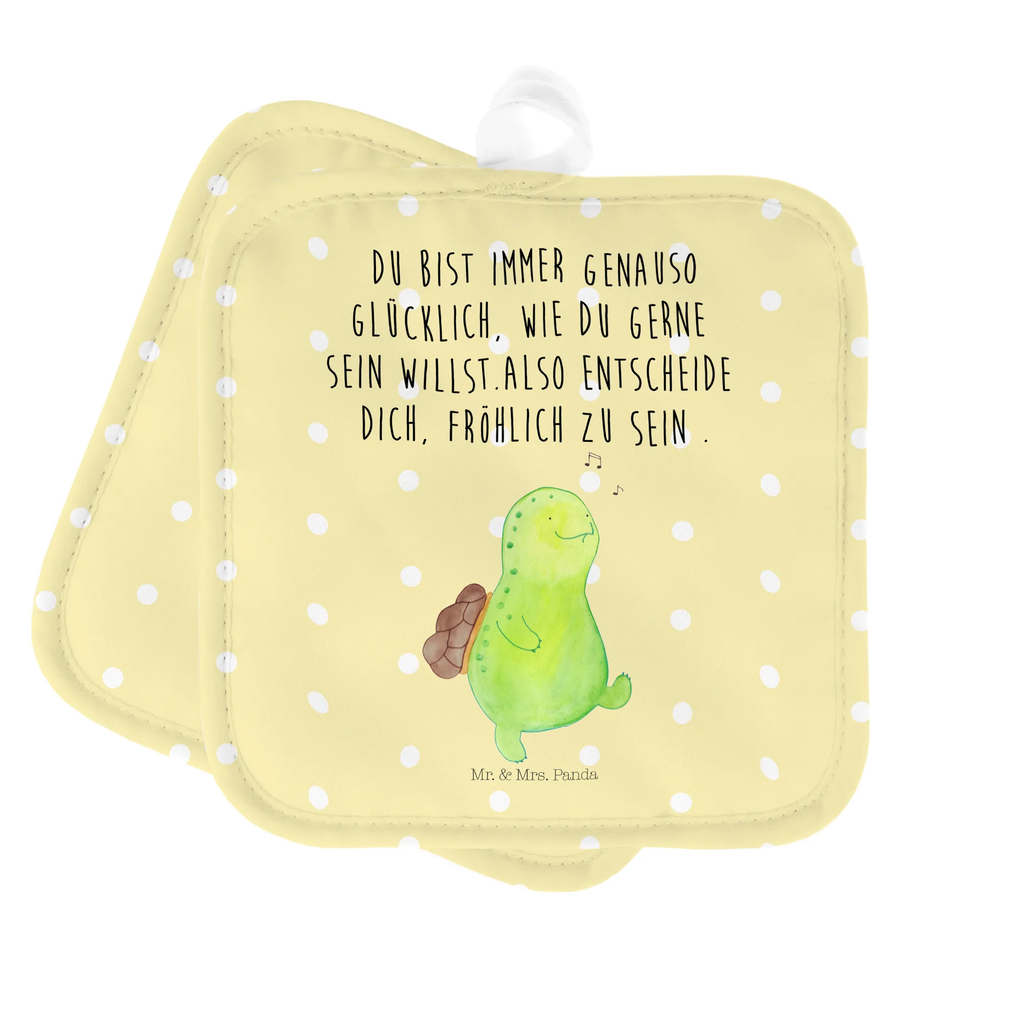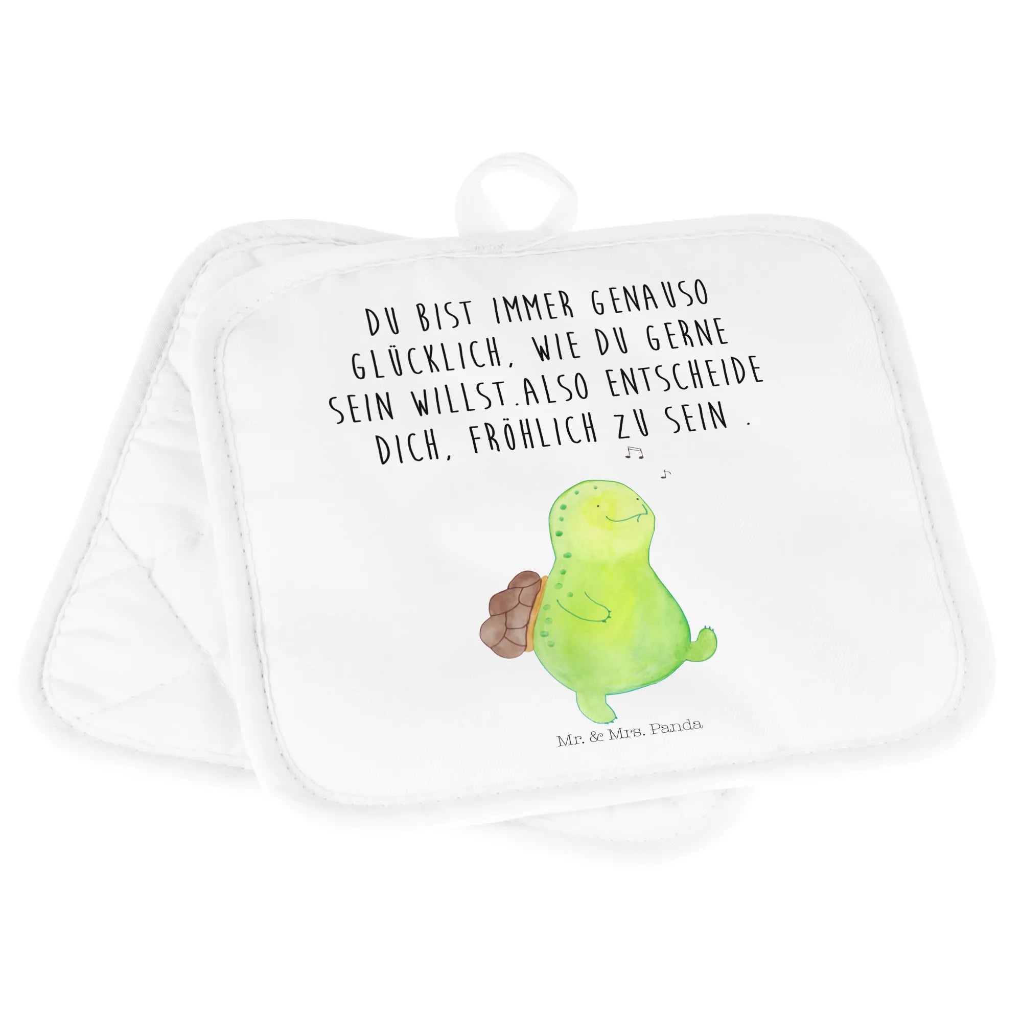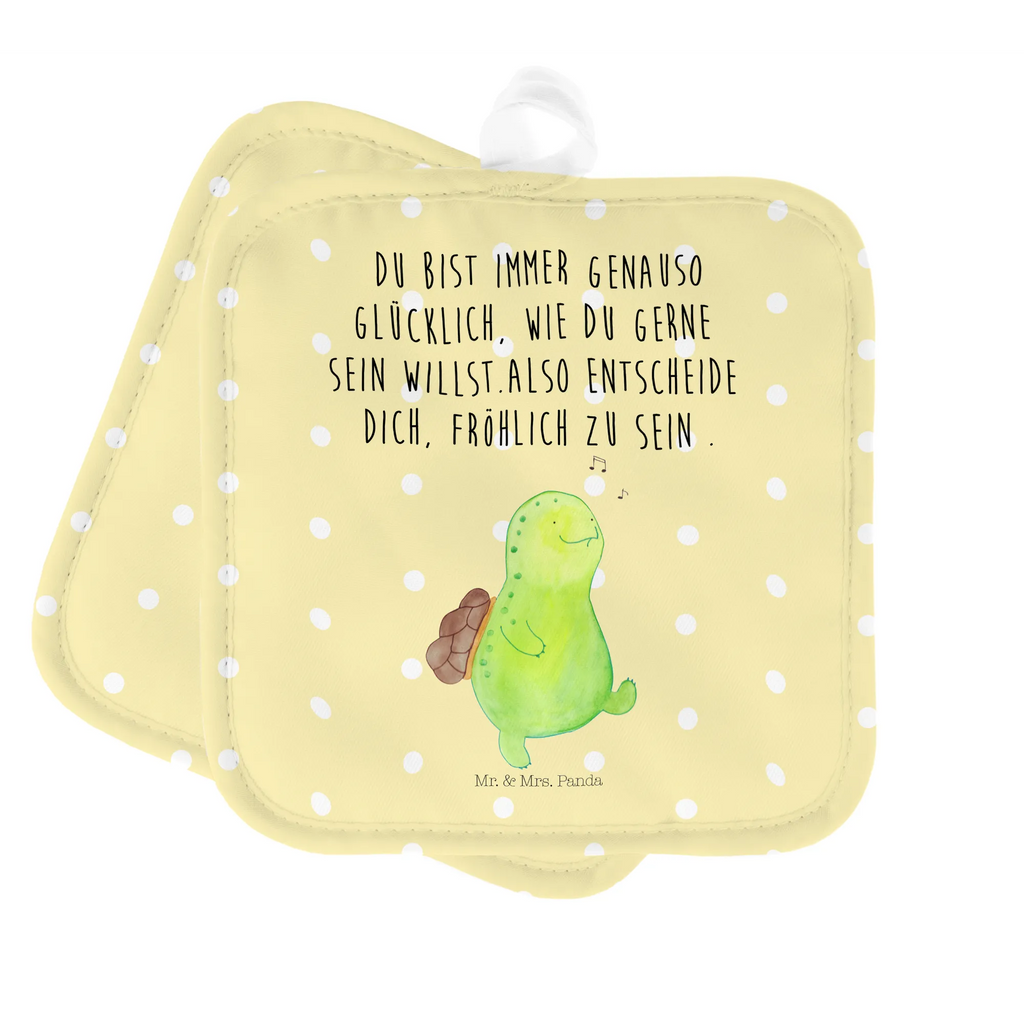 Mr. & Mrs. Panda 2er Set Topflappen „Schildkröte pfeift" – fröhlich, warm und einfach zum Verlieben! 🐢✨ Dieses Topflappenset kombiniert niedliche Illustration mit einem kraftvollen Spruch: „Du bist immer genauso glücklich, wie du gerne sein willst. Also entscheide dich, fröhlich zu sein." Ein kleines Stück Lebensfreude für Deine Küche.
