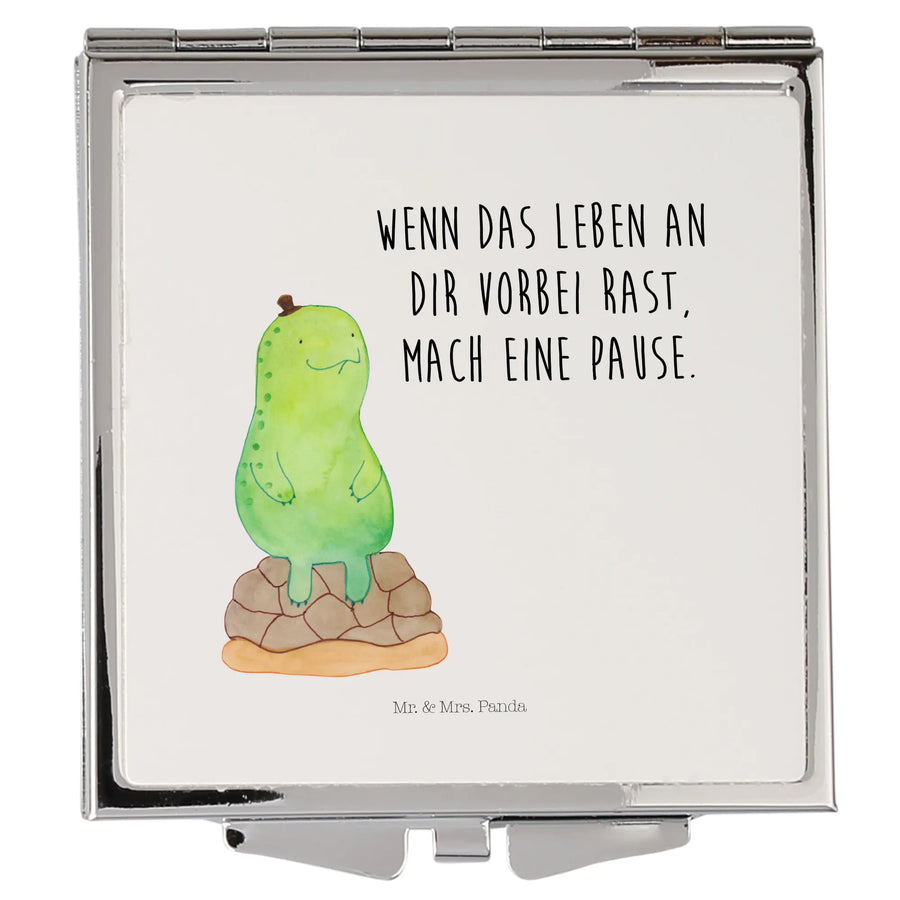 Handtaschenspiegel quadratisch Schildkröte Pause - mit Spruch - Weiß