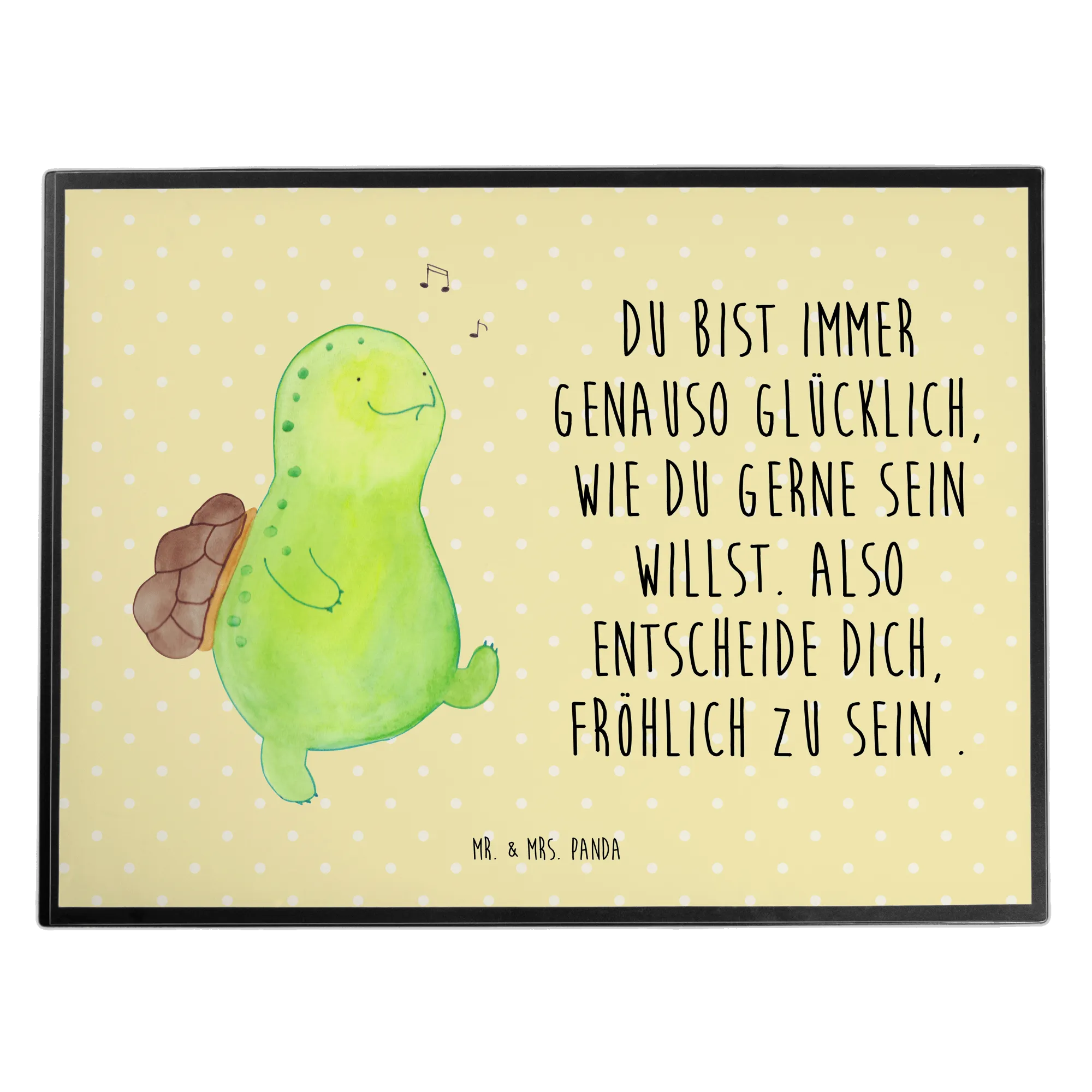 Entdecke die fröhlichste Schreibtischunterlage der Welt von Mr. & Mrs. Panda! Mit dem zauberhaften Motiv einer pfeifenden Schildkröte wird deine Schreibtischecke zum fröhlichen Ort der Motivation und Lebensfreude. Diese Schreibtischunterlage ist nicht nur praktisch, sondern auch wunderschön gestaltet und bringt ein Lächeln in jeden Arbeitstag.