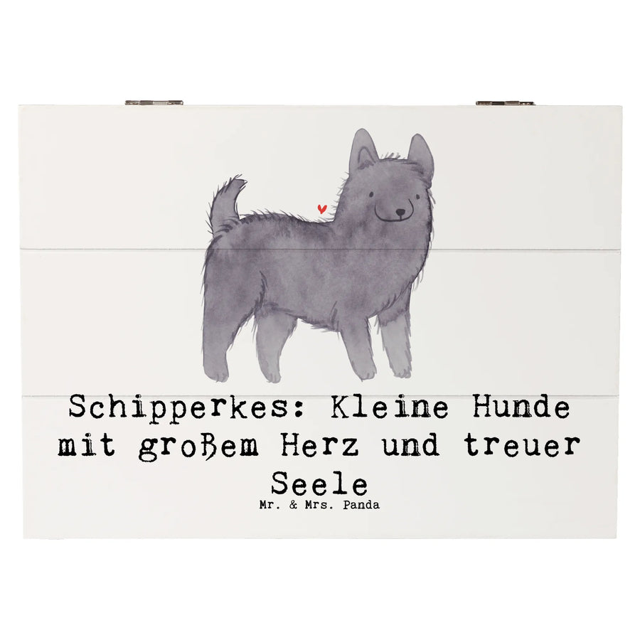 Die wunderschöne Holzkiste von Mr. & Mrs. Panda, bedruckt mit dem bezaubernden Motiv "Schipperke: Kleine Hunde mit großem Herz und treuer Seele", ist das perfekte Geschenk für Hundeliebhaber.