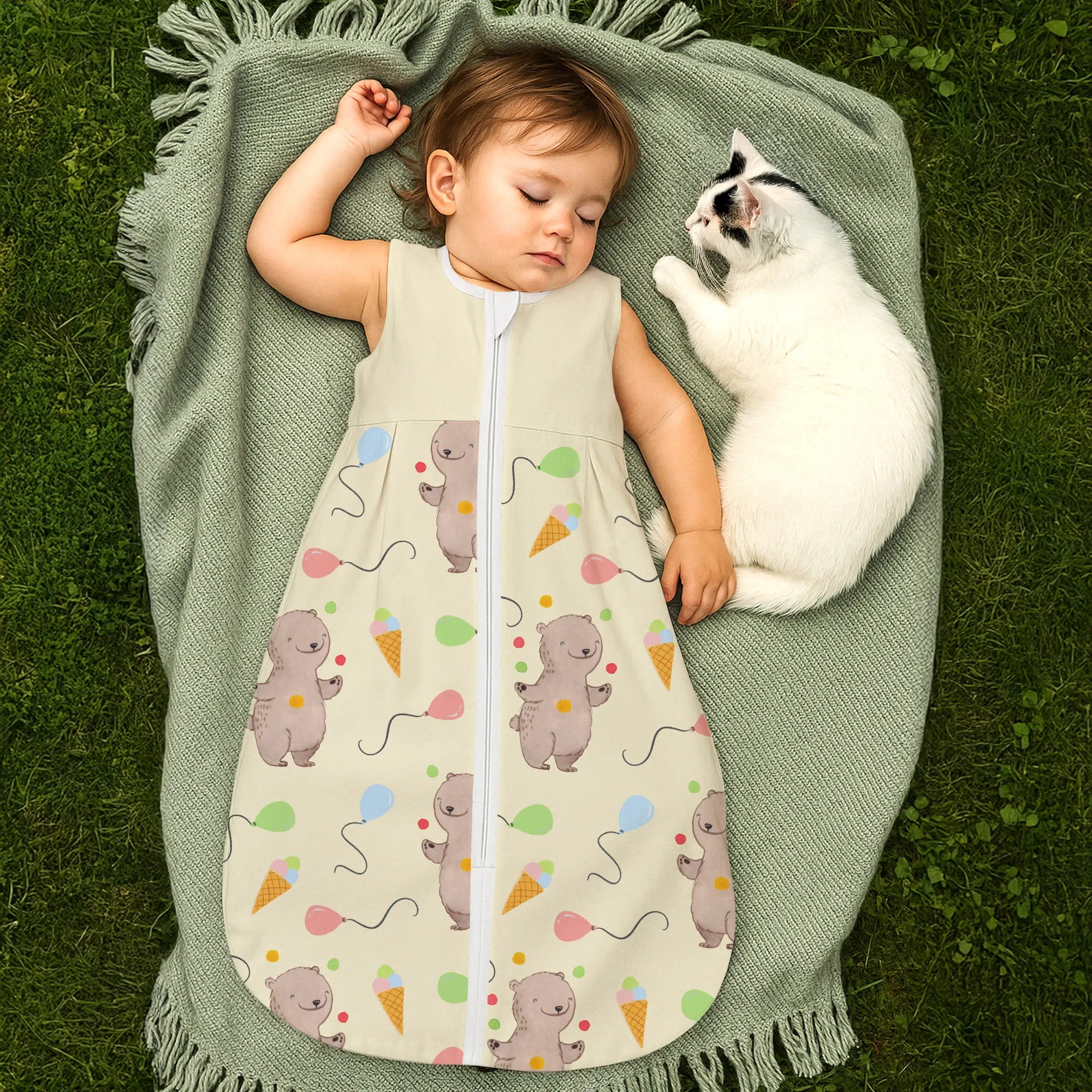 Schlafsack Baby Bär Jonglieren Muster - 6. - 9. Monat - Musselin