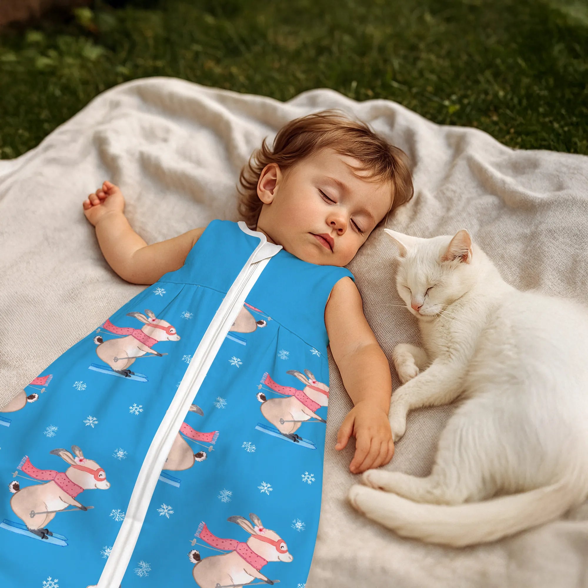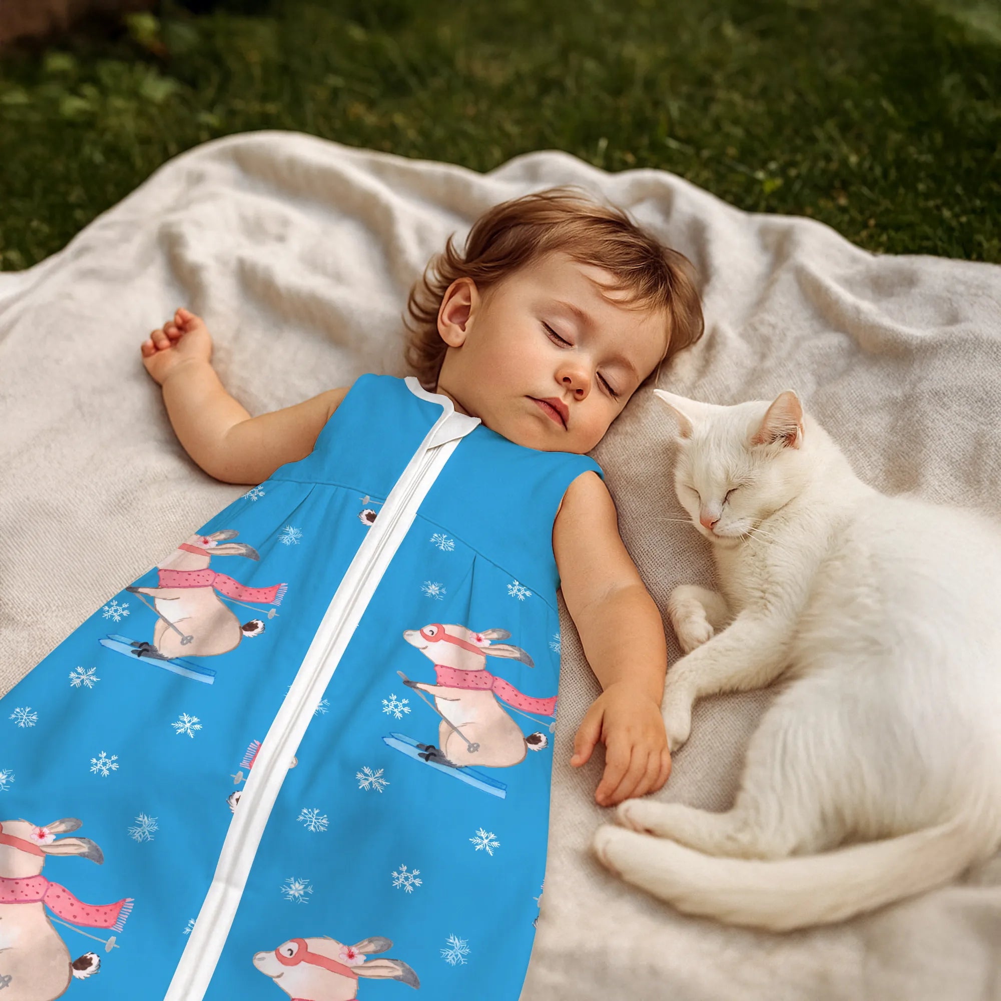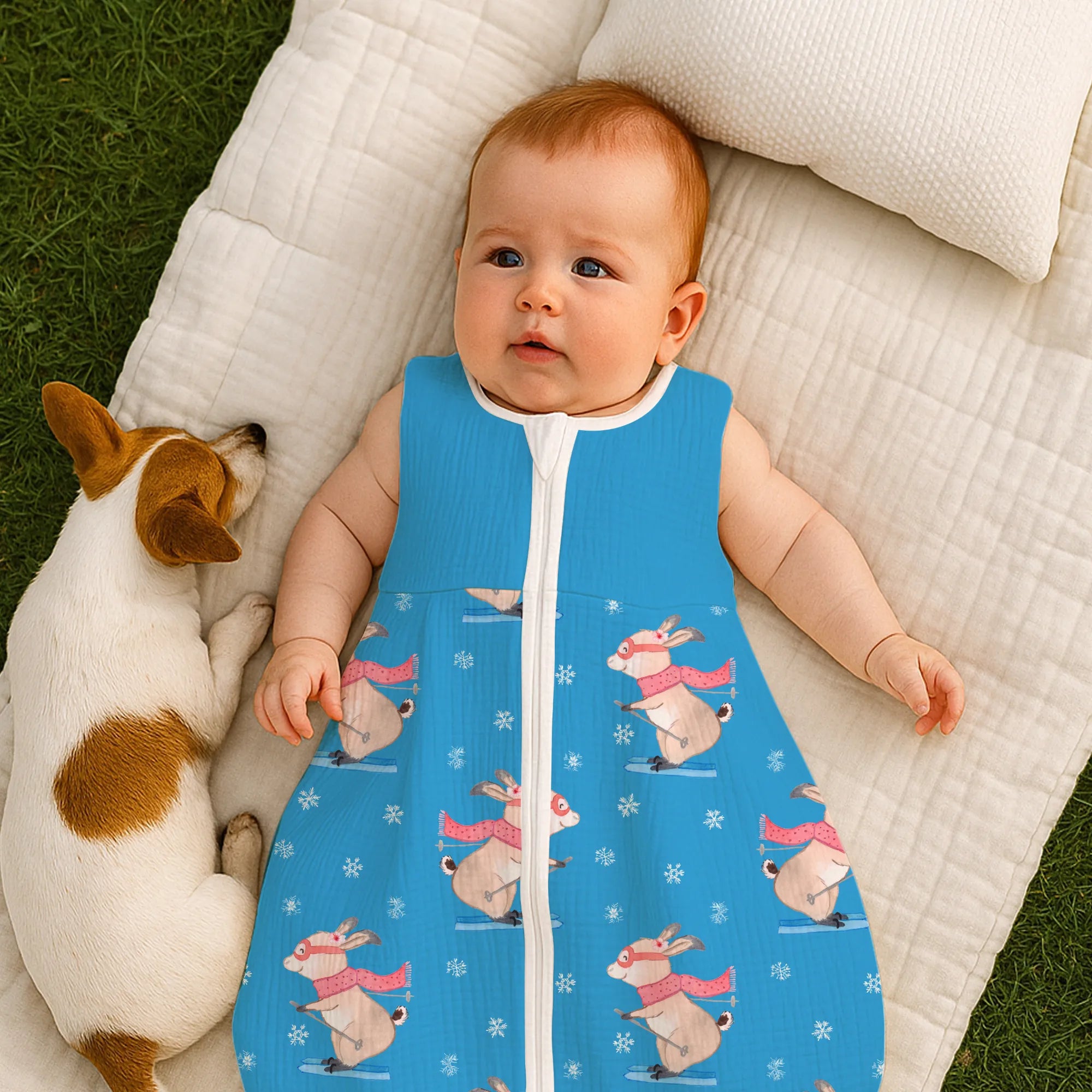 Schlafsack Baby Hase Skifahren Muster - 0. - 6. Monat - Jersey