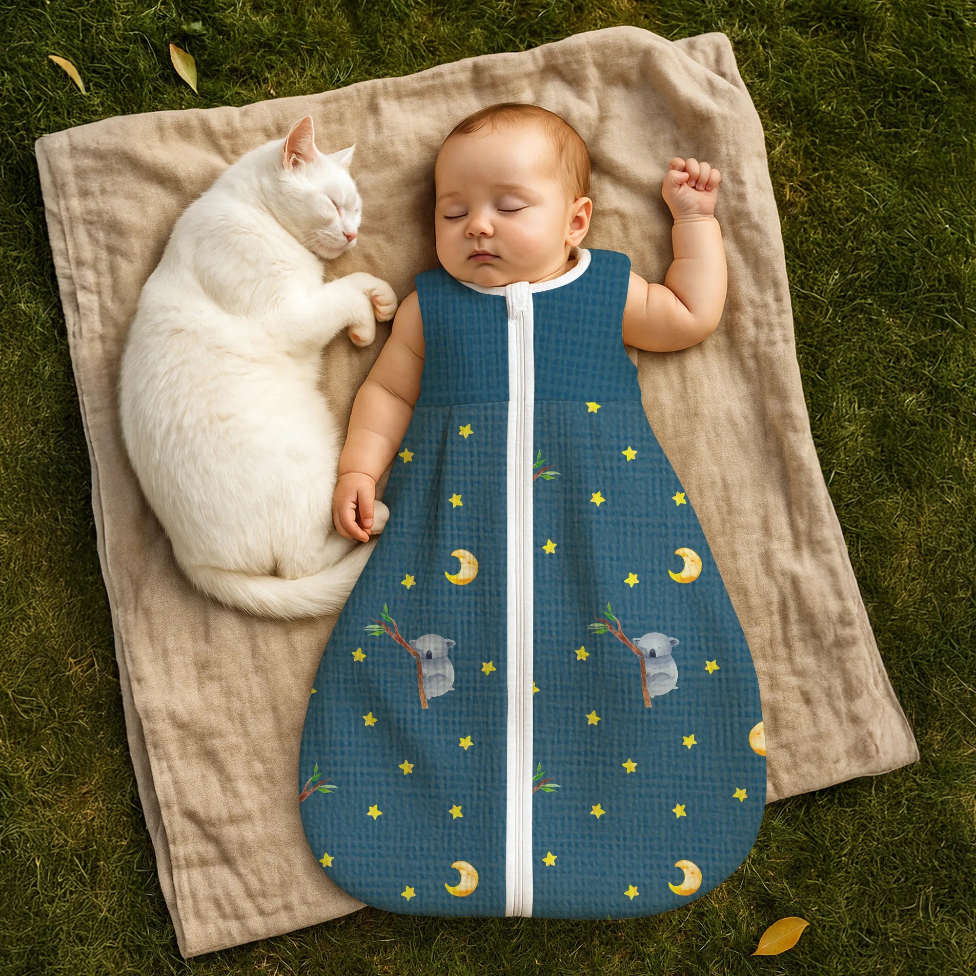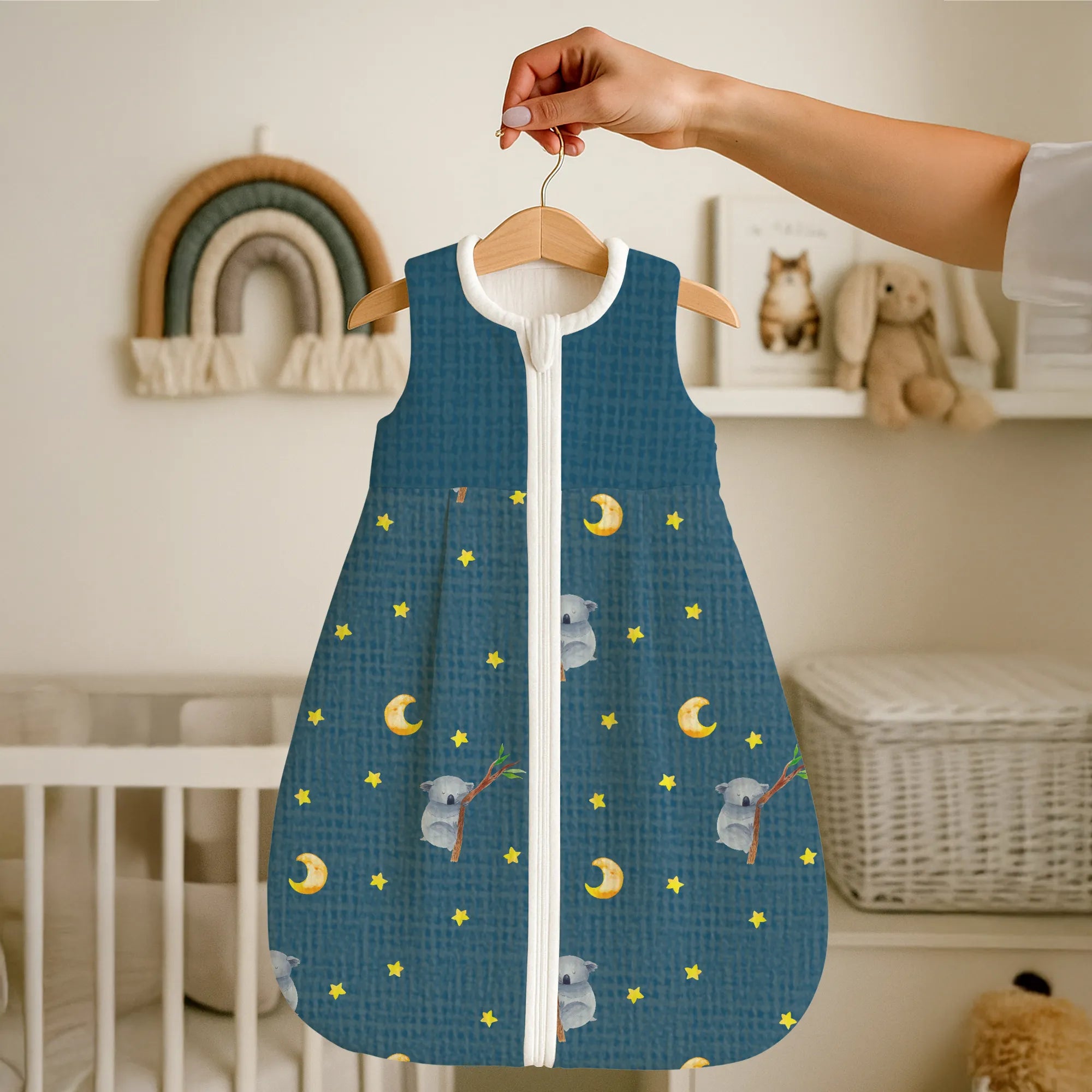Praktisch im Alltag: Der Babyschlafsack Koala ist leicht anzuziehen und verfügt über einen praktischen Reißverschluss zum schnellen Wickeln. Er verhindert, dass sich dein Schatz freistrampelt, und sorgt so für ruhige, entspannte Nächte. Ideal für Eltern, die Funktionalität und liebevolles Design schätzen.