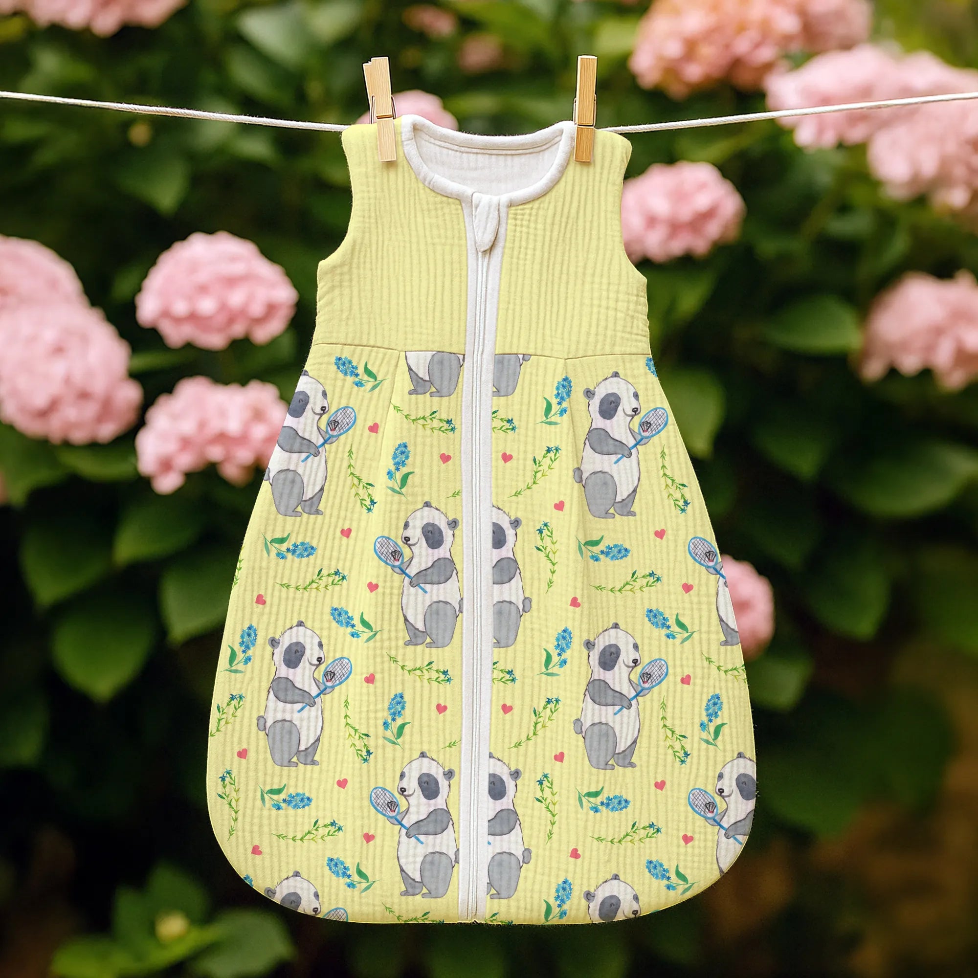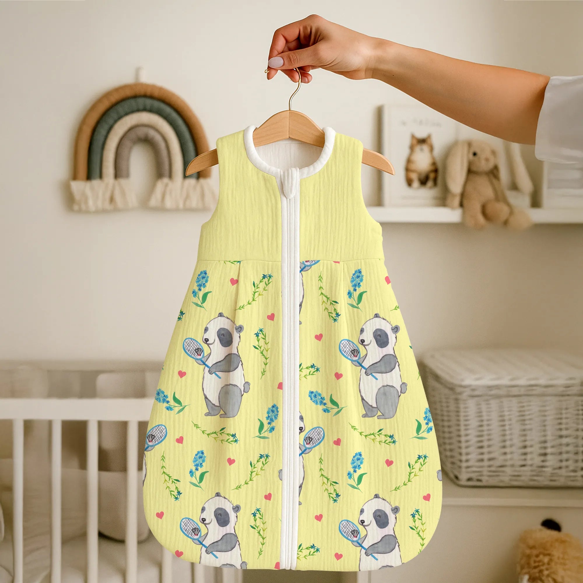 🐼 WEICHER SCHLAFSACK: Handgefertigt, atmungsaktiv, mit Reißverschluss und niedlichem Print.