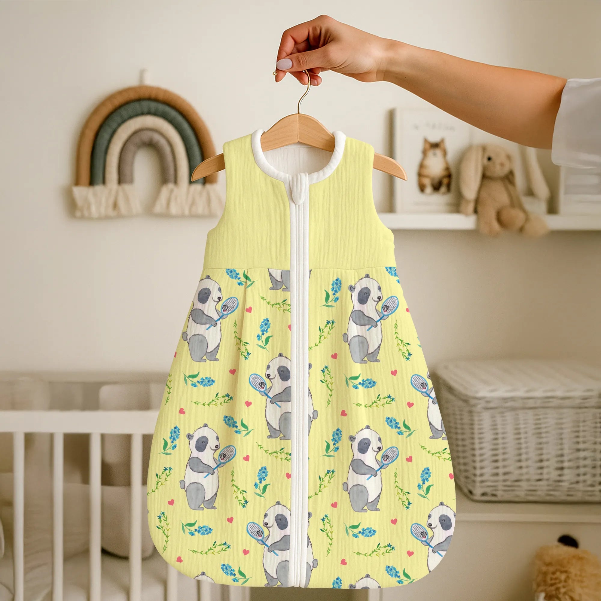 🐼 BABY-SCHLAFSACK: Weich, atmungsaktiv und mit niedlichen Motiven.
