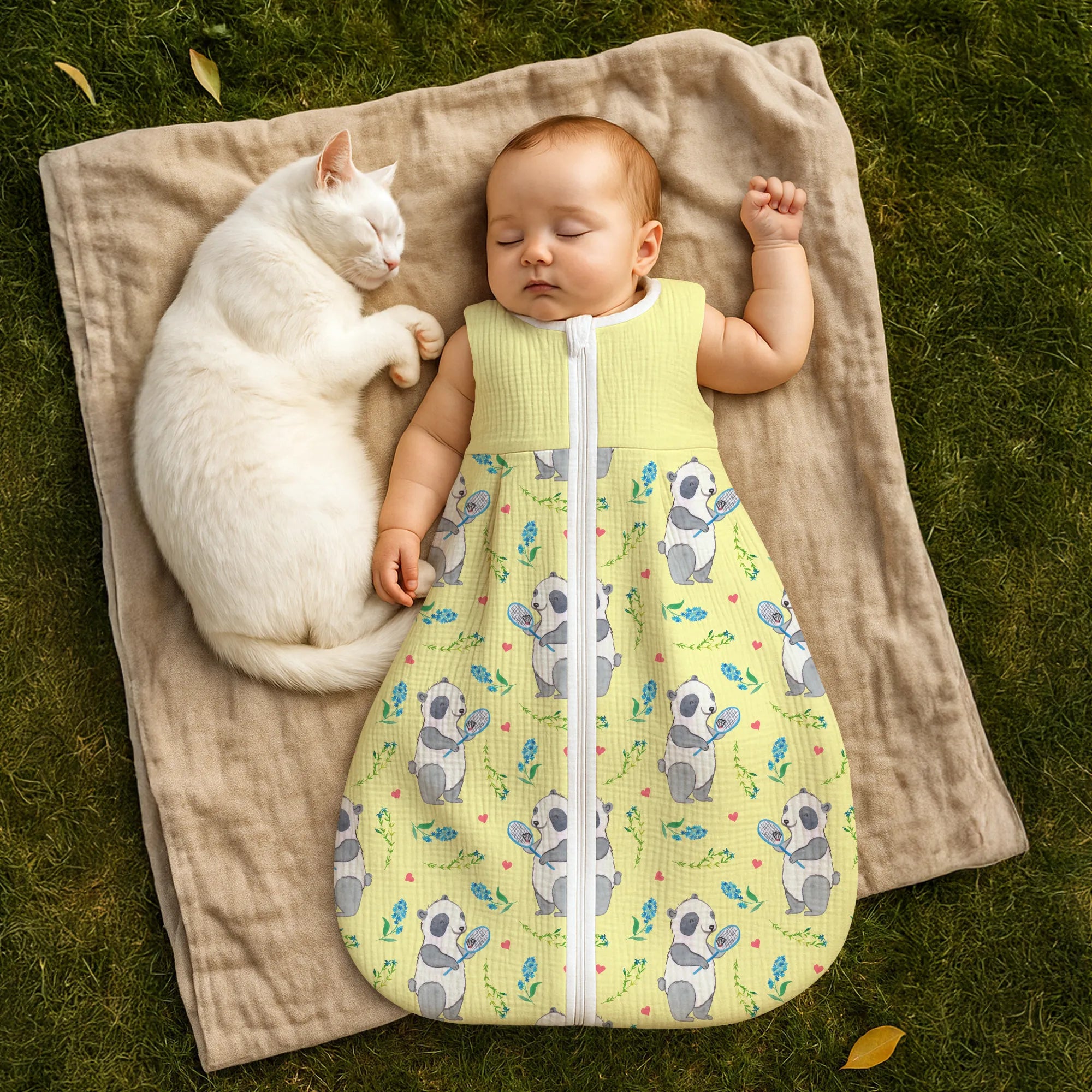 🐼 EINFACHER SCHLAFSACK: Reißverschluss für schnelles Wickeln, farbbeständig.