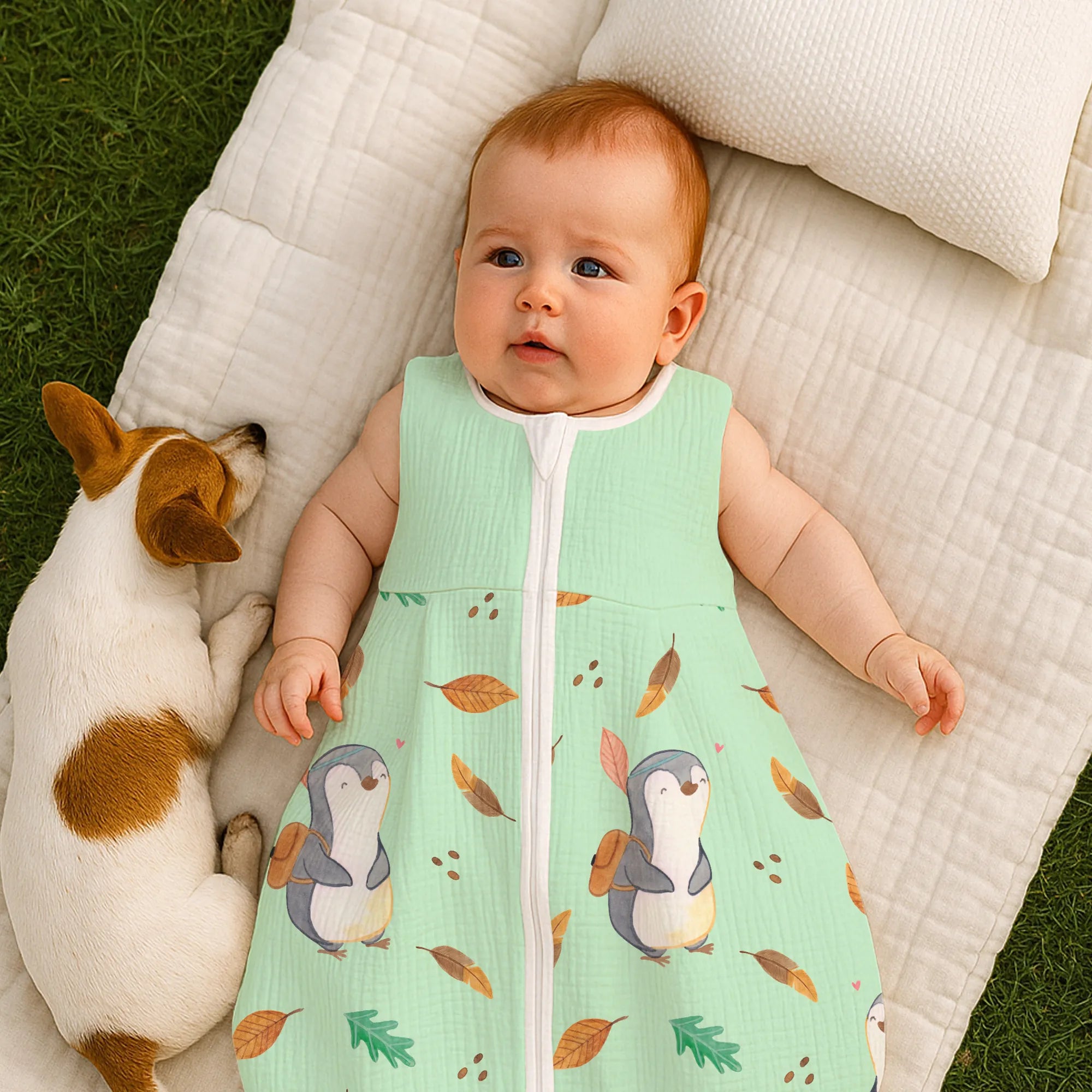 Schlafsack Baby Pinguin Ausflug Muster - 0. - 6. Monat - Musselin
