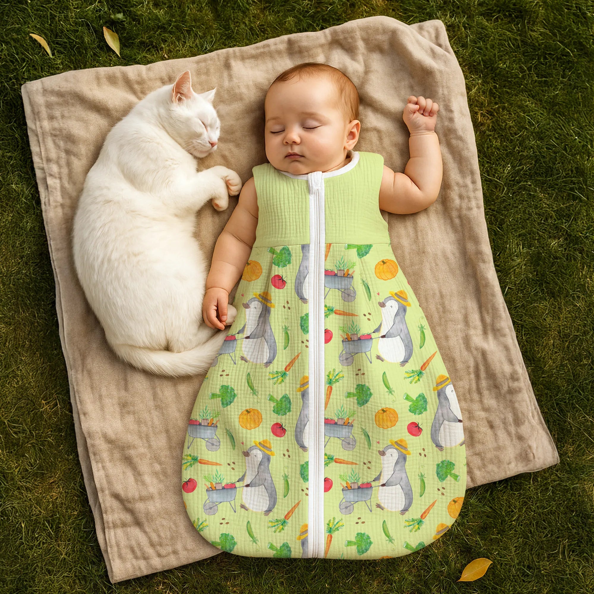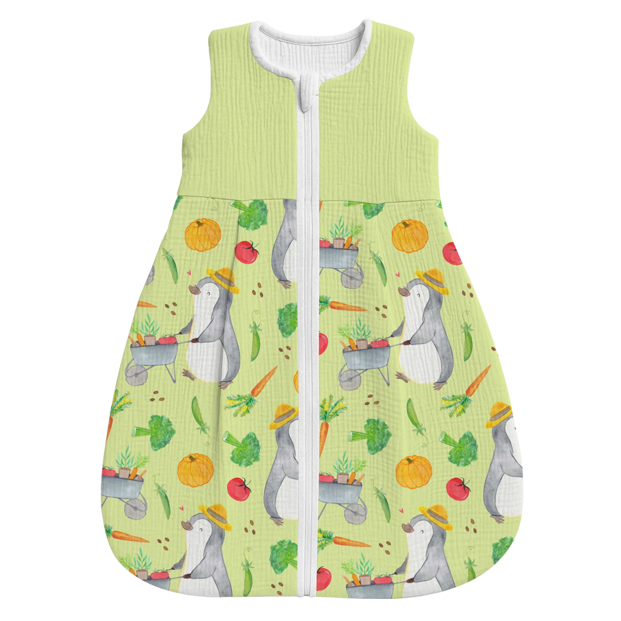 Schlafsack Baby Pinguin Gartenarbeit Muster - 0. - 6. Monat - Musselin