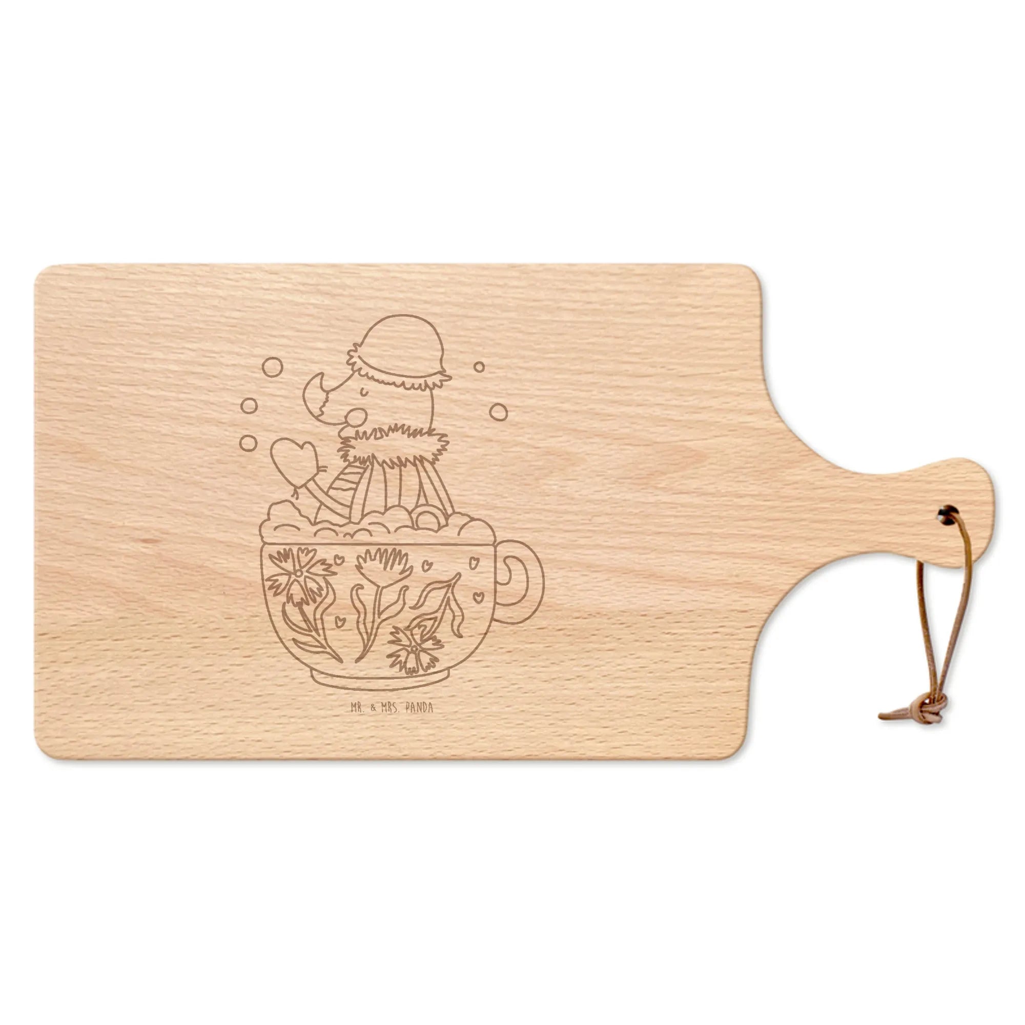 Das Servierbrett von Mr. & Mrs. Panda ist dein neuer Liebling für gemütliche Brotzeiten und besondere Anlässe. Unser Brotzeitbrett aus hochwertigem, geöltem Buchenholz ist mit süßen Panda-Motiven und frechen Sprüchen lasergraviert – ein echter Hingucker auf jedem Tisch. Mit den Maßen 420 mm x 220 mm x 15 mm und einem Gewicht von 840 g bietet das Brett ausreichend Fläche zum Anrichten von Aufschnitt, Käse und Leckereien. Der stabile Holzgriff plus zusätzlichem Ledergriff sorgt dafür, dass du das Brett einfach tragen und stilvoll servieren kannst. Ob als Käsebrett beim Weinabend oder als Servierbrett für Frühstück und Brunch: das Brett ist vielseitig einsetzbar und sehr robust. Wichtig: Das Holzbrett ist nicht personalisierbar und nicht spülmaschinengeeignet. Wir empfehlen eine sanfte Handwäsche und keinen längeren Wasserkontakt, um die schöne Lasergravur und das geölte Holz zu schonen. Dieses Servierbrett ist auch ein tolles Geschenk für Freunde, die gerne Gastgeber sind – praktisch, schön und mit viel Herz gemacht von Mr. & Mrs. Panda.