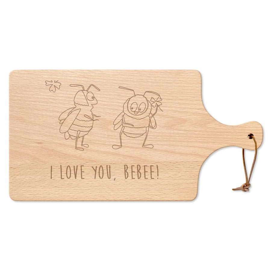 Schneidebrett Bienen Paar - mit Spruch