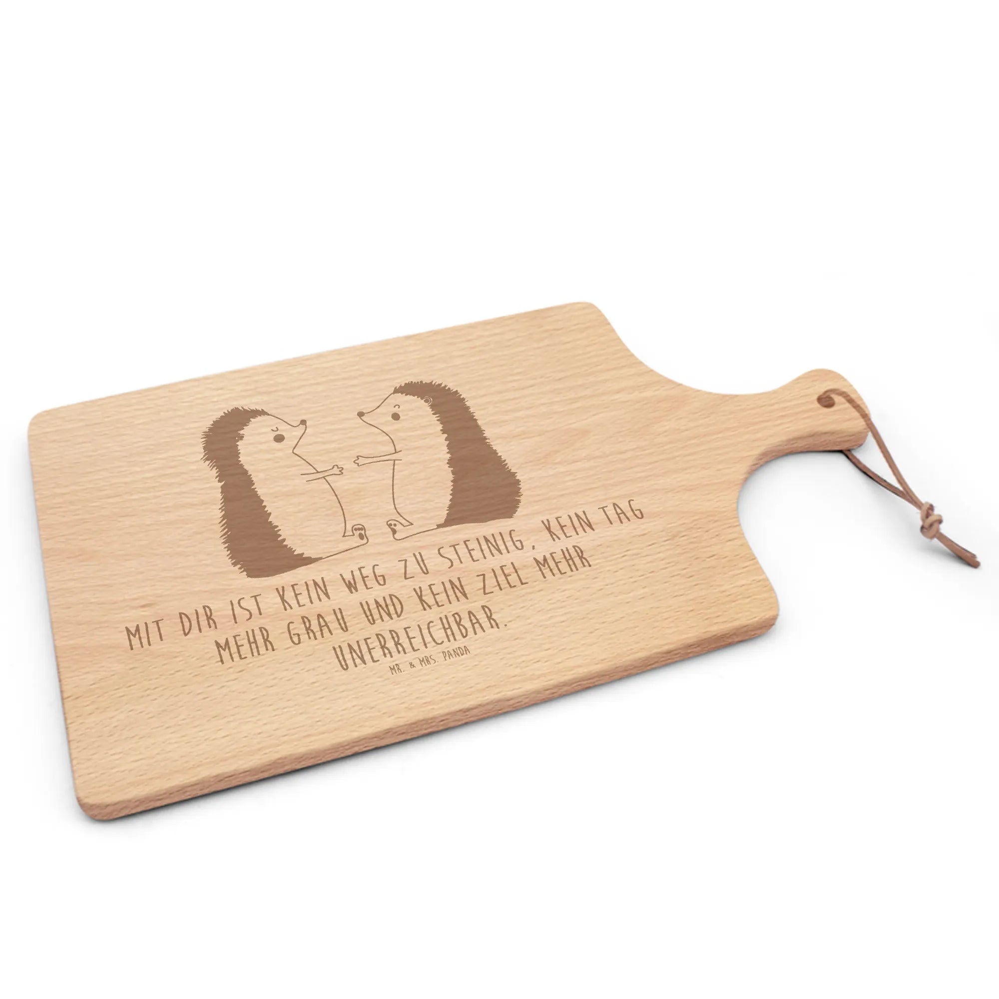 Mach jede Brotzeit besonders – sichere dir jetzt das stilvolle Brett Buche mit Griff und liebevoller Gravur von Mr. & Mrs. Panda!