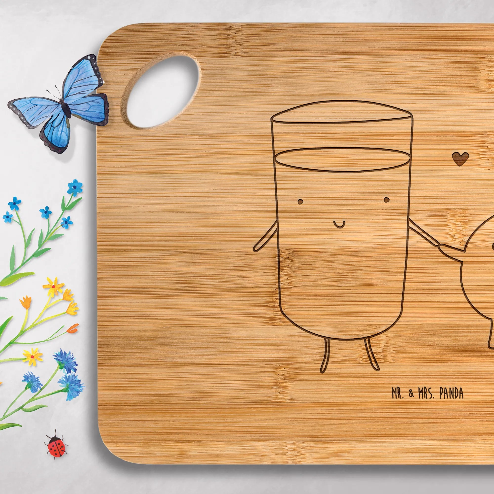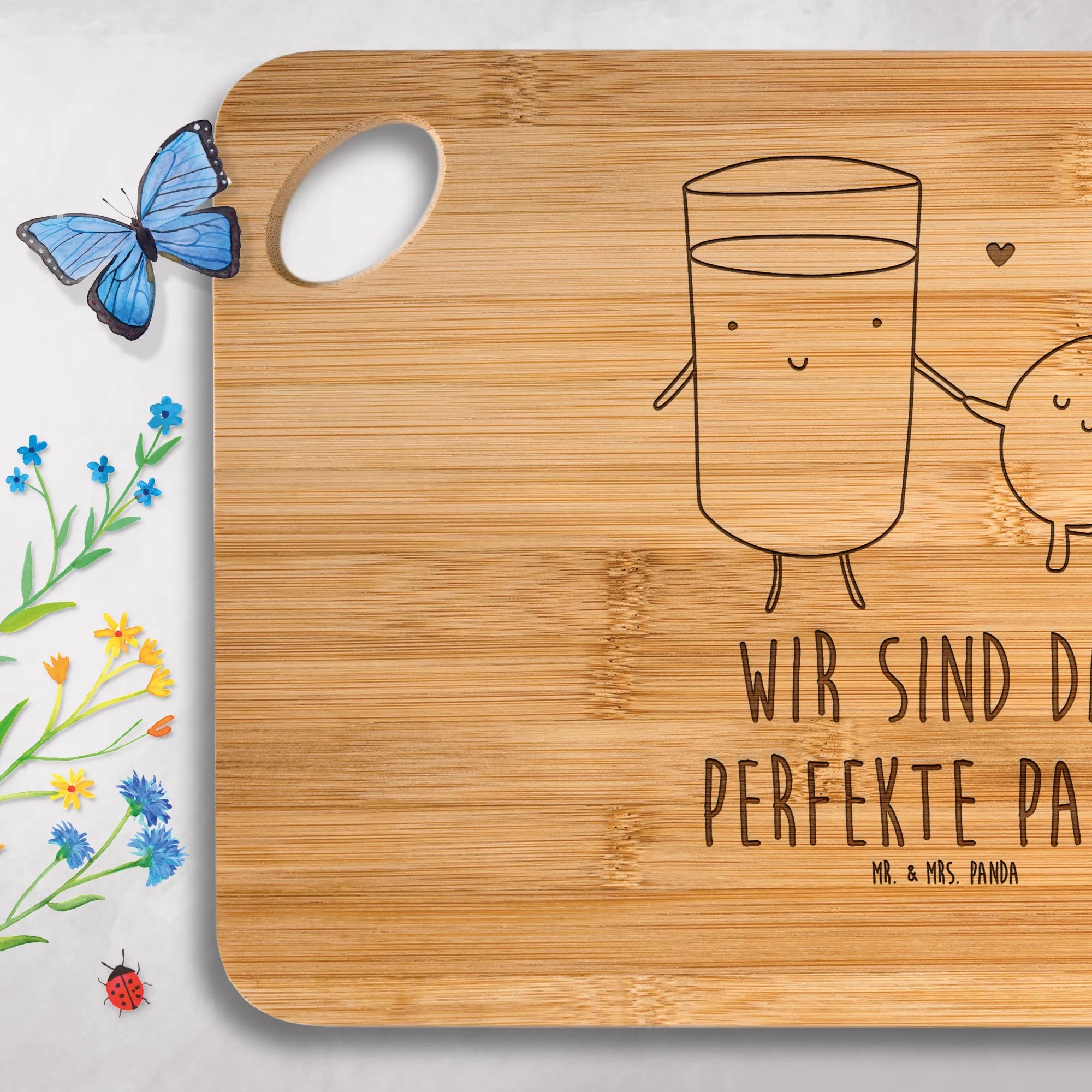Gönn dir das bezaubernde Holzbrett von Mr. & Mrs. Panda – praktisch, robust und mit liebevoller Gravur!