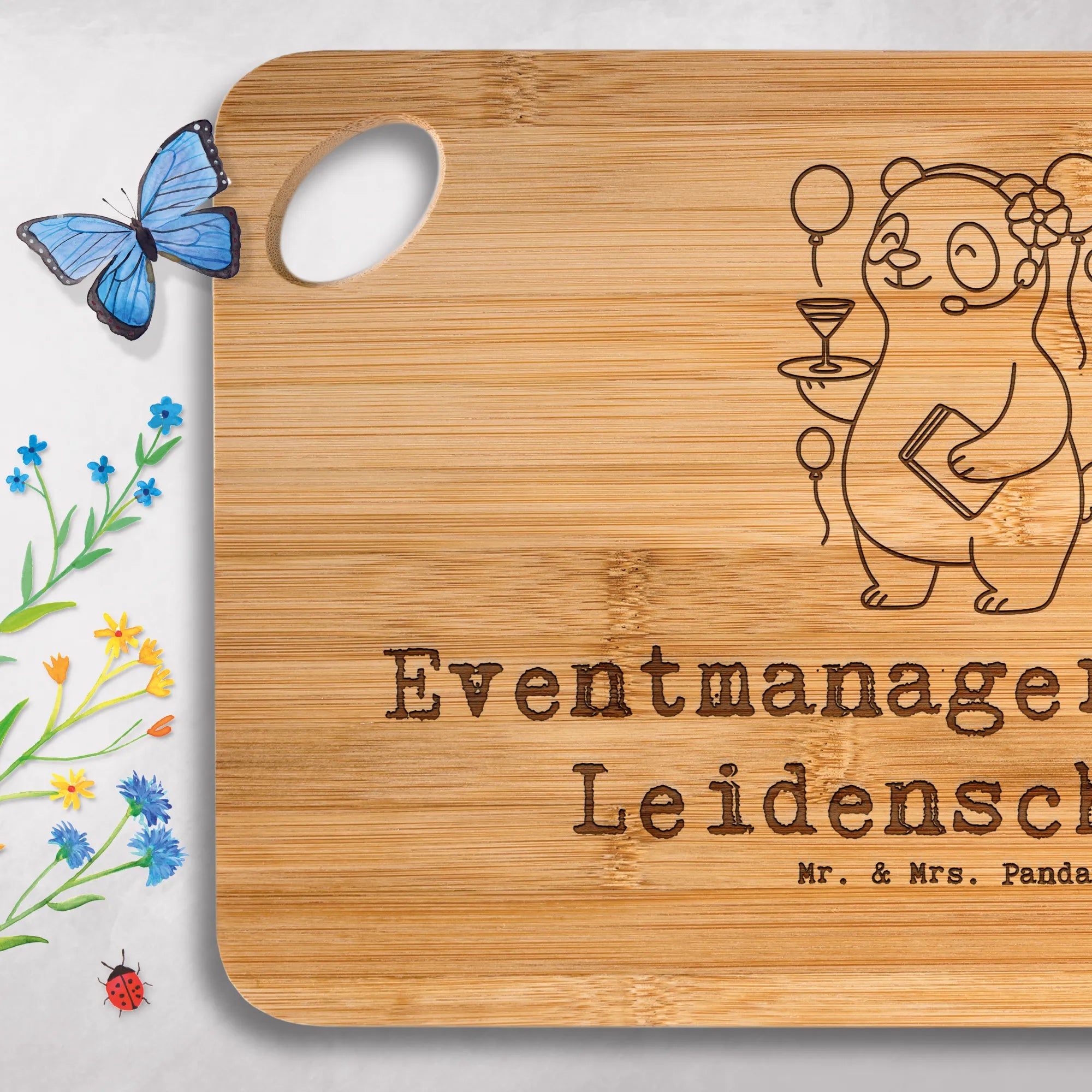 Gönn dir das bezaubernde Holzbrett von Mr. & Mrs. Panda – praktisch, robust und mit liebevoller Gravur!