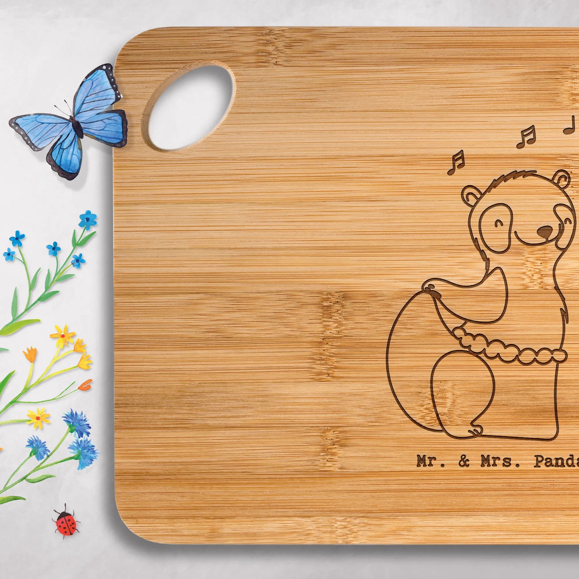 Gönn dir das bezaubernde Holzbrett von Mr. & Mrs. Panda – praktisch, robust und mit liebevoller Gravur!