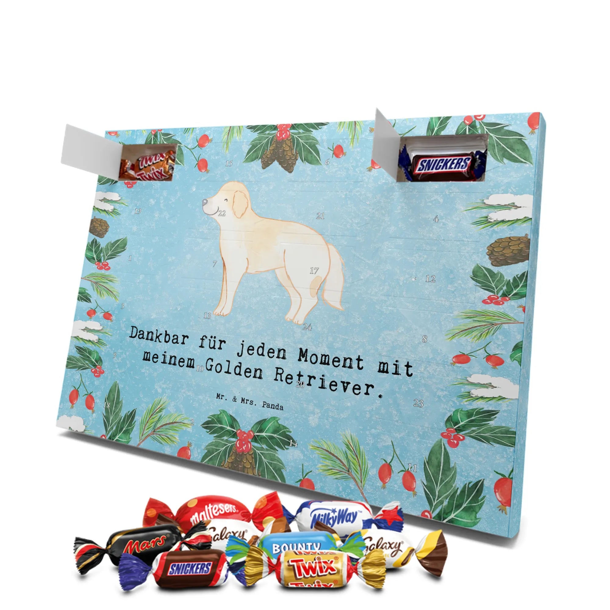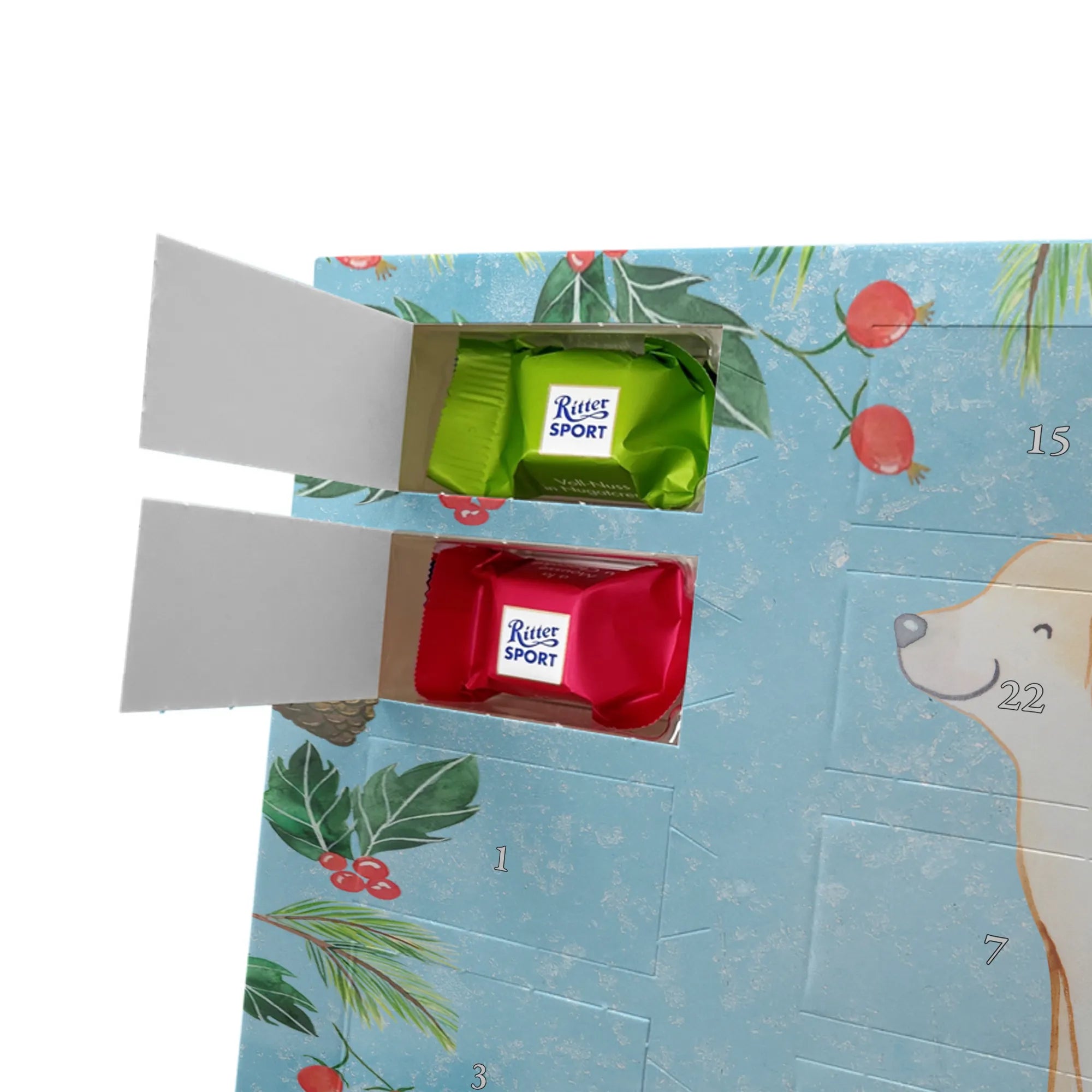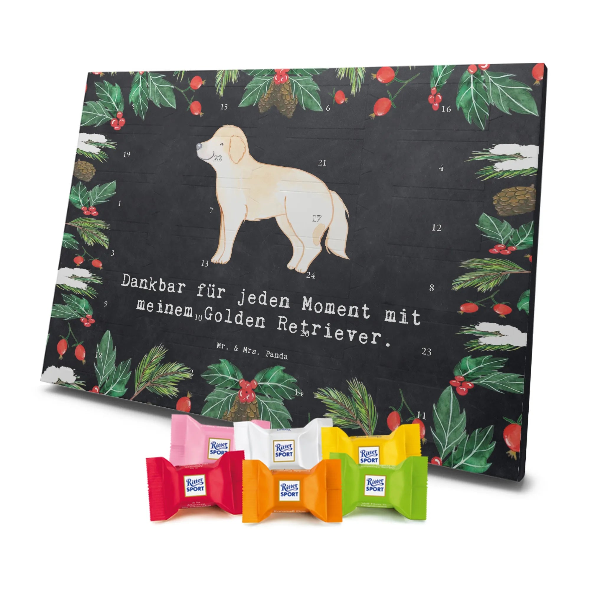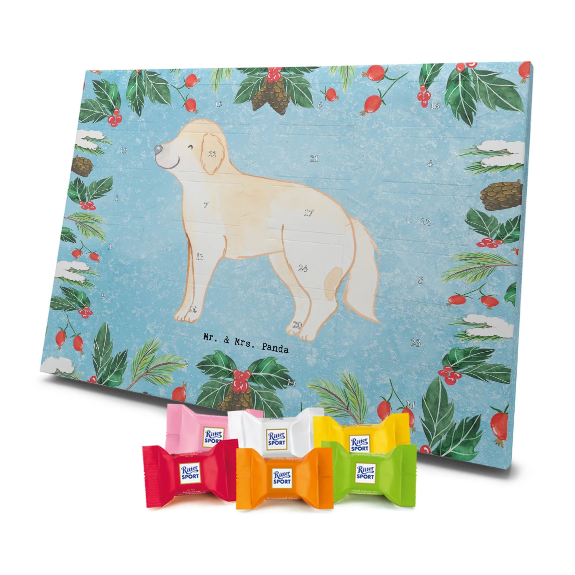 Adventskalender Golden Retriever Moment - Ritter Sport - mit Spruch - Eisblau