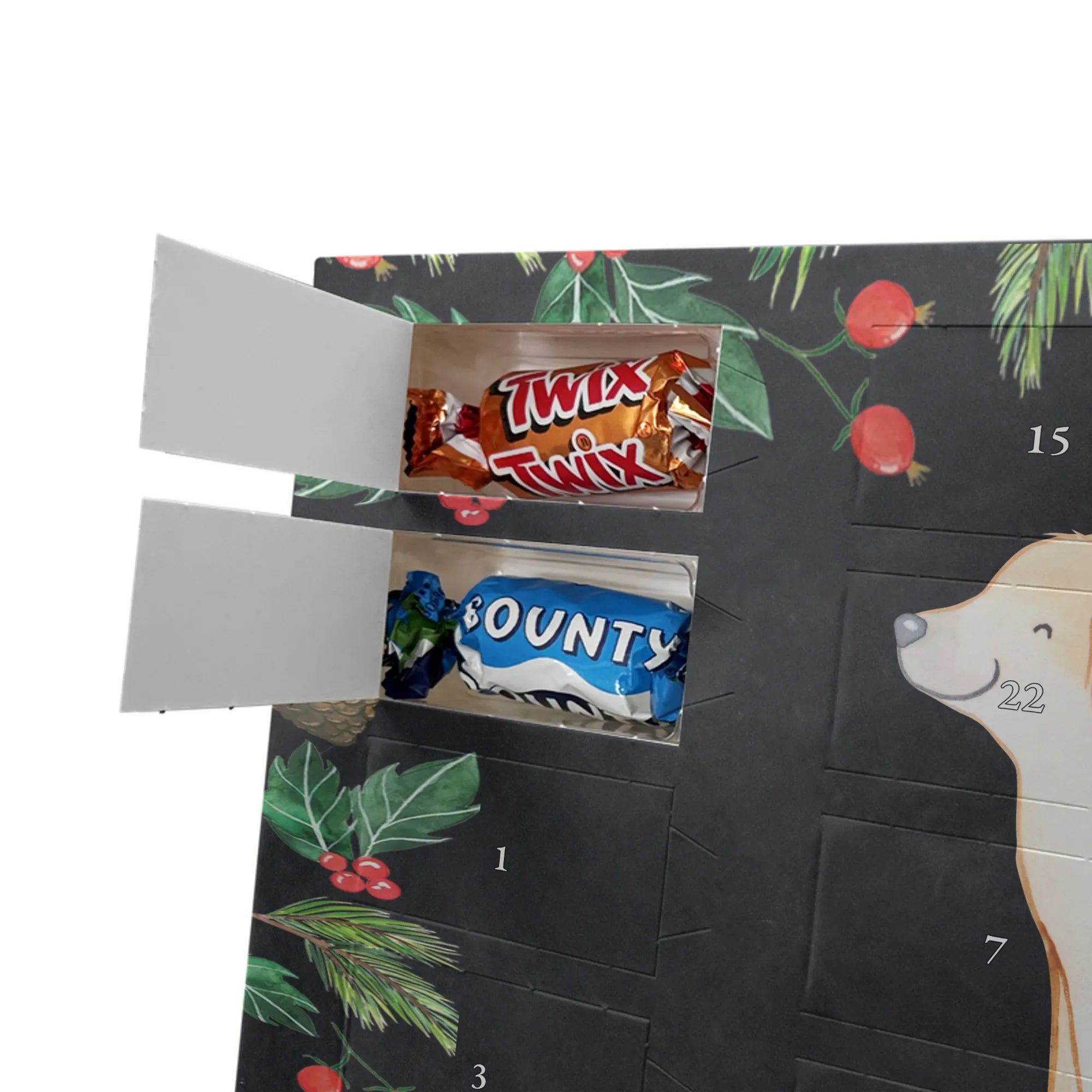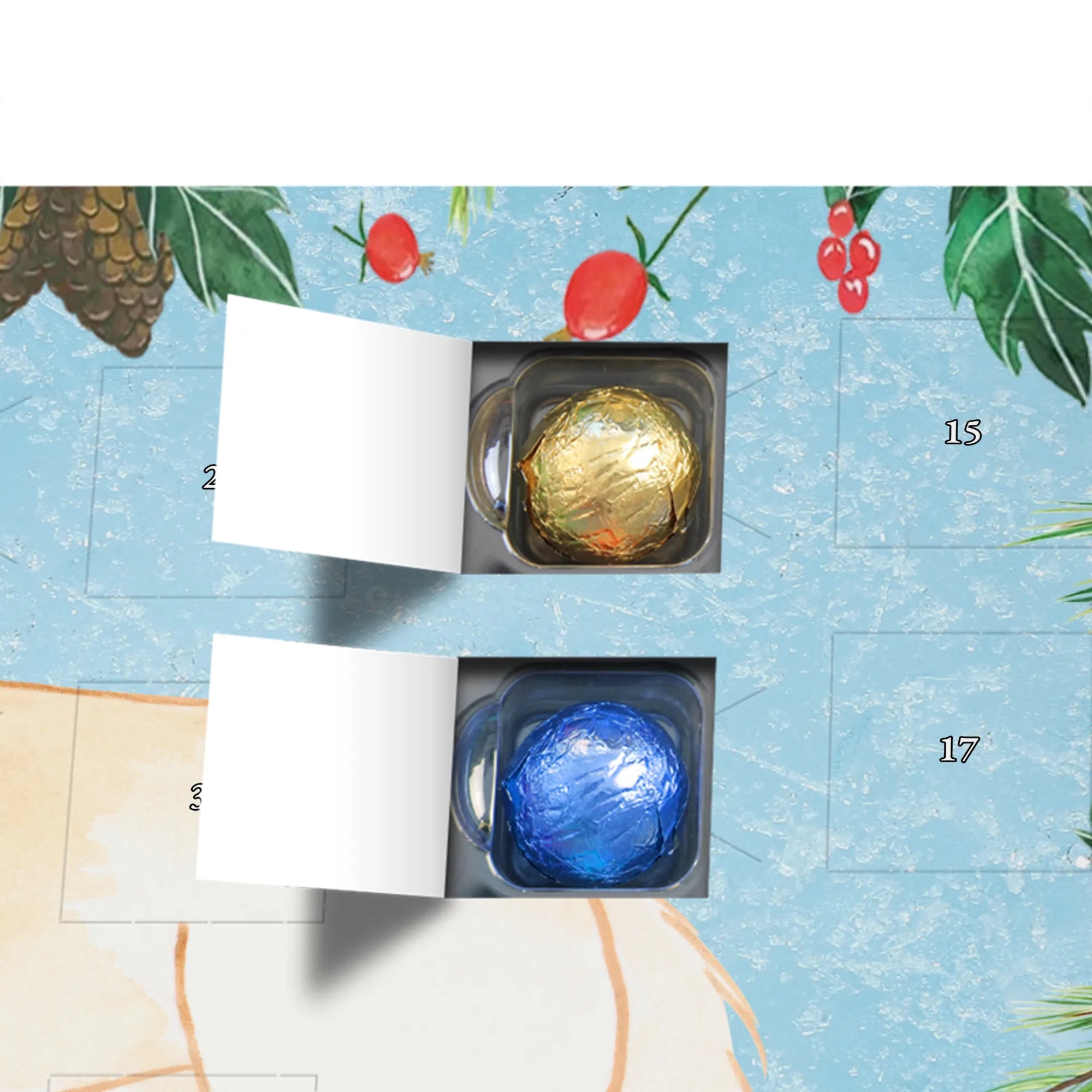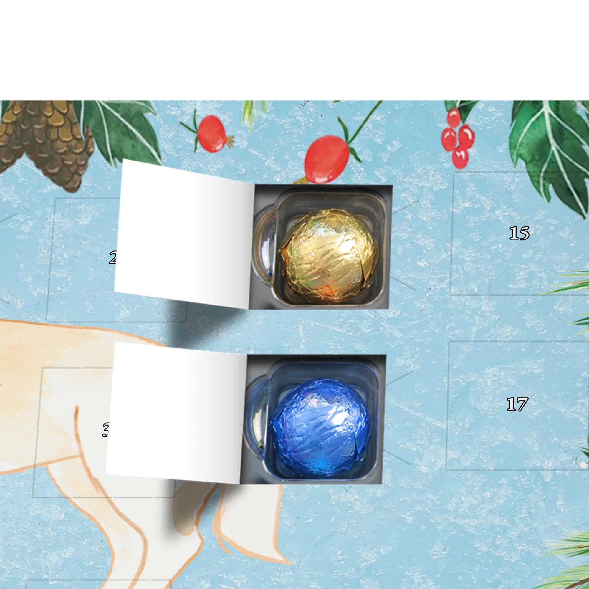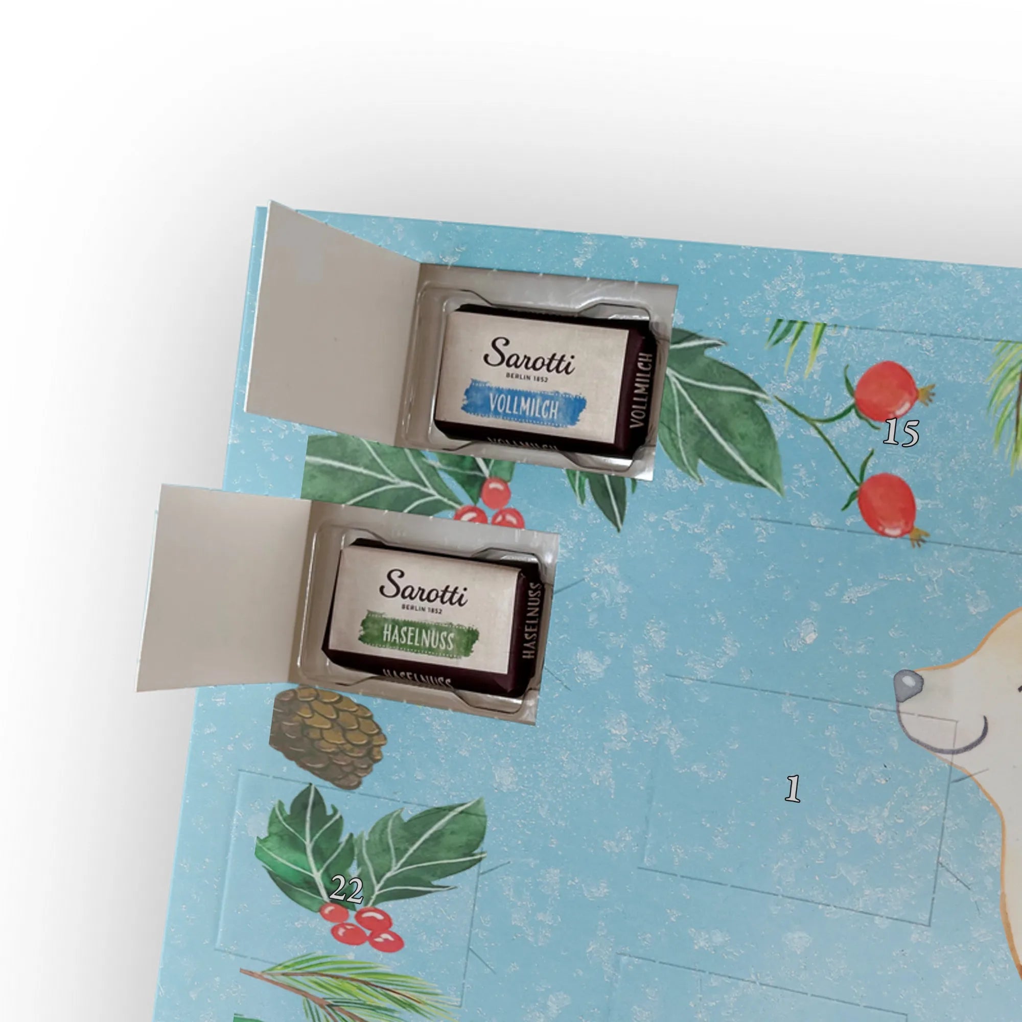 Wunderschöner Adventskalender mit Schokolade von Mr. & Mrs. Panda – für alle, die Advent und Design lieben. Dieser Adventskalender mit Schokolade ist liebevoll bedruckt mit wunderschönen Motiven & Sprüchen von Mr. & Mrs. Panda und ist nicht personalisierbar, aber mit viel Liebe zum Detail gefertigt. Brillante Druckqualität mit seidenmatter Oberflächenveredelung sorgt für einen edlen Look, und die bedruckten Seitenflächen geben dem Kalender eine besondere Optik. Maße: 233 mm x 178 mm x 24 mm. Dank seiner stabilen Verarbeitung kannst du ihn aufstellen oder ganz einfach aufhängen – Besonderheit: kann aufgehängt oder aufgestellt werden. Gefüllt mit MARKENNAMEN Schokolade und leckeren Schokoladenkugeln, bringt er jeden Tag ein kleines Glückserlebnis. Wichtige Hinweise: (Kann Spuren von Haselnüssen, Mandeln, Gluten und Soja enthalten!), bitte kühl und trocken lagern. Ob als Geschenk, Mitbringsel oder Adventsdeko – dieser Kalender zaubert ein Lächeln und sorgt für gemütliche Vorfreude. Viel Freude beim Entdecken der süßen Überraschungen wünscht dir Mr. & Mrs. Panda!