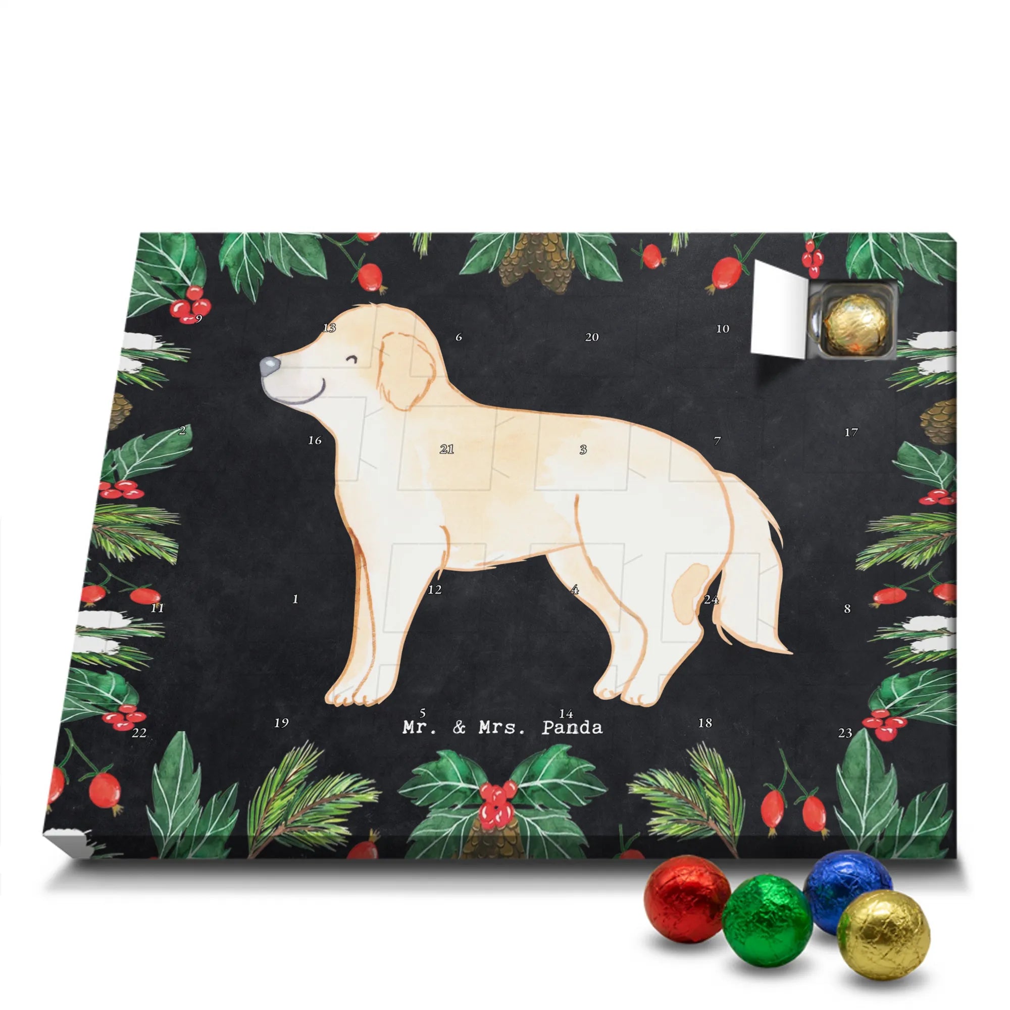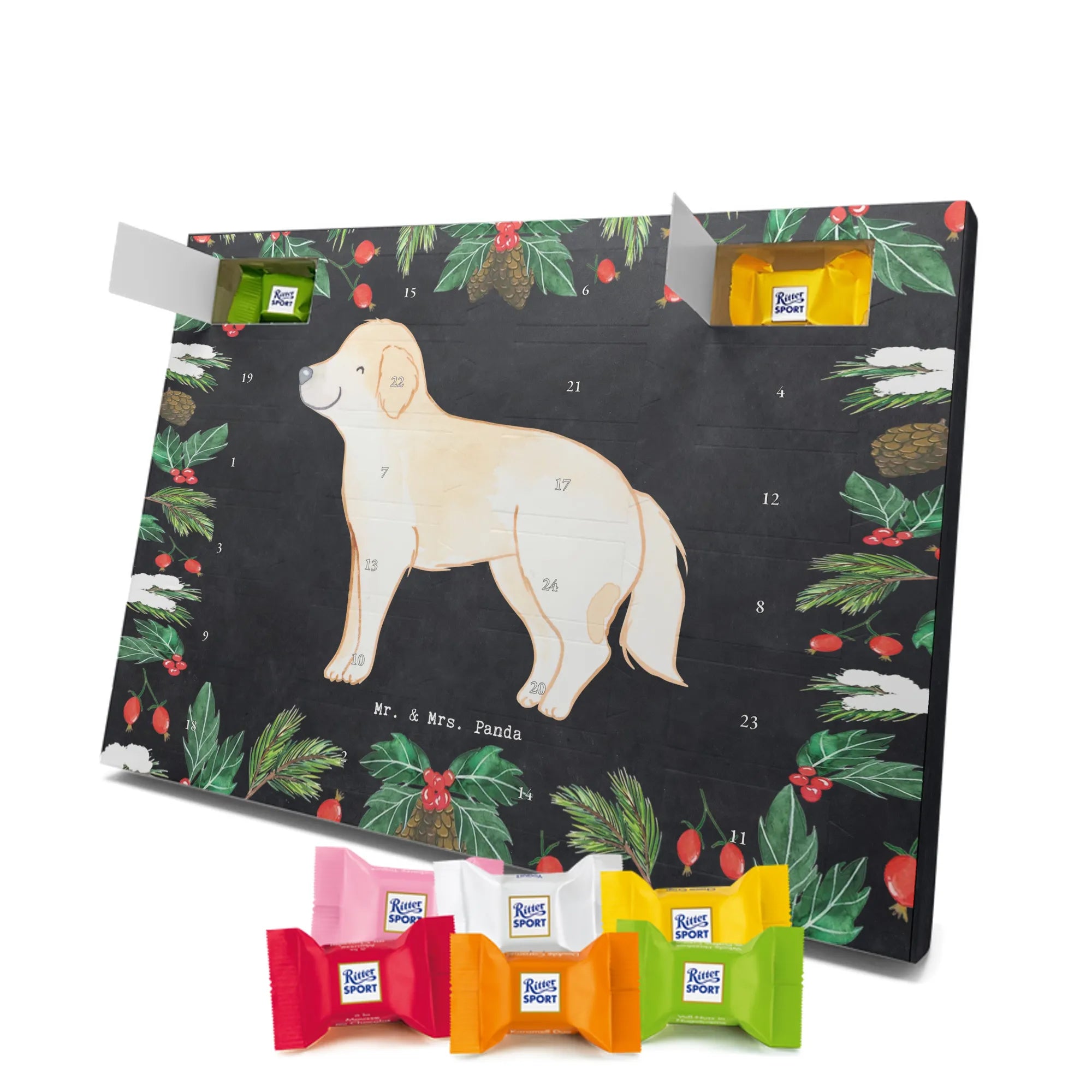 🐼 Schoko Adventskalender mit Mr. & Mrs. Panda Motiven, brillante Druckqualität, nicht personalisierbar.