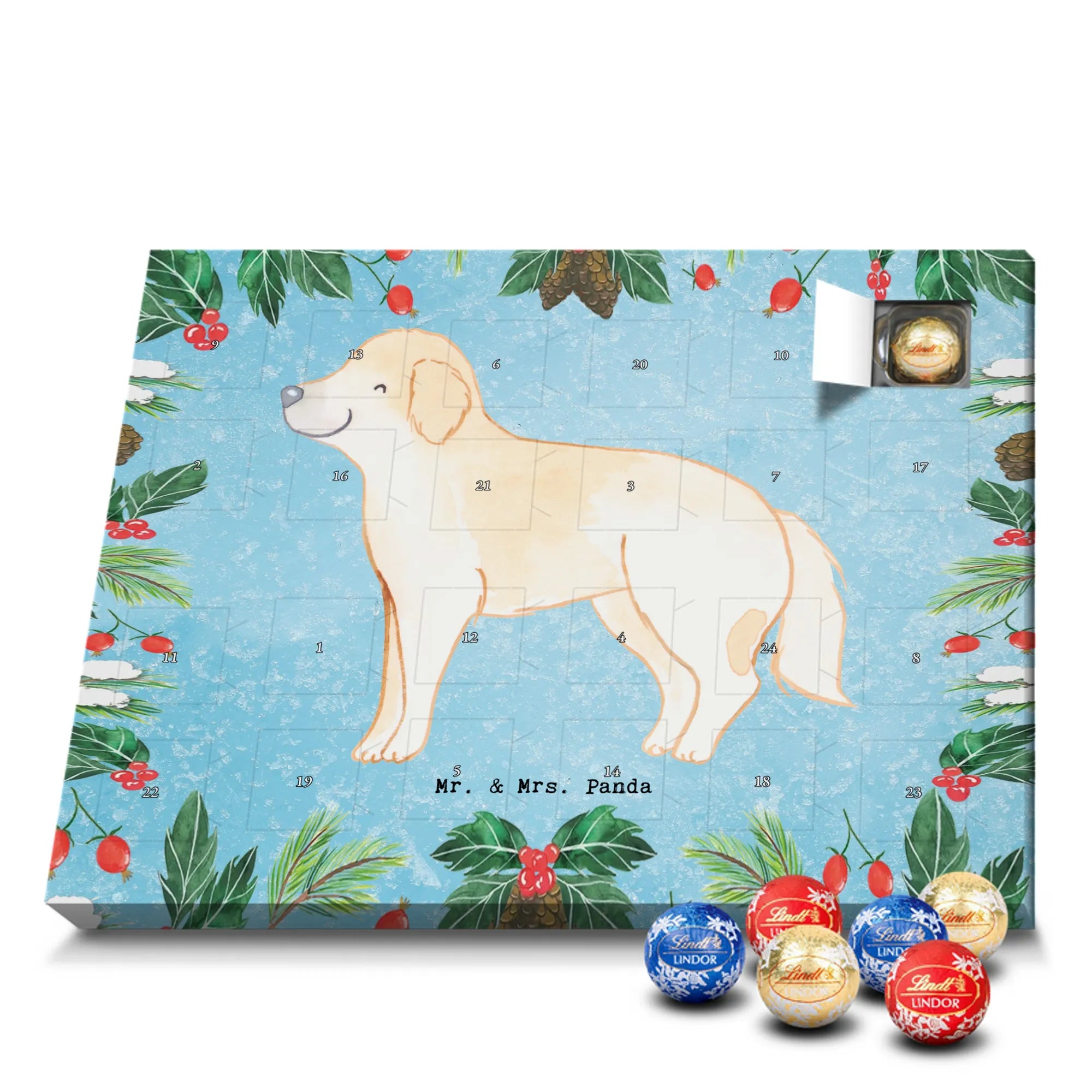 🐼 Schoko Adventskalender mit Lindt Lindor, 24 Kugeln, seidenmatter Druck, nicht personalisierbar.