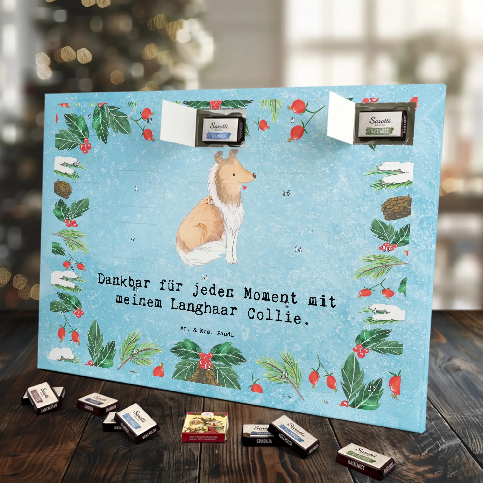 Adventskalender Langhaar Collie Moment - Sarotti - mit Spruch - Kreidetafel