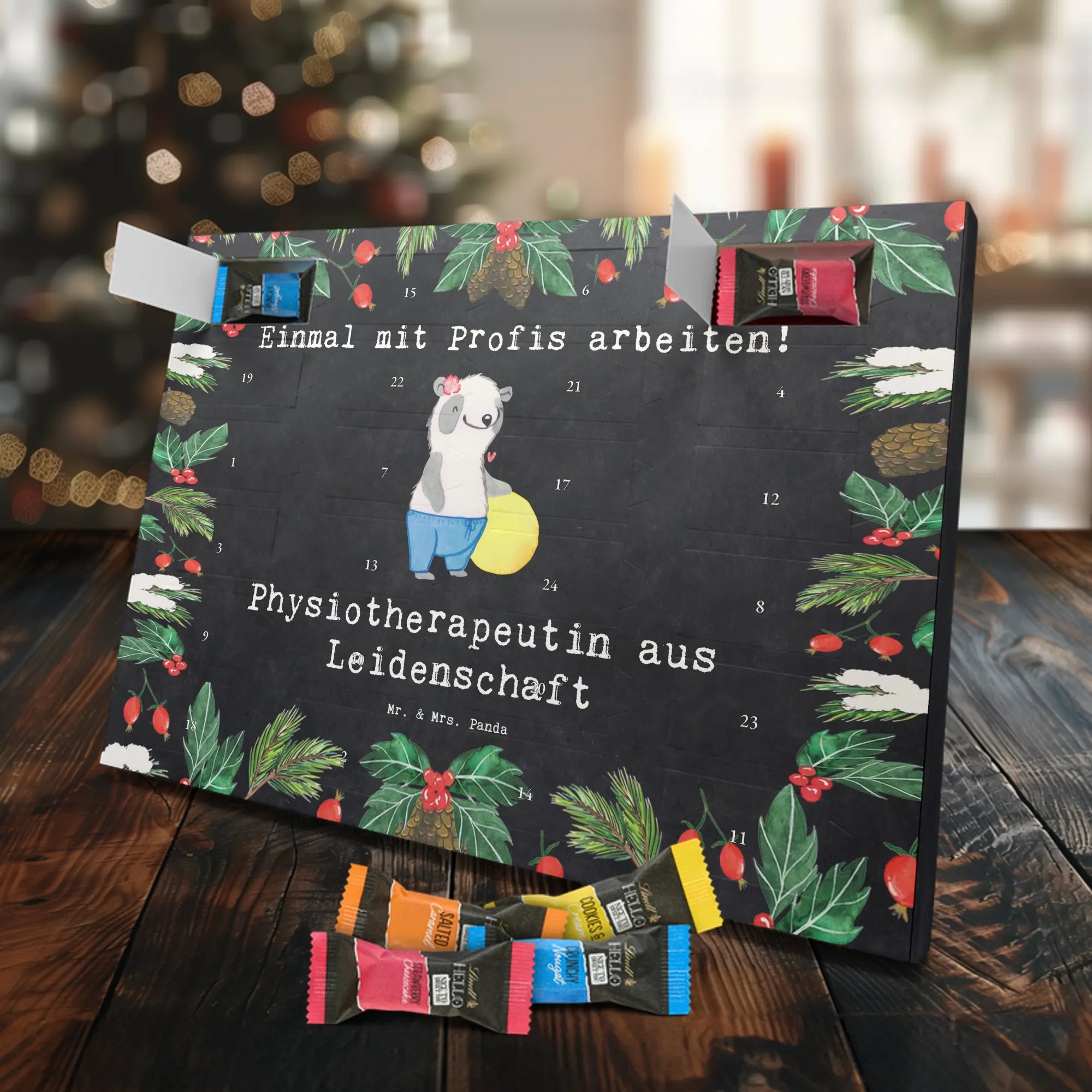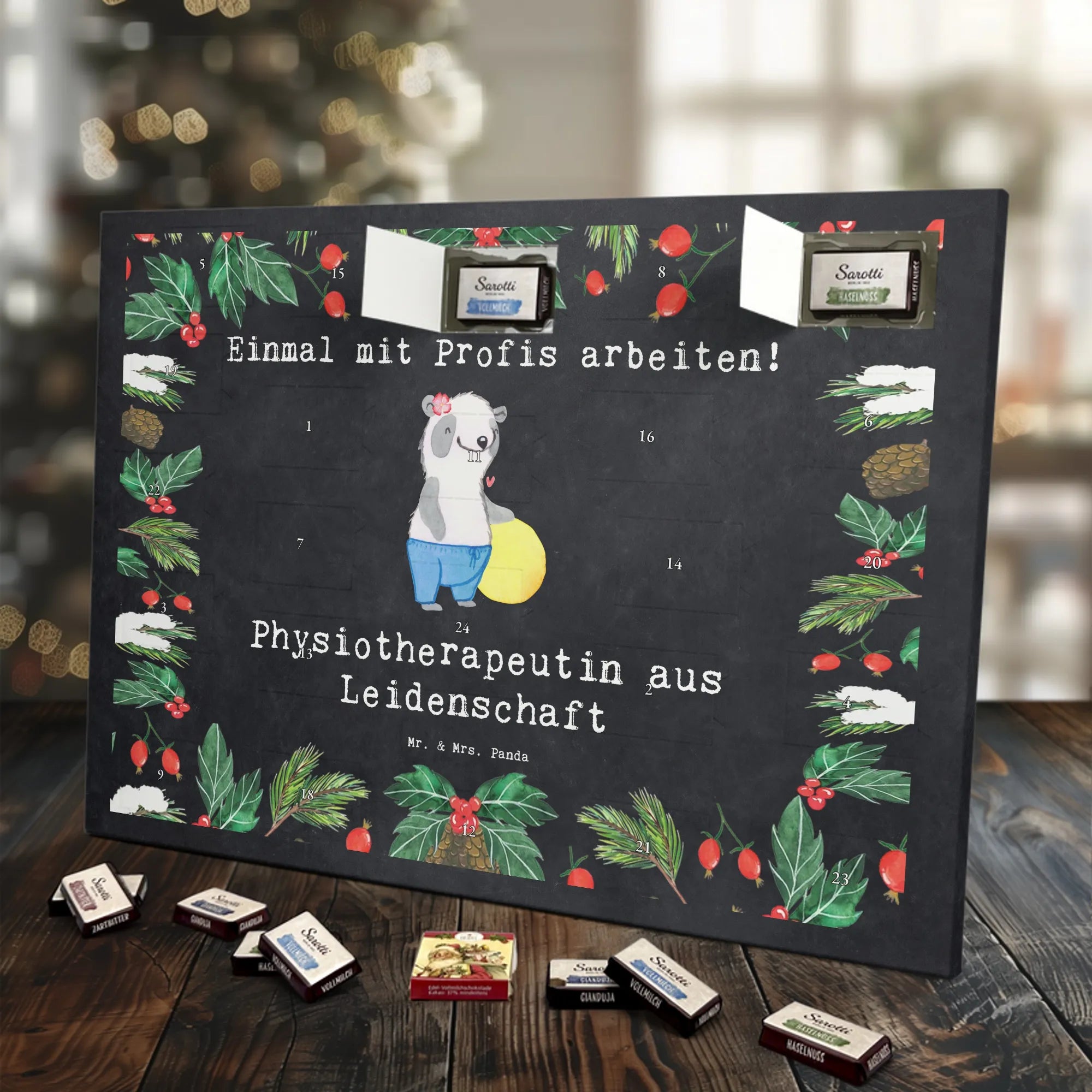 🐼 Schoko Adventskalender mit Mr. & Mrs. Panda Motiven, brillante Druckqualität, nicht personalisierbar.