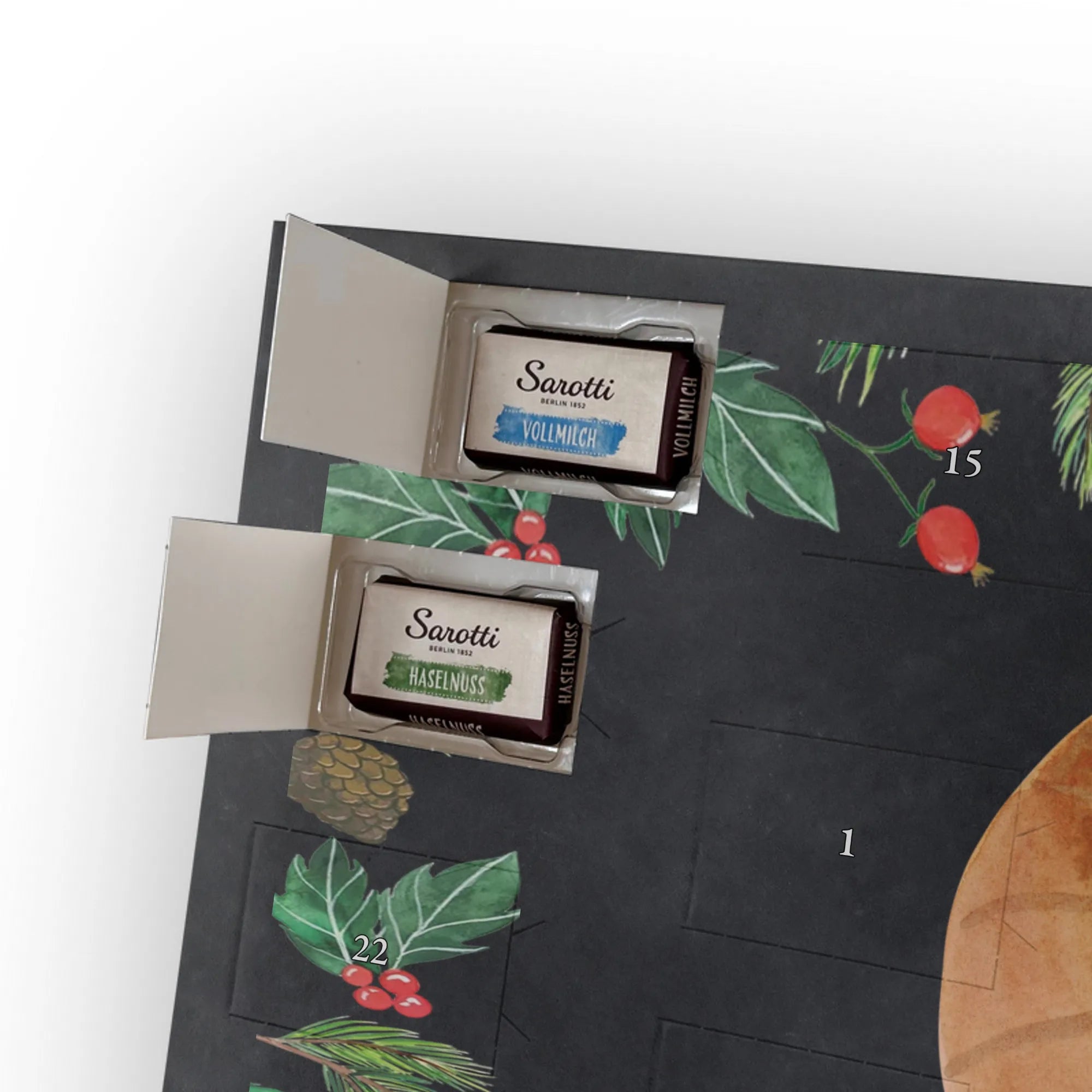 🐼 Schoko-Adventskalender: Liebevolles Design, seidenmatt, brillanter Druck – ein Hingucker.